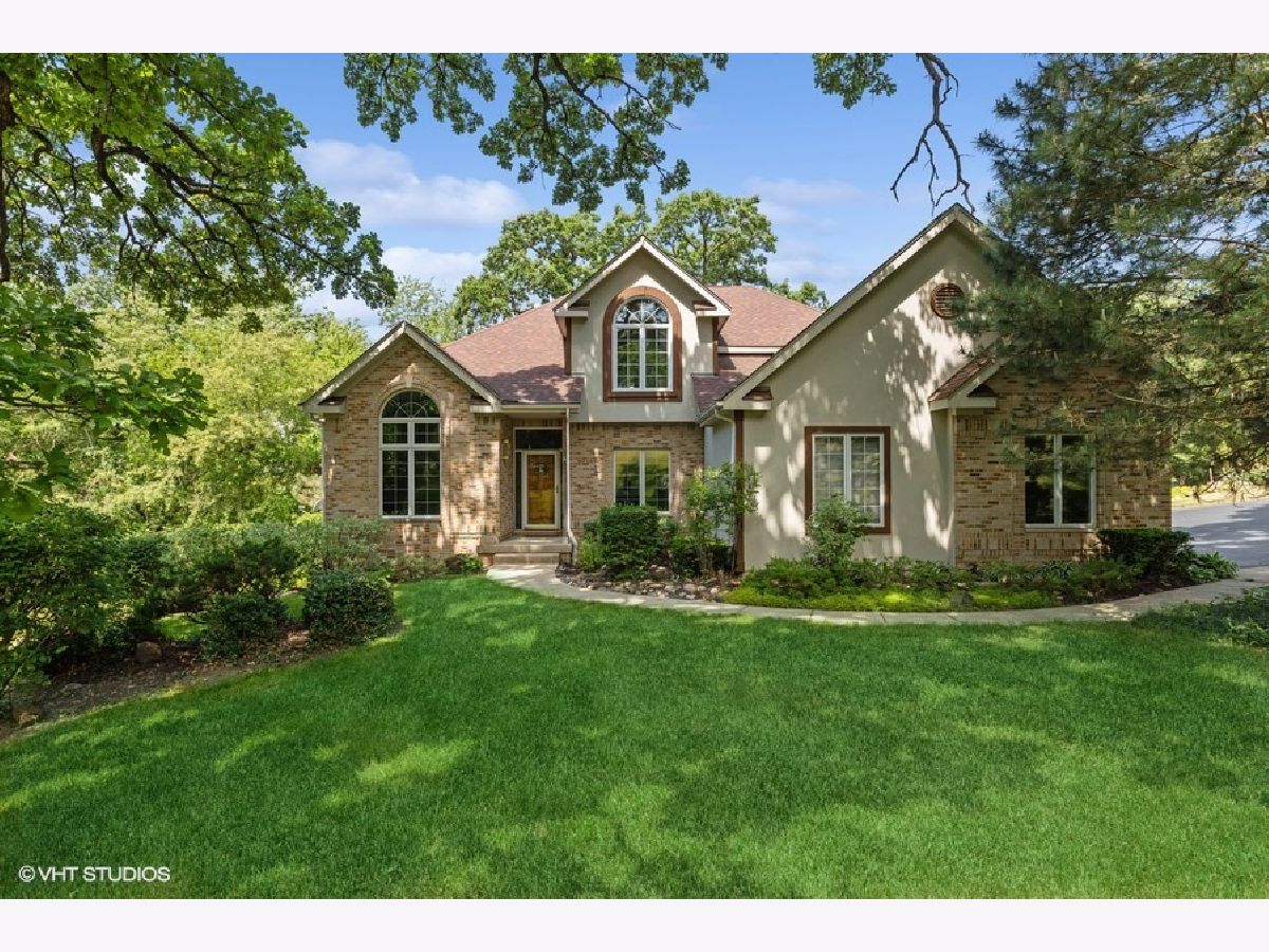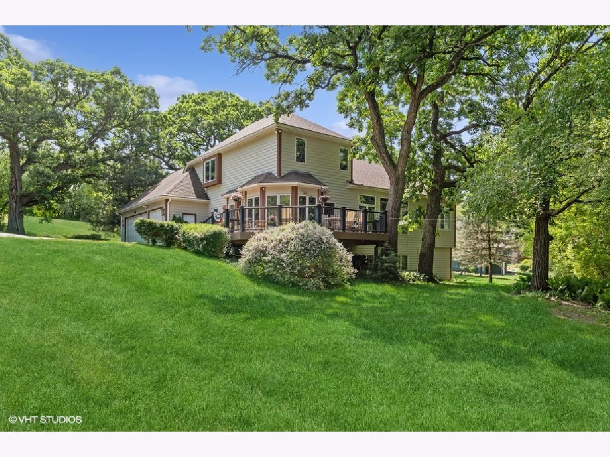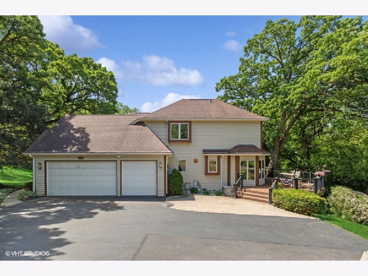 This custom-built home is an impressive property with a total living space of over 5,100 square feet. The main level of the house showcases beautiful hardwood floors, a two-story foyer, and a great room with a fireplace and floor-to-ceiling built-ins. The dining room boasts a tray ceiling and adorned with millwork. The kitchen offers plenty of maple cabinets, a spacious island, and a large pantry. The primary bedroom on the first floor includes a walk-in closet and an ensuite bathroom with dual sinks, a whirlpool tub, and a separate shower. Upstairs, there are three additional nicely sized bedrooms that share a hall bathroom designed for a busy family. The walkout basement provides additional living space and features a bedroom, a full bathroom, a huge recreation room, an exercise room (which could also be used as the fifth bedroom), and an executive-style office with elegant millwork. Outside, the property boasts an almost acre-sized wooded lot, providing privacy and picturesque views. There is a large deck perfect for entertaining or enjoying the surrounding wildlife. The home is situated on a cul-de-sac and offers the convenience of being close to amenities such as the Chain O' Lakes, shopping areas, the Metra train station, and Lake Geneva, which is only a 20-minute drive away. All this and located within an award-winning school district! NO HOMEOWNERS ASSOCIATION!