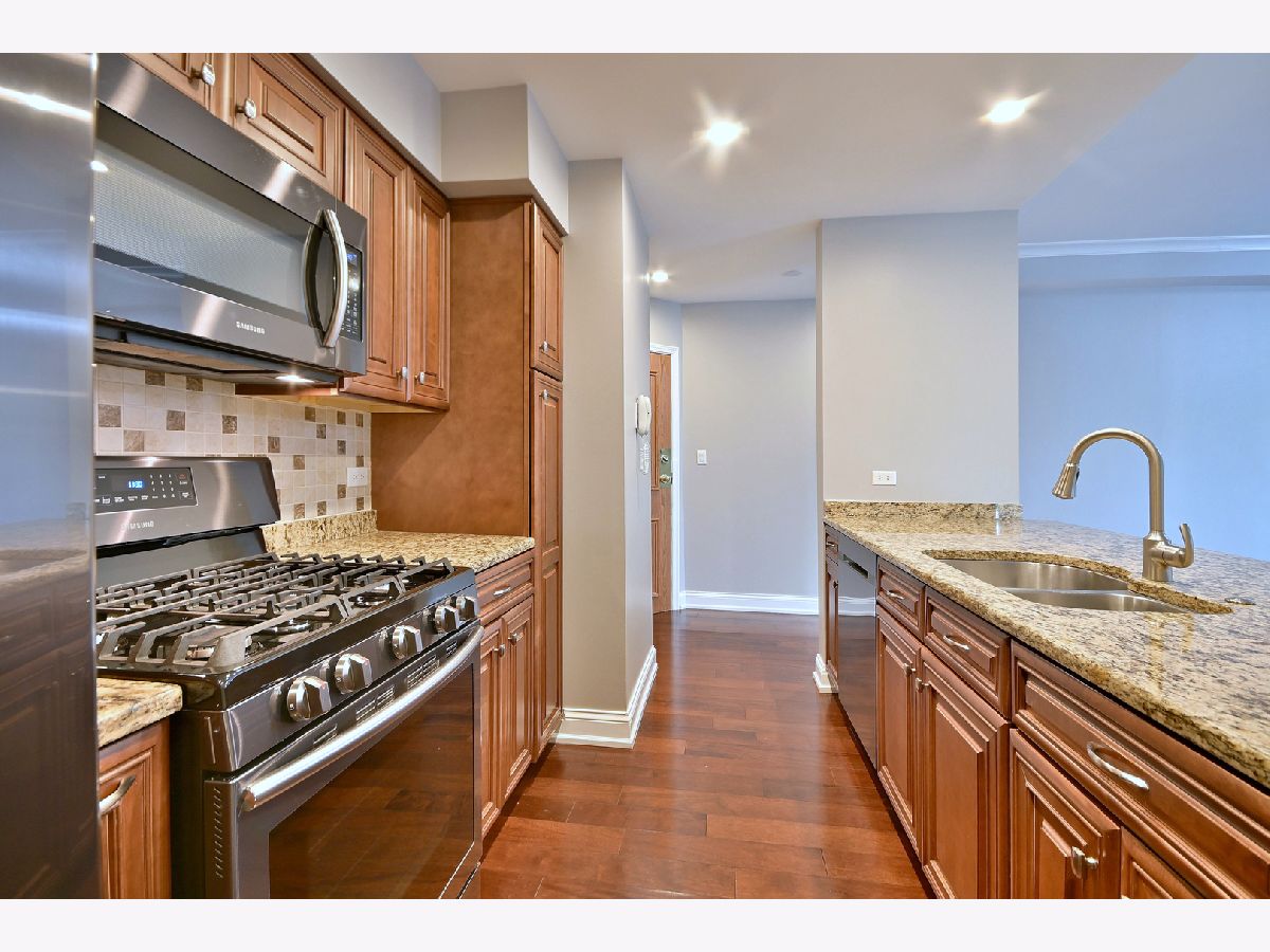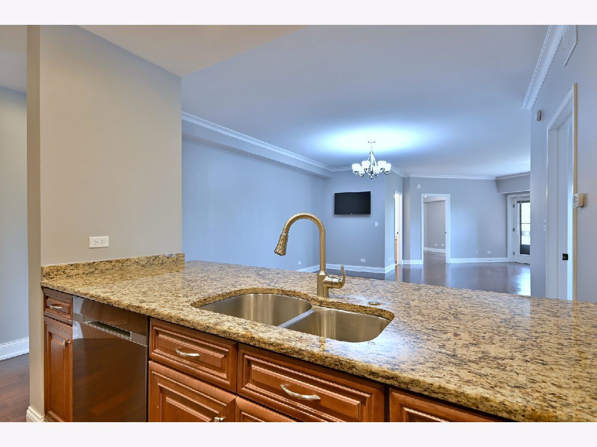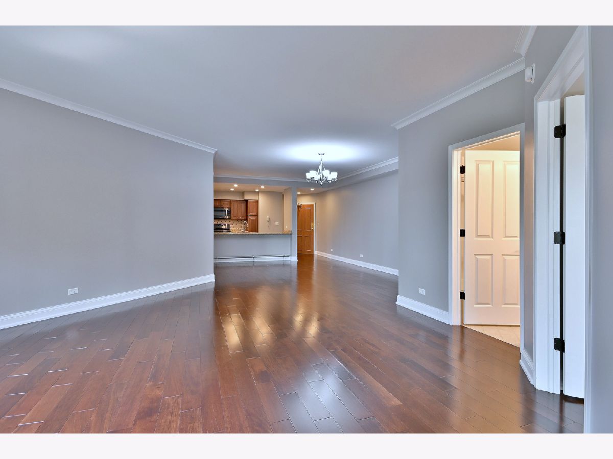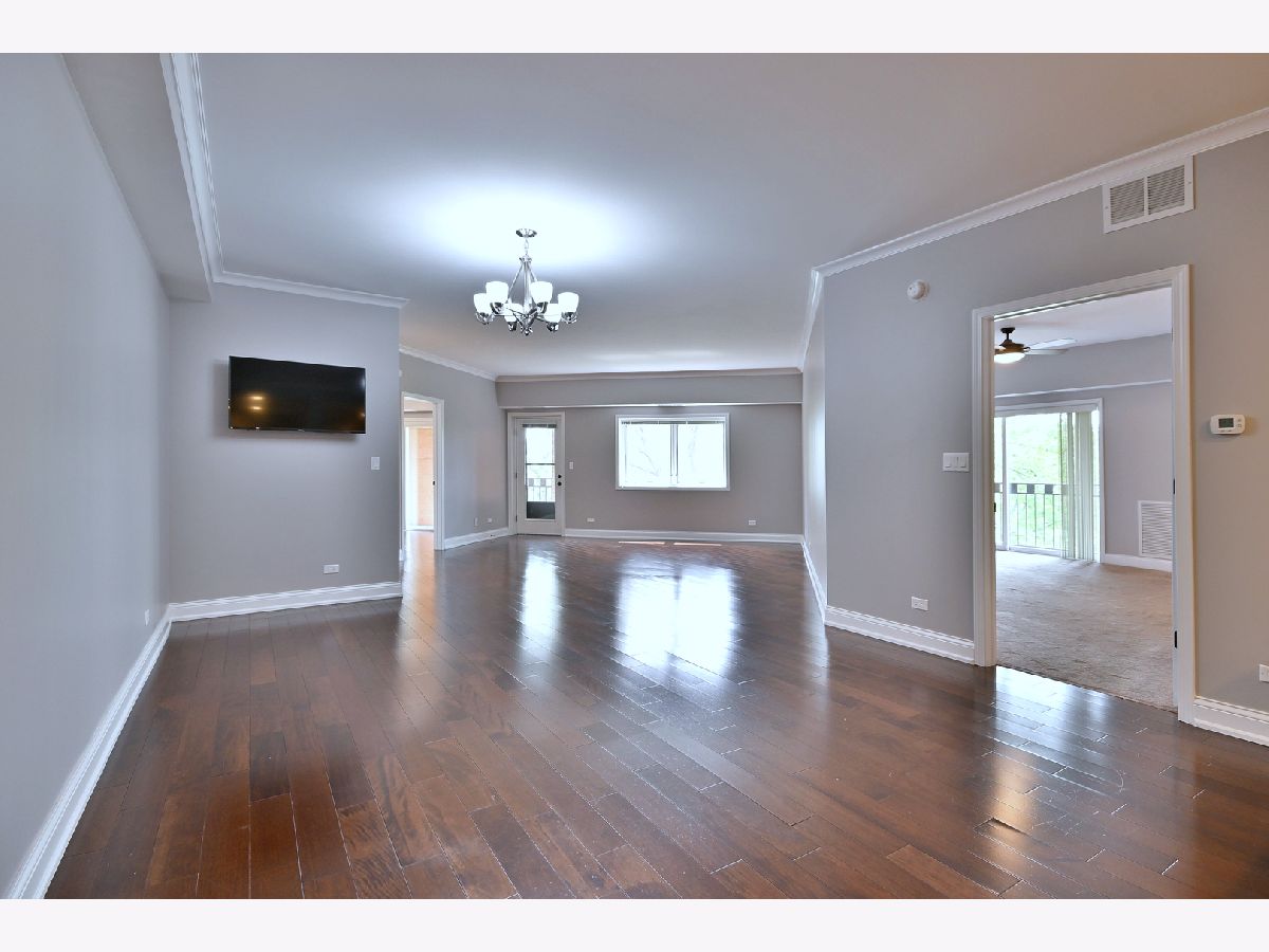 Move-in ready Top floor, End unit 2 bedrooms, 2 bath condo. One of the largest units in the building including 2 balconies! Updated kitchen with stainless steel appliances, granite countertops and pantry. Newer oak hardwood floors in living room and dining room, Nice size primary bedroom, full bathroom, separate shower, garden tub and walk-in closet with organizer. 1 parking space in the heated, camera monitored garage. Space is steps from the elevator. Additional storage just outside the unit. Plenty of visitor parking on west side of building & around. Across from shopping and transportation. Maine South H.S.