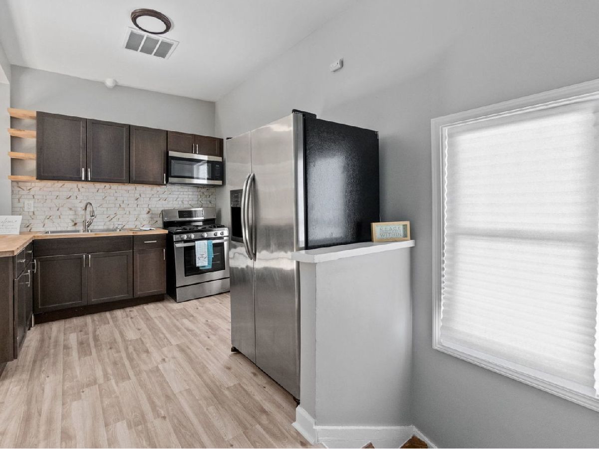 Gorgeous rehabbed 2 flat! Great for Related Living! This 2 flat has a total of 7 bedrooms and 4 baths. The first floor unit has 2 bedrooms and huge family/living room area off the kitchen boasting an open concept. The beautiful spacious kitchen has dark cabinets and butcher block counter tops with stainless steel stove and refrigerator. This unit is duplexed down to the basement where you will find an additional full bath with walk in shower. Head upstairs where you find a 5 bedroom unit with 2 baths and open concept kitchen with peninsula. This unit is duplexed up the the finished attic area where you'll find 3 bedrooms and a 1/2 bath. This 2 flat has so much to offer.... The basement has 2 separate laundry areas with hookups in place, there is a huge gated yard out back with space for parking in rear, there is also a Harry Potter Closet for that extra needed storage. Schedule your showing today, This will not last long at this price.