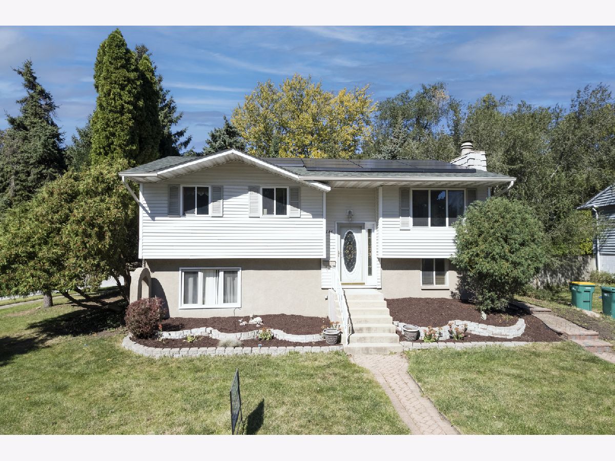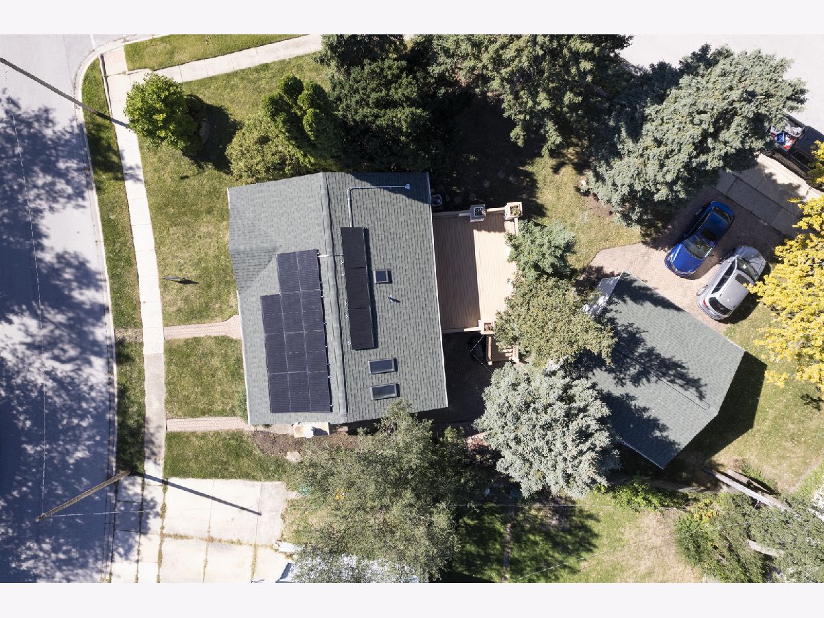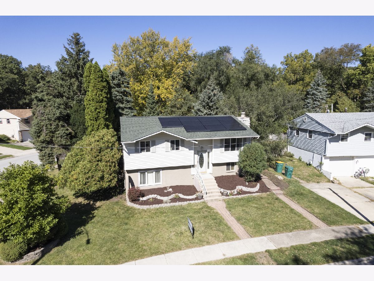 This bright 4-bedroom, 2-bath raised ranch features an open layout with a vaulted ceiling and skylights. The eat-in kitchen's 3-foot bay window adds charm, and the living room's engineered wood floors create a warm ambiance. The main floor has three bedrooms with ceiling fans, while the lower level includes a large family room with a wood-burning fireplace, a master bedroom, full bath, laundry room, and an extra room for storage or a walk-in closet. Updates: Roof (3 yrs) Solar panels (1 yr) A/C (6 yrs) Hot water heater (2 mos) High-efficiency furnace (16 yrs) Appliances less than (6 mos), Bathrooms, Kitchen, 2 bedrooms, Walk in closet and Laundry room are freshly professionally painted to look fantastic. Outside, enjoy a landscaped corner lot with an 18x20 deck, and detached 2 1/2-car garage. Nestled on a quiet dead-end street with views of O'Hara Woods Nature Preserve, perfect for nature walks. Within walking distance Parks, Park District events, the Recreation Department, Toyota Pavilion, and the Village Hall . Close to Stores, Expressways, and Restaurants. Sold As-Is. Pictures of freshly painted spaces will be downloaded the latest Saturday morning.