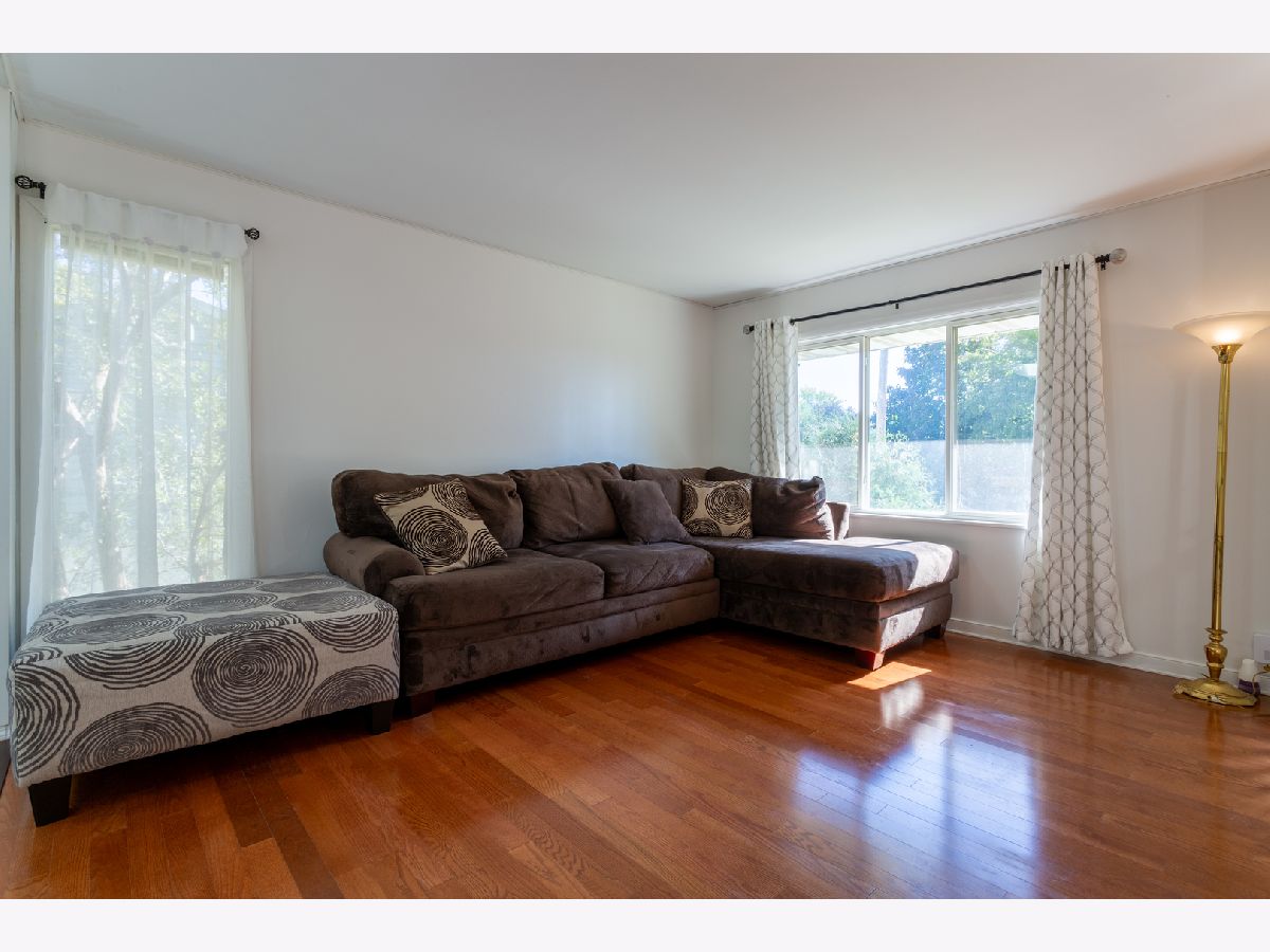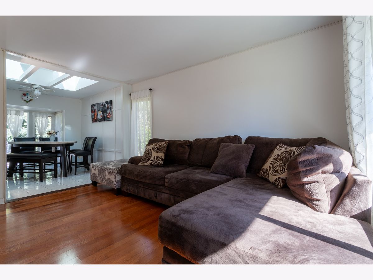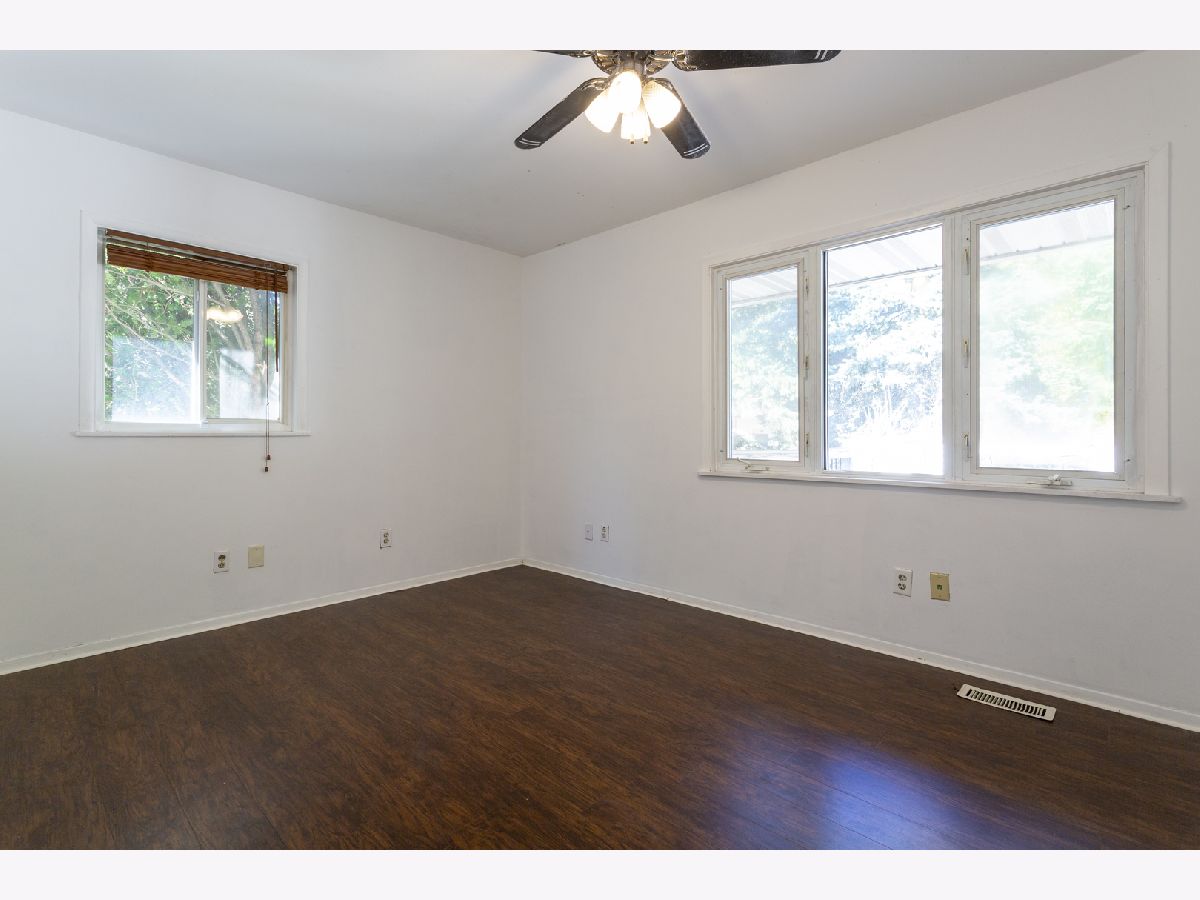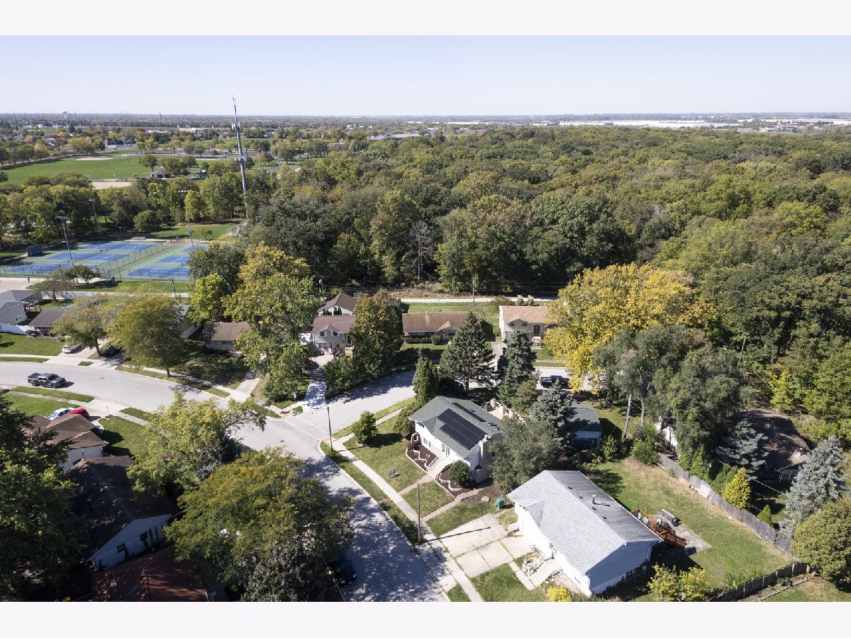 This bright 4-bedroom, 2-bath raised ranch features an open layout with a vaulted ceiling and skylights. The eat-in kitchen's 3-foot bay window adds charm, and the living room's engineered wood floors create a warm ambiance. The main floor has three bedrooms with ceiling fans, while the lower level includes a large family room with a wood-burning fireplace, a master bedroom, full bath, laundry room, and an extra room for storage or a walk-in closet. Updates: Roof (3 yrs) Solar panels (1 yr) A/C (6 yrs) Hot water heater (2 mos) High-efficiency furnace (16 yrs) Appliances less than (6 mos), Bathrooms, Kitchen, 2 bedrooms, Walk in closet and Laundry room are freshly professionally painted to look fantastic. Outside, enjoy a landscaped corner lot with an 18x20 deck, and detached 2 1/2-car garage. Nestled on a quiet dead-end street with views of O'Hara Woods Nature Preserve, perfect for nature walks. Within walking distance Parks, Park District events, the Recreation Department, Toyota Pavilion, and the Village Hall . Close to Stores, Expressways, and Restaurants. Sold As-Is. Pictures of freshly painted spaces will be downloaded the latest Saturday morning.