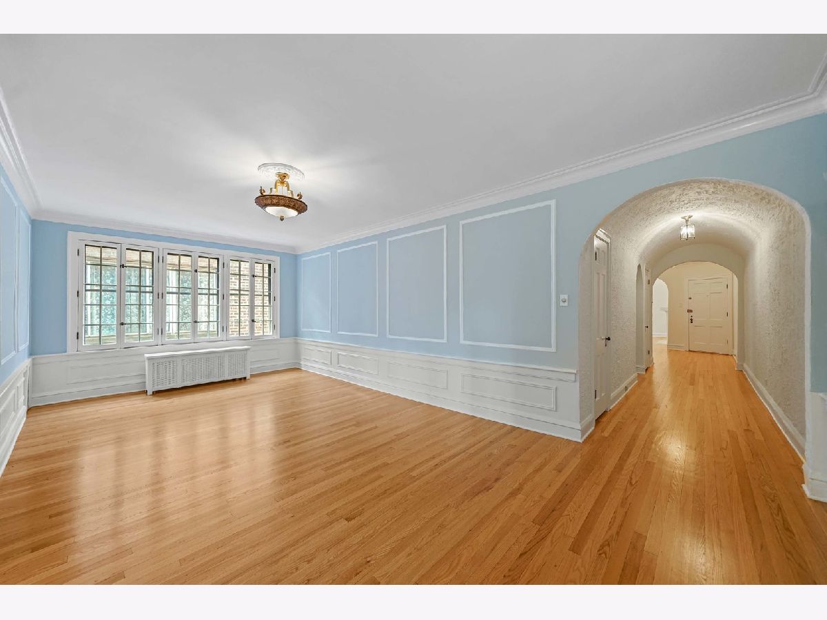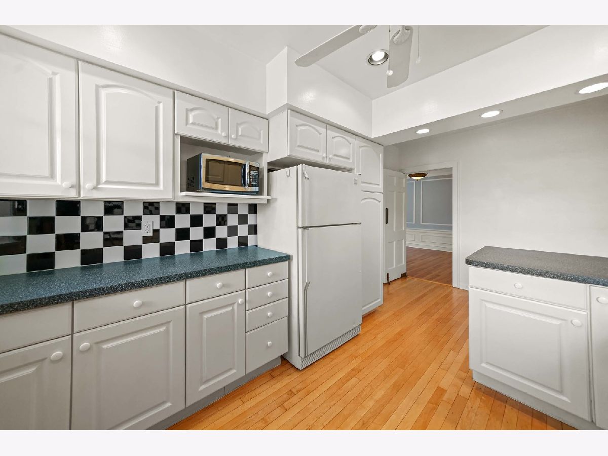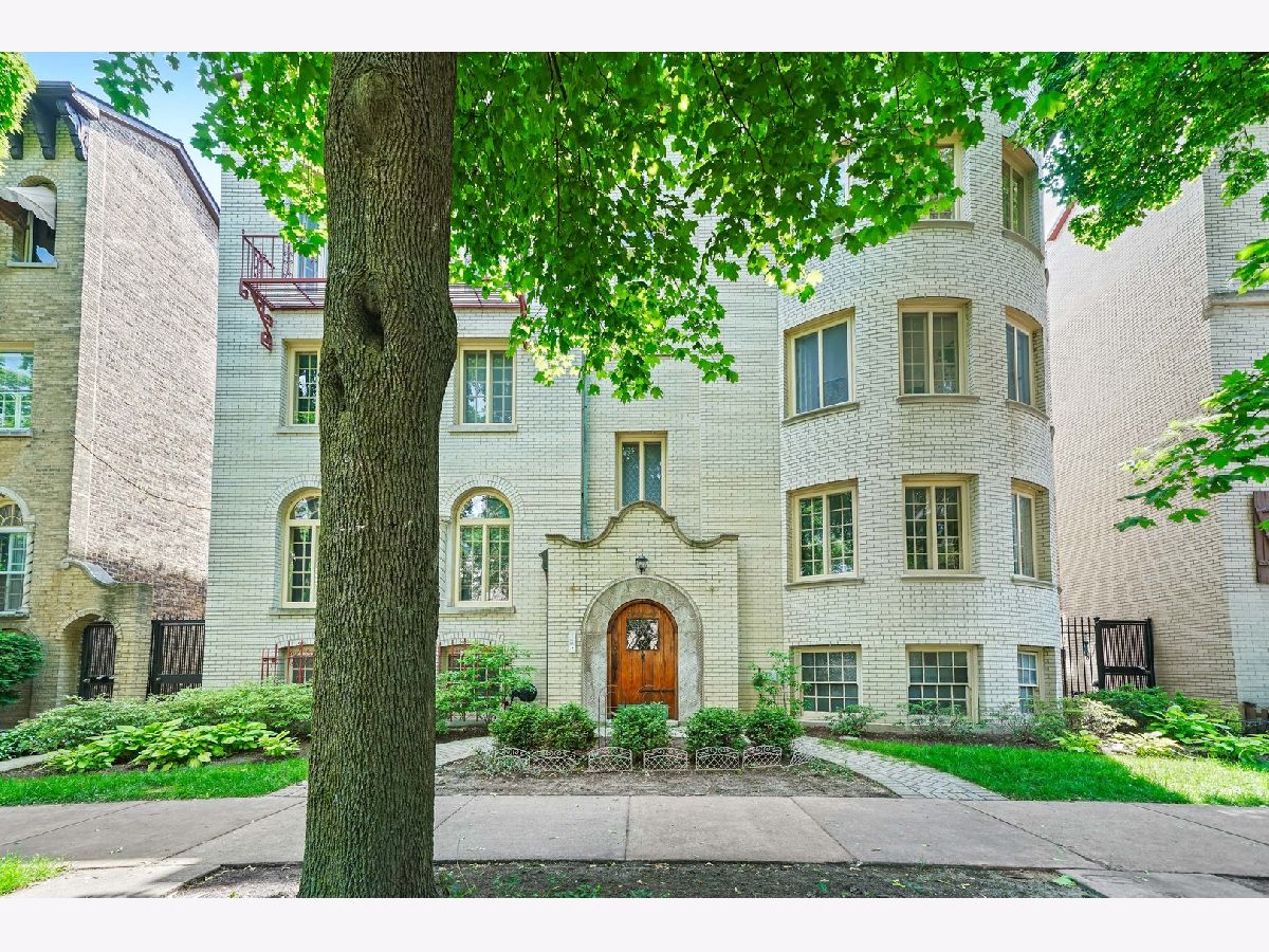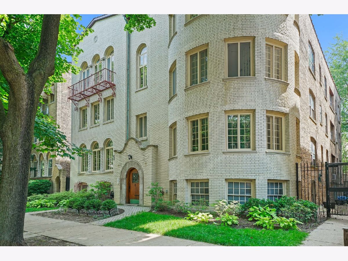 Vintage top floor gem in rarely available Emma Kennett classic from 1930. Gorgeous original features and newly refinished hardwood floors throughout. Grand turret-style living room with soaring cove ceiling and beautifully restored west-facing French casement windows frame trees & afternoon sun for a delightful effect. 3 large bedrooms and 2 full baths, including master bathroom roomy enough for luxurious upgrades. Third bedroom with en-suite bathroom and easy access from back door offers enhanced privacy for use as guest room or office. Spacious for entertaining, with exquisite formal dining room, cozy eat-in kitchen, and bright sunroom. Designated storage unit and personal washer/dryer in basement, which can be accessed without going outdoors. Garage space currently available for lease at $50/month. Walking distance to Red Line, Metra, and Howard Street's burgeoning restaurant & cafe scene. Major updates in 2013 including a new roof. Well cared for building with fascinating history.