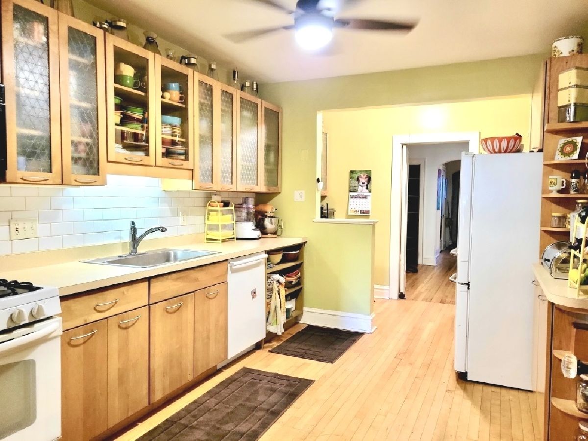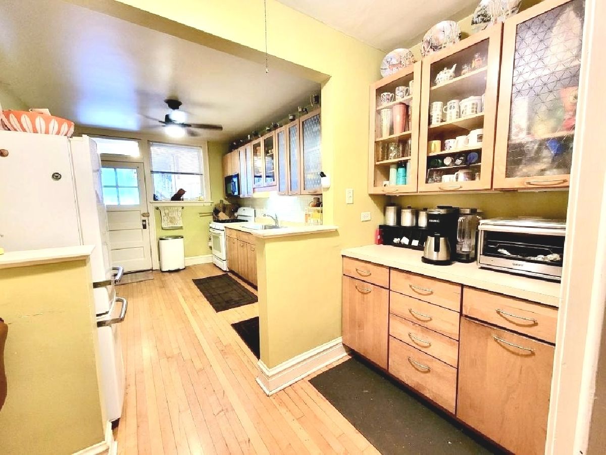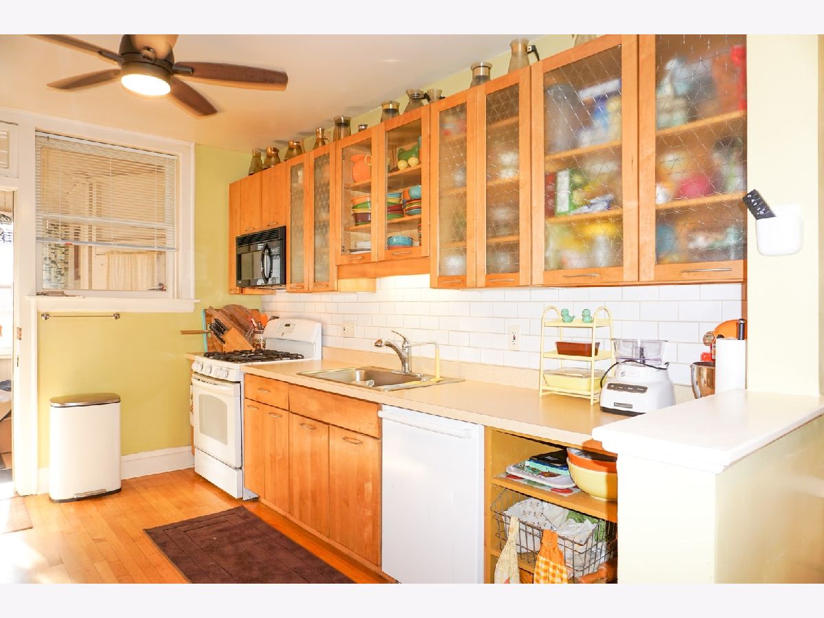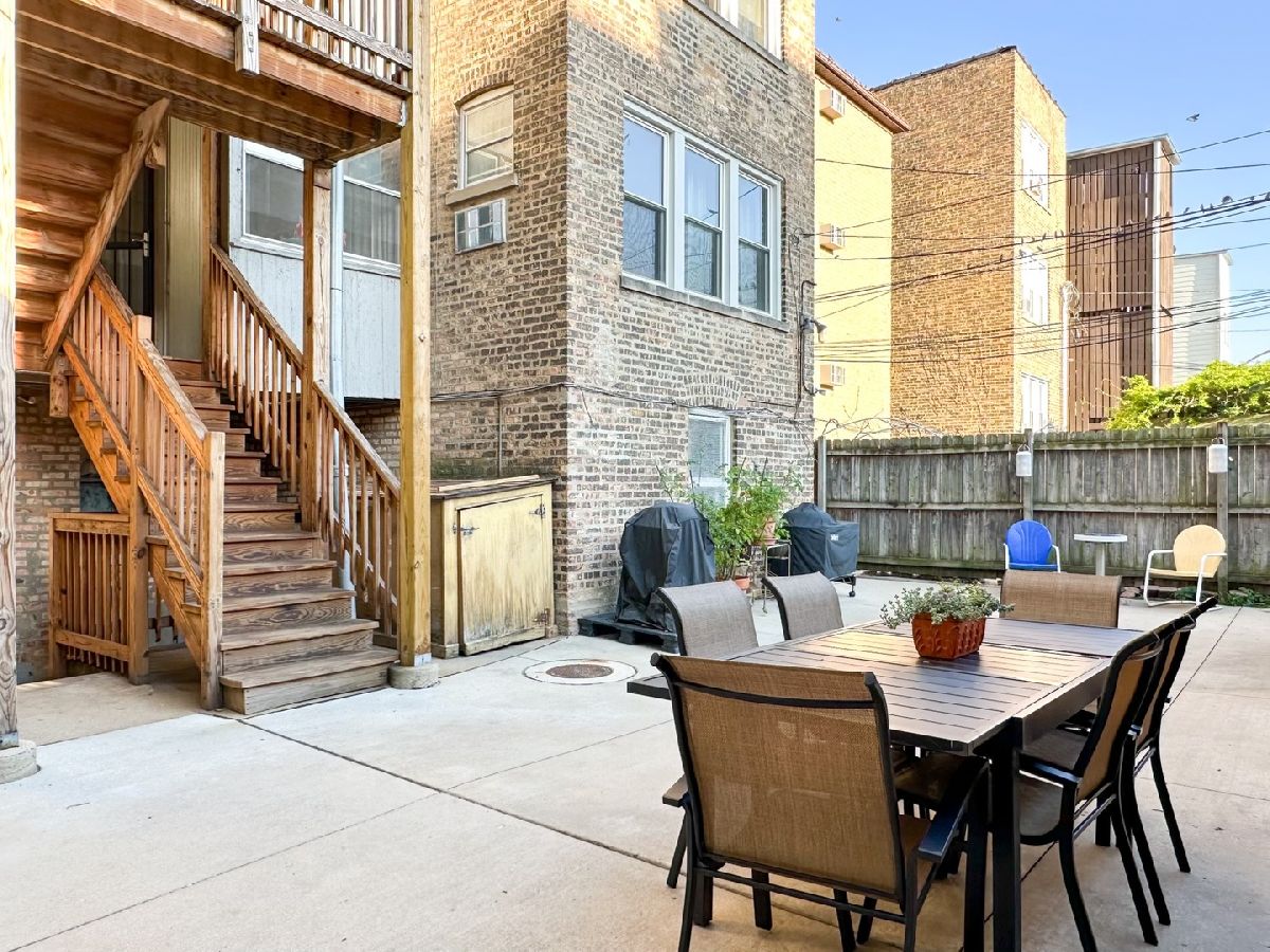 Beautiful sun filled 3 bedroom, 2 bath condo with an open layout offering 1,800+ sq. ft., hardwood floors throughout and 9 ft.ceilings. Enormous living room with a fantastic built-in wood cabinets/book cases, formal dining room, 3 great size bedrooms with ample closet space and 2 full bathrooms. Spacious updated kitchen with an eating area, butler pantry, maple cabinets, new countertops, sink and Bosh dishwasher. Enclosed 9X6 back porch off of the kitchen is a bonus for an additional storage space. New ceiling fans with remote. Additional features include, privately owned newer washer & dryer located in the basement, storage unit, exercise room, and a beautiful large patio to enjoy for grilling and relaxation. Unit also comes with one assigned garage space. This very well maintained building is newly tuck pointed with newer back porch and stairs. Excellent reserves and low real estate taxes. Assessment includes heat, water and exercise facility. This pet friendly building is located on a quiet tree line street and and close to public transportation, schools, parks, Starbucks, shops and many more. Welcome Home!!