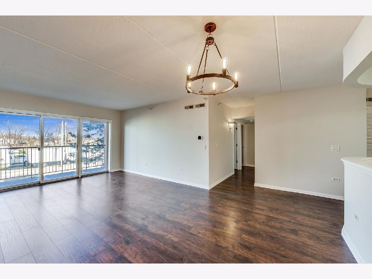 This newly renovated condo has everything you need and more! Enjoy an extra-large covered balcony, separate laundry room with full-sized washer and dryer, shining new hardwood floors throughout, and brand-new dishwasher that will make cooking at home easy! This two bedroom, one bath condo is perfect for the busy homeowner. The spacious and bright living room features sliding glass doors that lead out onto the balcony where you'll be able to enjoy the sunshine during any season while sipping on your morning coffee. Save money and control your home air temperature from anywhere in the world with your own ecobee Smart Thermostat. Gorgeous new light fixtures including a 5-Light bronze chandelier in the dining area. One indoor garage spot with a convenient adjacent large storage locker included. Nearby parks are Skokie Valley Park, Emily Oaks Nature Center, and Donald W Lyon Park so all your outdoor activities are close by. This condo provides everything on-hand so there's no need to complicate your daily enjoyment of life's simple pleasures. In addition, enjoy the peace of mind knowing you live in a well managed and maintained and building!