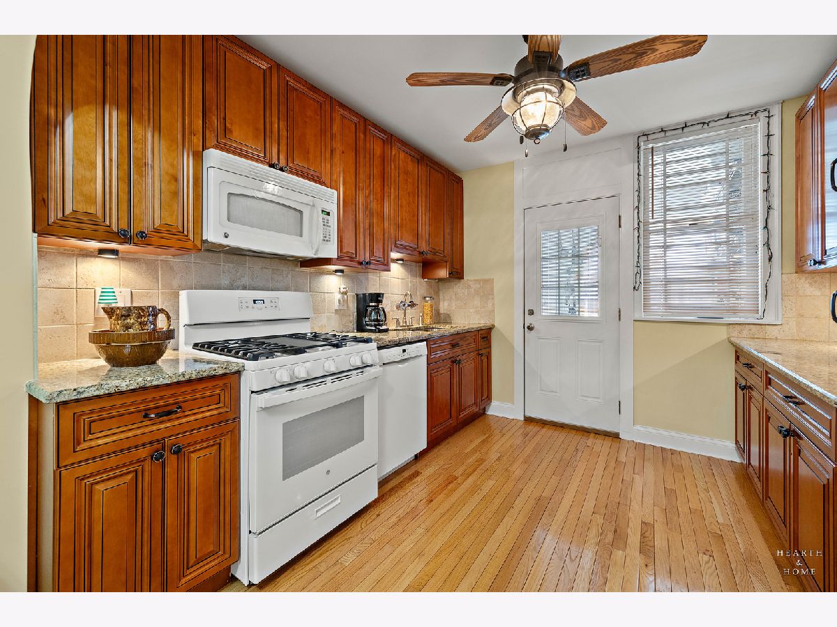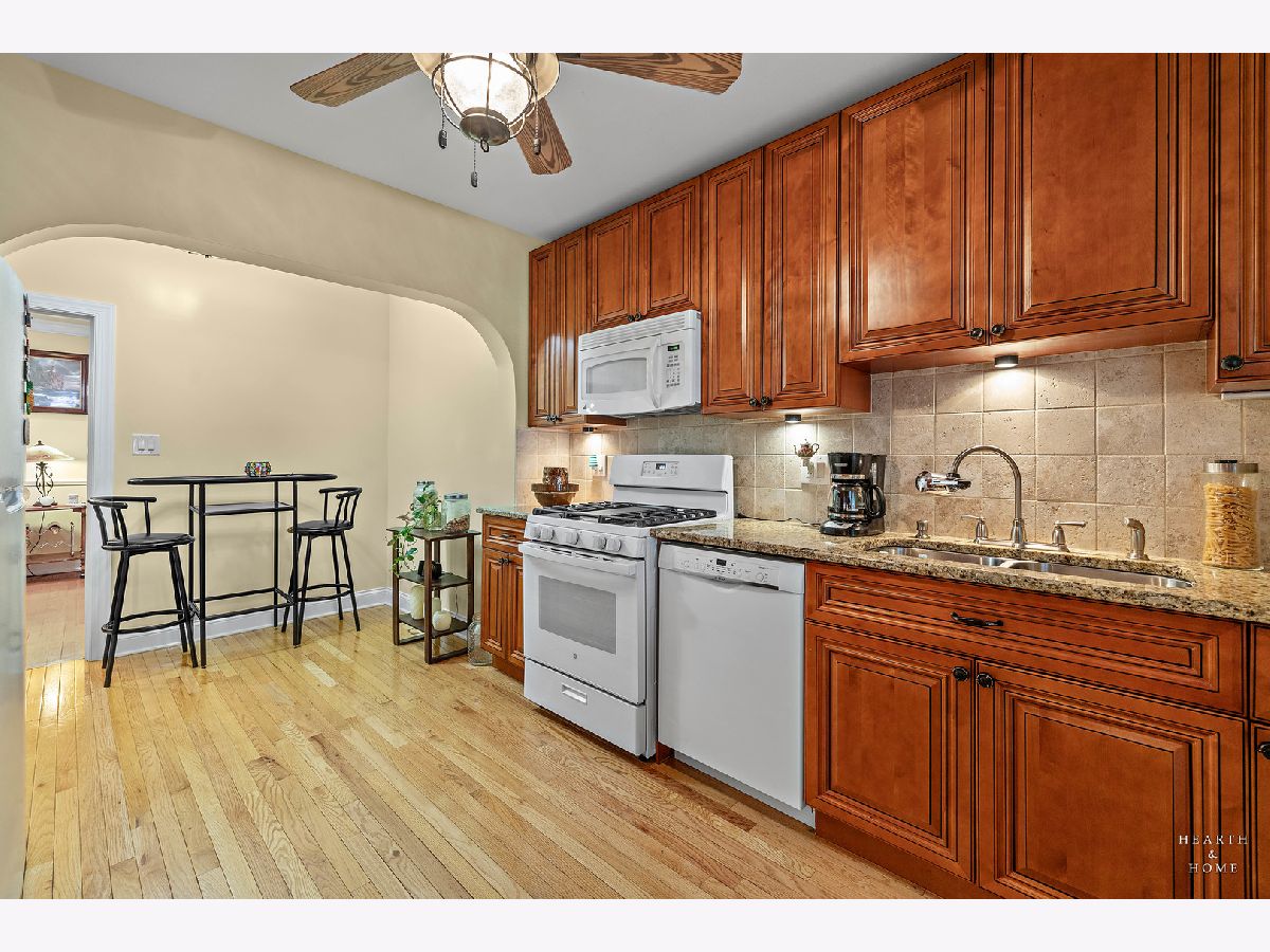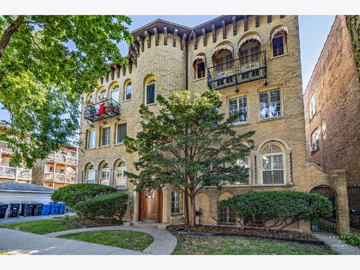 Check out this roomy 3 bedroom, 2 bath condo in a Vintage building with great architectural character and nifty built-ins. The period-specific front stairway for the building features large curved landings on each floor, and is situated on a pretty tree-lined block of historic European style 6 flats. A grand foyer greets you, and an impressive gallery hallway leads you from one end of the unit to the other, where you will find truly spacious rooms, arched doorways, and hardwood flooring throughout, with carpeting in the secondary bedrooms. The large living room is highlighted by a dramatic, high coved ceiling, cozy fireplace, and 2 glass French doors that open onto a picturesque wrought iron balcony set perfectly under the canopy of mature shade trees. The retractable awnings over these windows can be raised up to let in loads of natural light or lowered down for added shade. The dining room is absolutely huge and makes for a very natural gathering space. Lots of great updates here, including many new windows and kitchen finishes. The back porch is great for a storage/pantry area, and there is also an inviting shared backyard space. Super convenient location with easy assess to great transportation. Lots of shopping options at Gateway Center Plaza and the Howard Street Red Line station. All this and the Lakefront is just a short distance away! Assessments includes heat, water, common insurance, snow removal, and exterior maintenance. In-unit and in-building laundry. Ask us about the garage parking space!