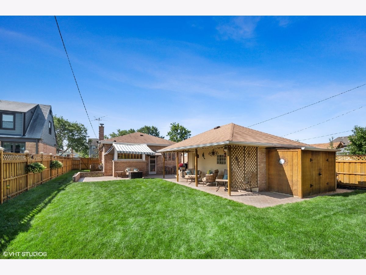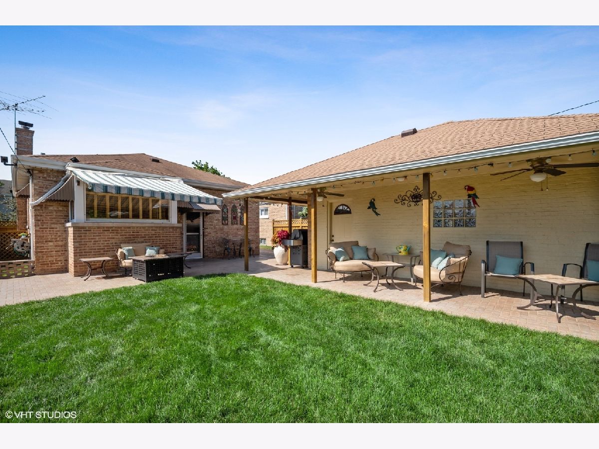 Fantastic 3 bed, 2 bath ranch in Maine South HS Dist located less than a half a block from Jonquil Terrace Park. Situated on a 50x130 lot this home features a beautiful sealed, paver brick driveway and patio with automatic Sunsetter awning (with remote). Additional covered patio next to 1.5 car garage, wired for surround sound, makes for a fantastic backyard retreat, perfect for entertaining. Yard also features large 8x16 shed, vegetable garden and French drain system to control ground and rain water plus flood control system. Newer HVAC (2016). Kitchen features GE Profile appliances with french door fridge and Corian countertops and sink. Dual opening blinds, shutters in kitchen and ceiling fans in first two bedrooms. Custom stained glass window in living room. Massive storage room and laundry room with front loader washer and dryer located in basement. Best of all this home has been meticulously cared for, the seller is only the second owner of the home and the care and pride of ownership show. Close to everything, including park, pool, restaurants, shopping, public transit and Park Ridge schools.