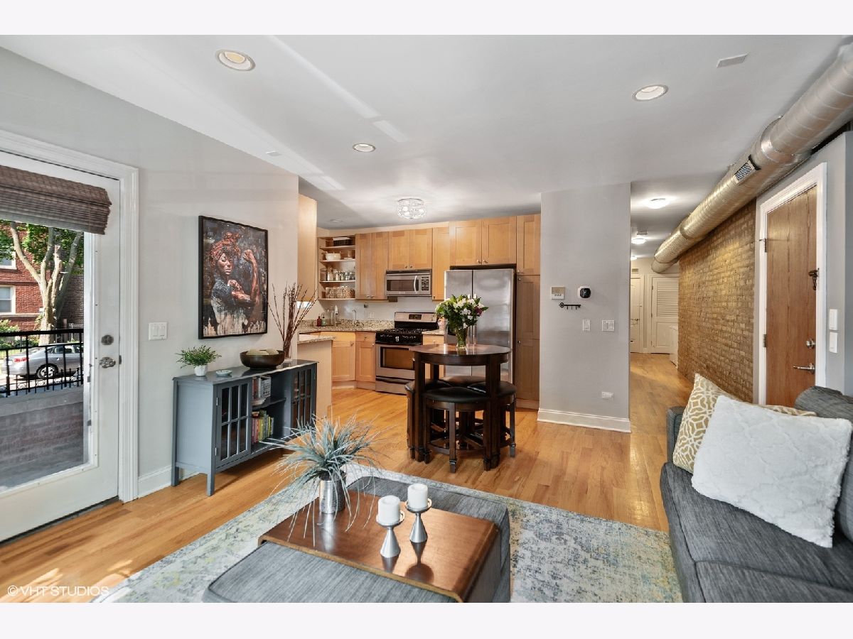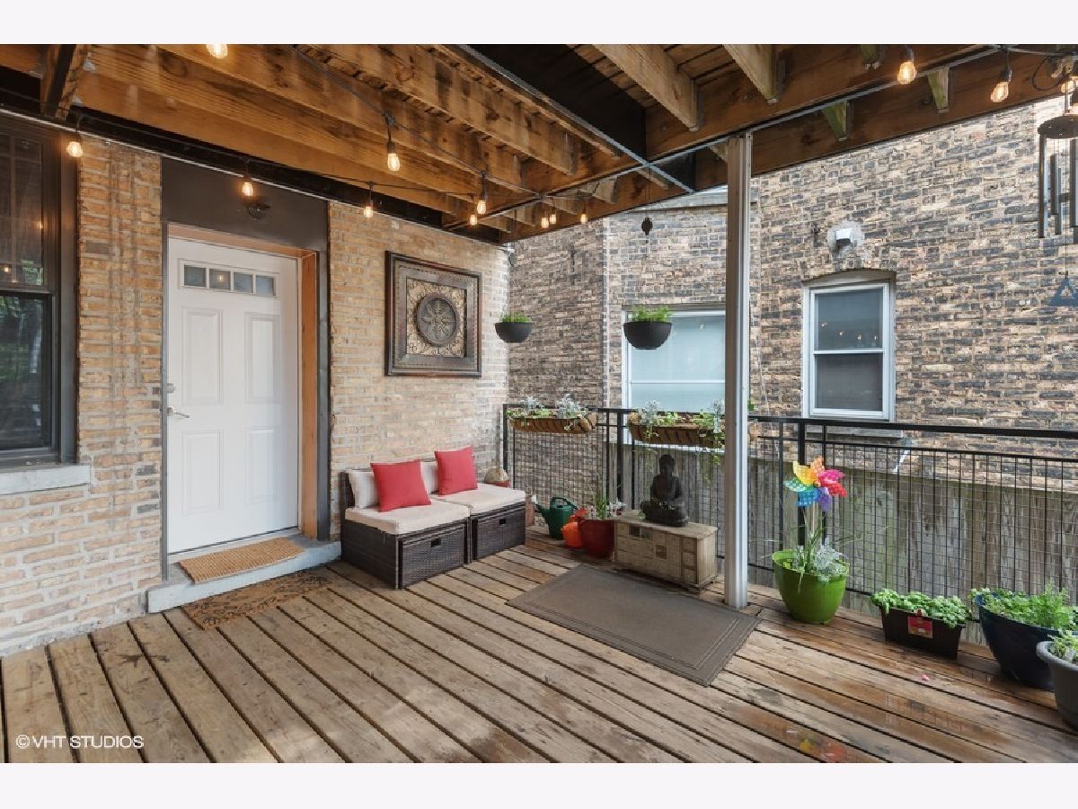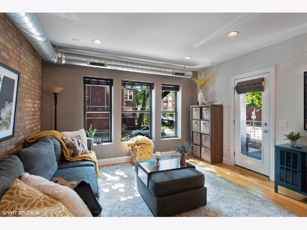 Don't miss this Rogers Park Gem! Soft loft style corner condo on a high 1st floor, with private front balcony and large back deck off unit! Unit adorned with exposed brick and duct-work, hardwood floors throughout, plus a sunny western exposure. Open kitchen with maple cabinets, granite counters, and stainless steel appliances. Primary bedroom has en-suite bath with whirlpool tub, euro vanity with granite top, marble floor, and travertine wall tile. In-unit laundry and central A/C. Unit is also equipped with Smart Home Technology which includes an Ecobee thermostat with room sensors, an Alexa-enabled OneLink smoke and carbon monoxide system with smart alarms and speakers for music, Phillips Hue smart lights throughout with dimmer switches. Garage parking is available with transferable lease and conveniently located across the street. This building has an active community with wonderful neighbors who are friendly and socialize together. Also, pet friendly and 90% owners occupied! Additional perks include a separate bike room, a fenced in yard, and additional storage. Only 3.5 blocks to Gateway Centre, Jewel, Marshalls, LA Fitness and the CTA Red/Purple Lines. Close proximity to Evanston and Lincolnwood for additional shopping and entertainment. Check out the 3D Tour.. this lovely unit checks all of the boxes and won't last long!
