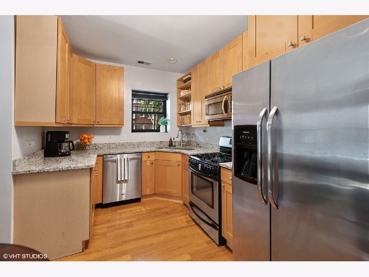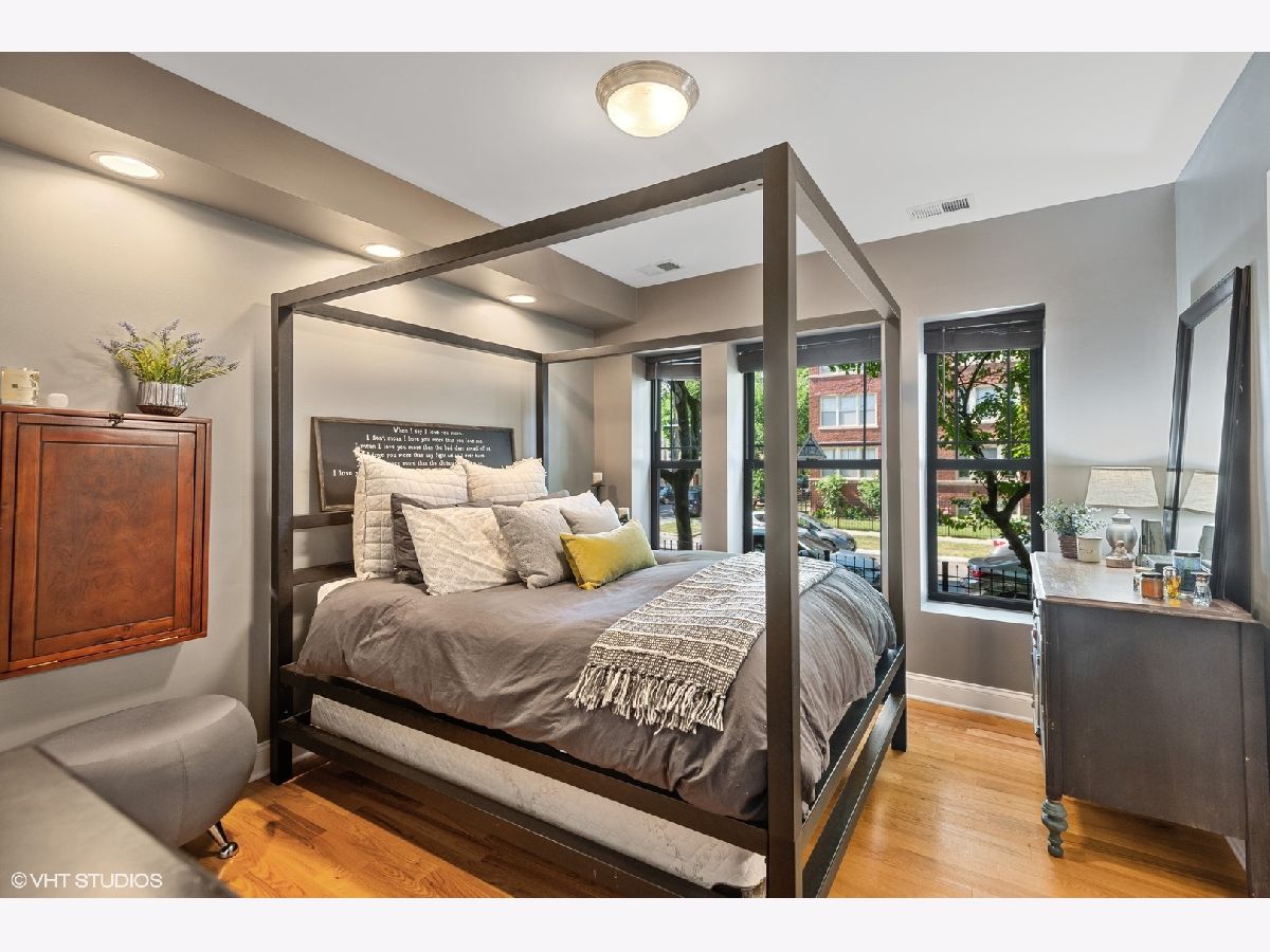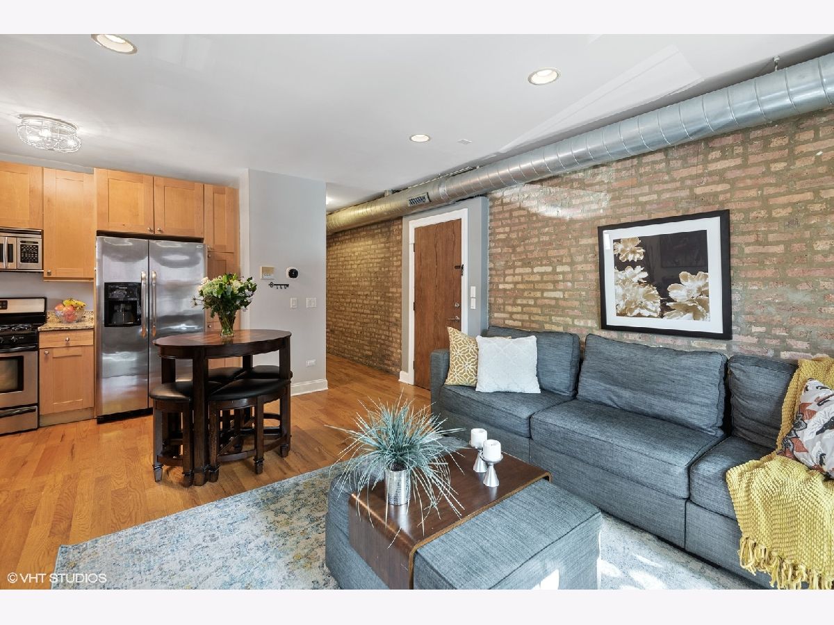Don't miss this Rogers Park Gem! Soft loft style corner condo on a high 1st floor, with private front balcony and large back deck off unit! Unit adorned with exposed brick and duct-work, hardwood floors throughout, plus a sunny western exposure. Open kitchen with maple cabinets, granite counters, and stainless steel appliances. Primary bedroom has en-suite bath with whirlpool tub, euro vanity with granite top, marble floor, and travertine wall tile. In-unit laundry and central A/C. Unit is also equipped with Smart Home Technology which includes an Ecobee thermostat with room sensors, an Alexa-enabled OneLink smoke and carbon monoxide system with smart alarms and speakers for music, Phillips Hue smart lights throughout with dimmer switches. Garage parking is available with transferable lease and conveniently located across the street. This building has an active community with wonderful neighbors who are friendly and socialize together. Also, pet friendly and 90% owners occupied! Additional perks include a separate bike room, a fenced in yard, and additional storage. Only 3.5 blocks to Gateway Centre, Jewel, Marshalls, LA Fitness and the CTA Red/Purple Lines. Close proximity to Evanston and Lincolnwood for additional shopping and entertainment. Check out the 3D Tour.. this lovely unit checks all of the boxes and won't last long!