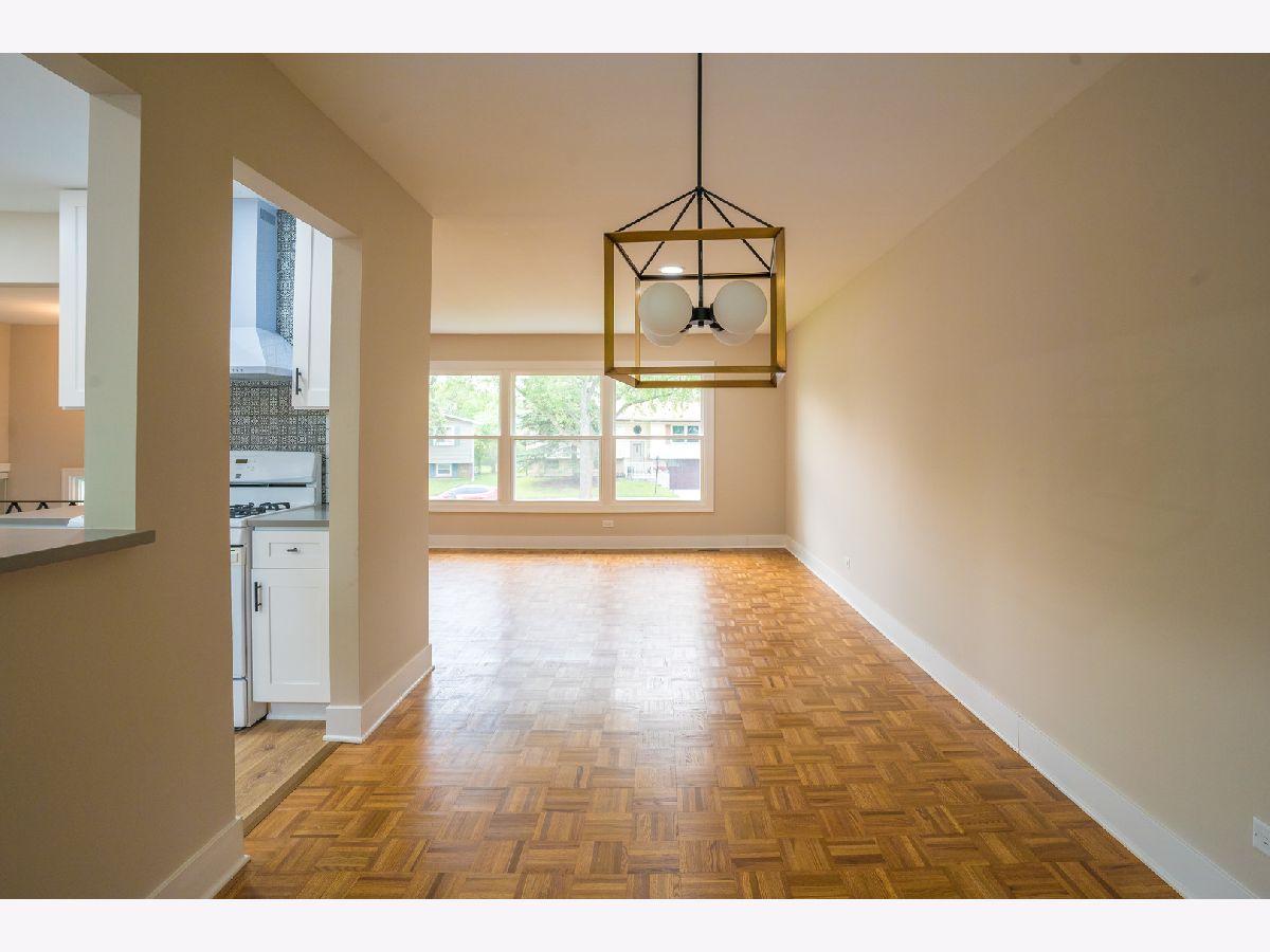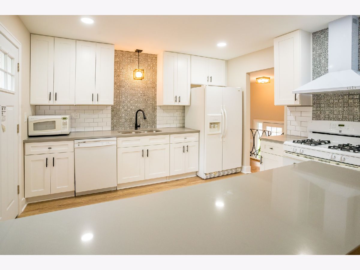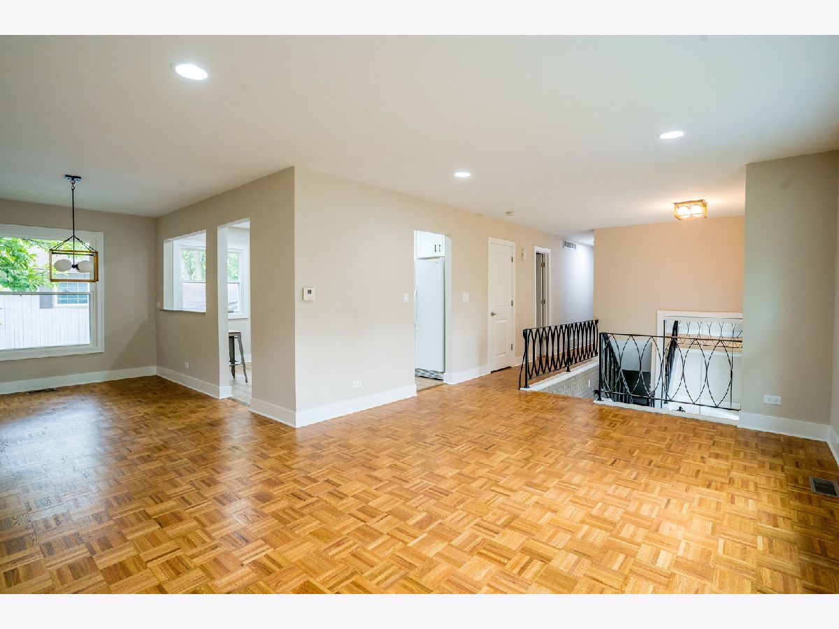 5bed/2.5bath, Fully-rehabbed house on a corner lot! Enter into large foyer and open-layout living room and L-shaped dining area. Chef's kitchen featuring eat-in breakfast bar, white shaker cabinets, quartz countertops, custom lighting, and custom luxury backsplash. Recessed lights and parquet flooring throughout lead to 4 main-level bedrooms including master-bedroom with attached updated bathroom. Lower level family room with new carpet, new lighting, 5th bedroom, half bath and laundry/storage. Fully rehabbed, custom finishes throughout, new windows, attached garage, corner lot, side yard, and new asphalt driveway! Great schools