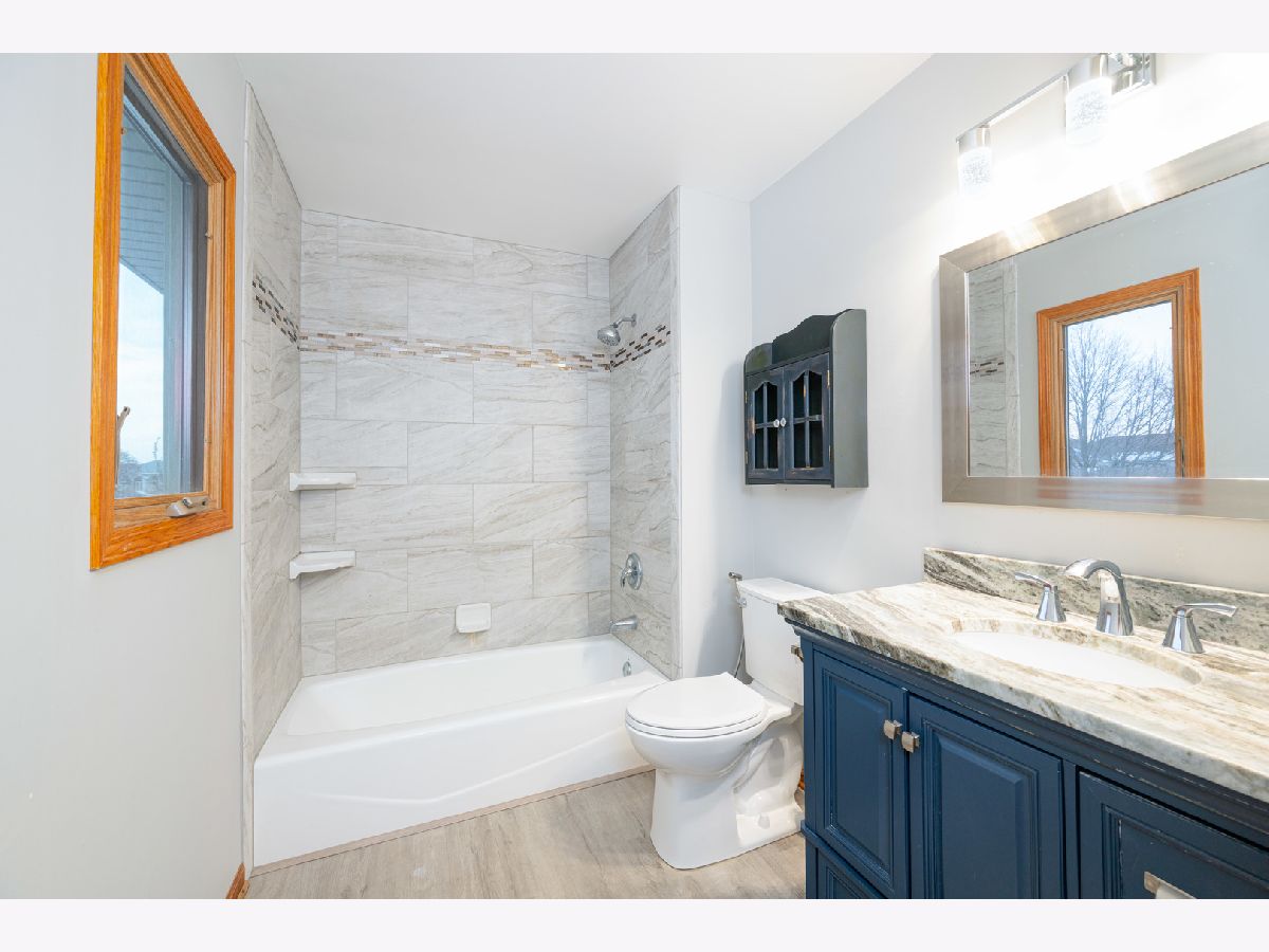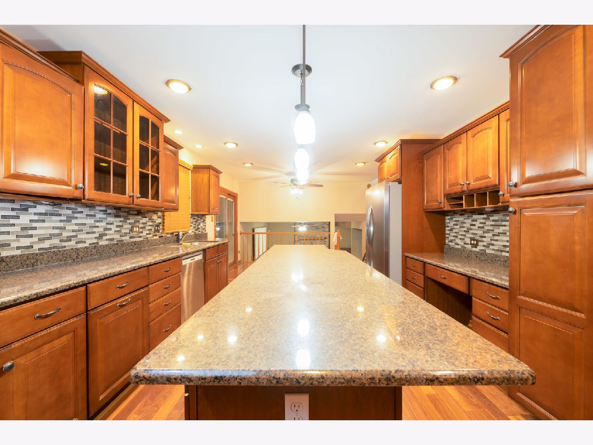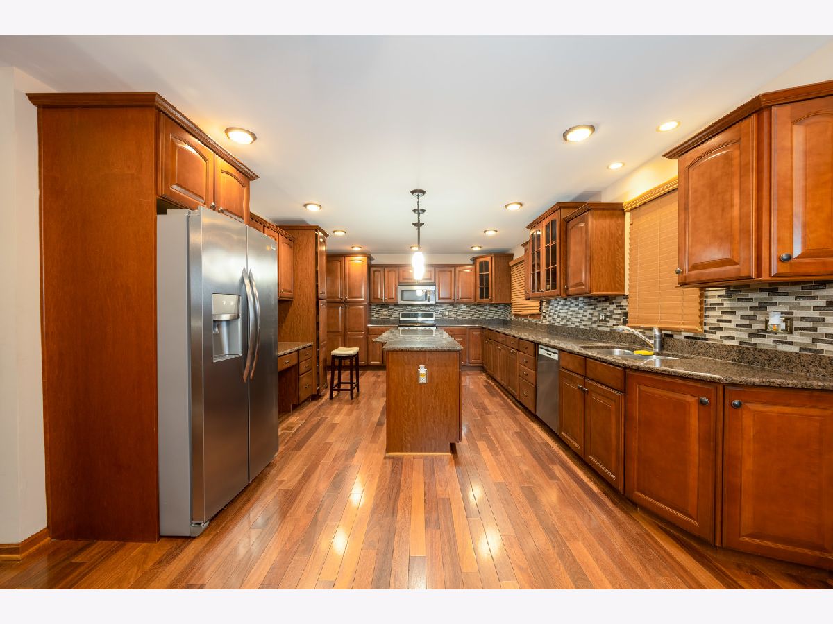 This fabulous 4 bedroom 3 bath quad level home is totally move in ready condition! The breathtaking totally remodeled kitchen features GRANITE countertops, all appliances, 2 pantry cabinets with roll out drawers an ENORMOUS center island and BRAZILIAN TEAK HARDWOOD FLOORS . The remodeled bathrooms help make this home feel new... one bathroom even has suede finished granite. You'll love the fully fenced yard with stamped concrete patio and 18' round above ground POOL as well as the shaded pavilion. There is a full finished subbasement room which can be an exercise room, entertainment room, craft room or whatever you desire. The primary bedroom suite has an ensuite bath and double closets. The upgrade list goes on and on including * Solid Oak 6 Panel Doors * Brazilian Teak Floors in Living Room * Concrete Driveway * ALL BRICK main level * New Garage Door * NEWER WINDOWS *new AC *NEW POOL SYSTEMS* Gorgeous Leaded Glass Entry Door * Gas Fireplace * ENORMOUS walk in closet in basement for all of your storage needs. Custom Blinds and all window treatments except primary bedroom stay.Newer backsplash tile, PLUS! Quick access to I-80, I-55, and the Metra Train.
