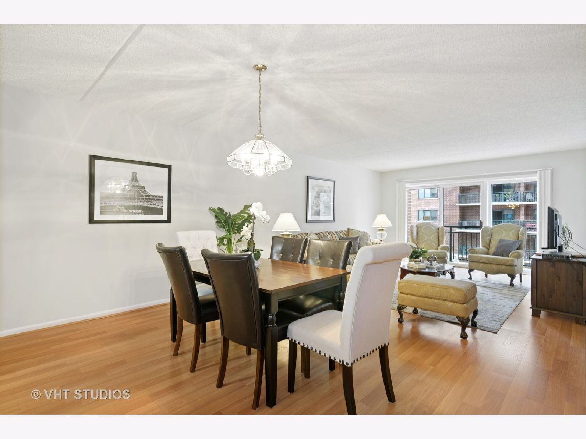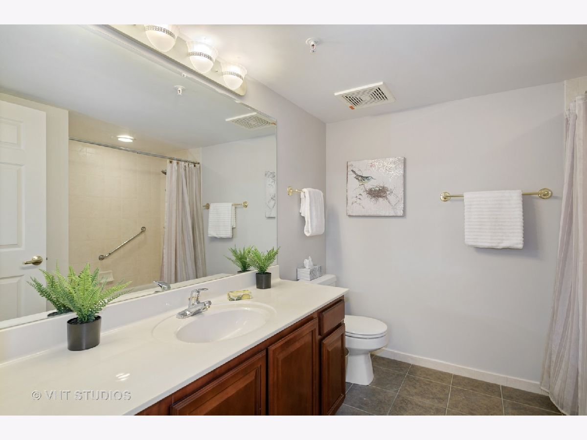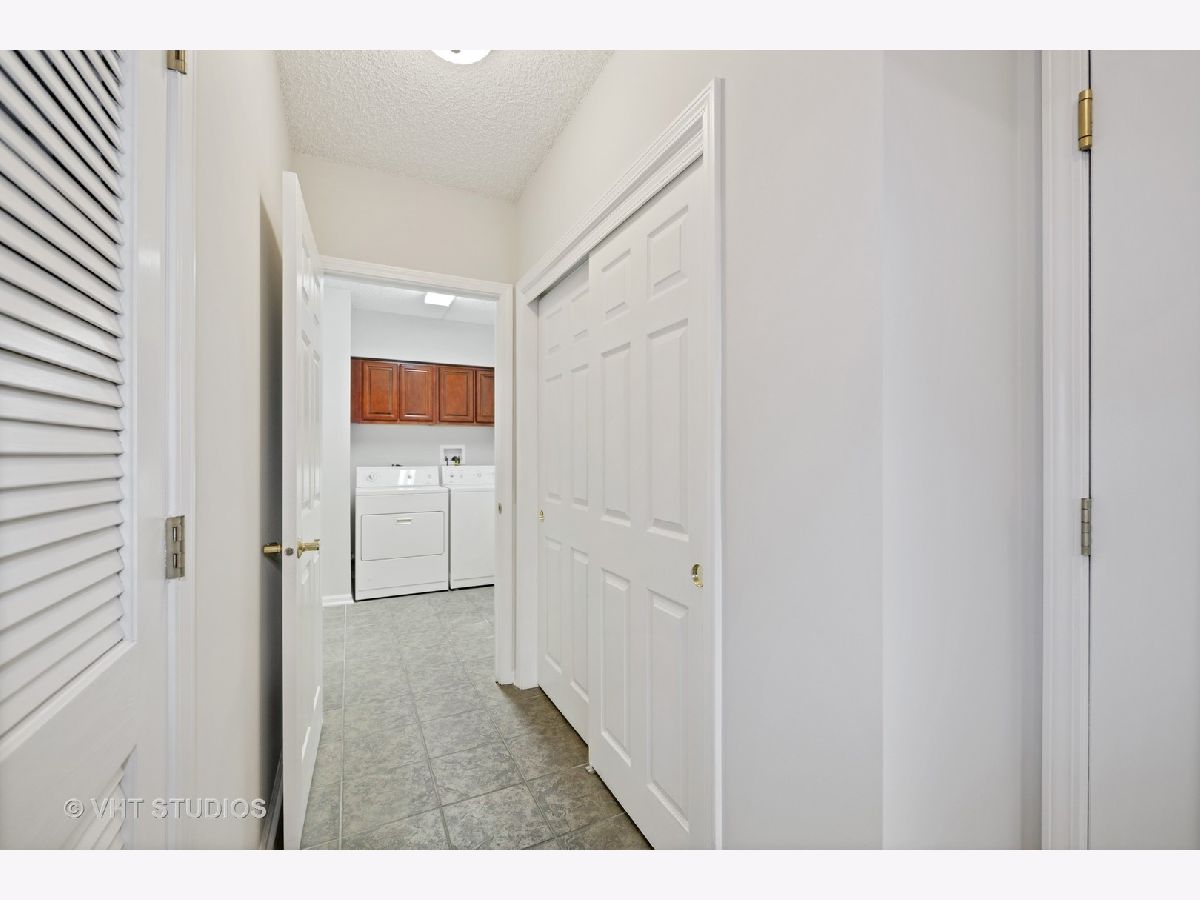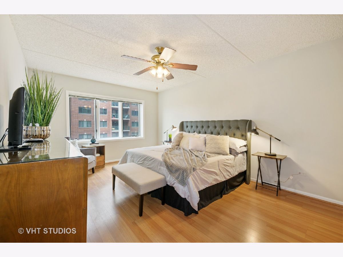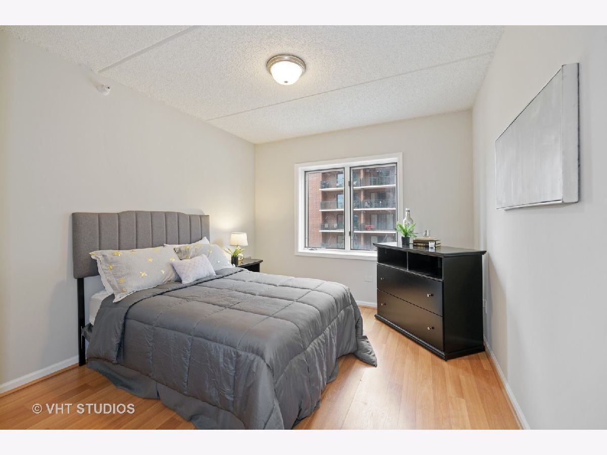 Beautiful bright & large condo at Library Courte in the heart of Des Plaines! This immense 2-bedroom + den/2-bath features an updated Cherry kitchen w/ stainless-steel appliances, Corian counters, and a large eat-in big enough for a dining table. Huge living & dining spaces that leads to a large covered balcony that overlooks the courtyard. Light laminate floors throughout & Freshly painted with neutral colors. A very large master suite and spacious spa-like master bath feature a separate walk-in shower and jetted tub. Large separate laundry room and plenty of storage too! 2 car (tandem) heated parking space with a very large storage room in front of the parking spots. 1 block to the Metra line to downtown Chicago, Pace bus and easy access to highway and minutes to Rosemont CTA and O'Hare. Walk to all the downtown area restaurants, shopping and more!! **Heat included in monthly assessments**