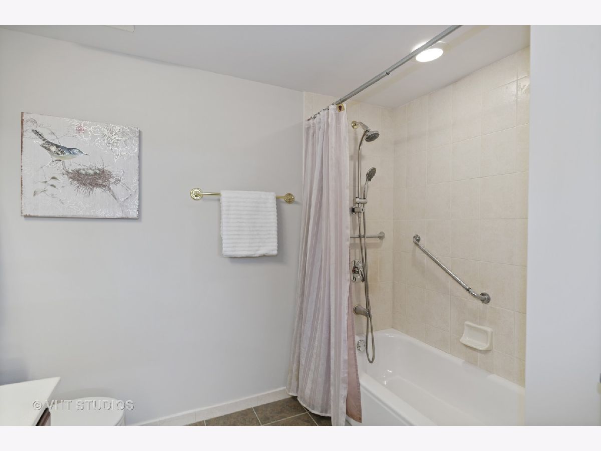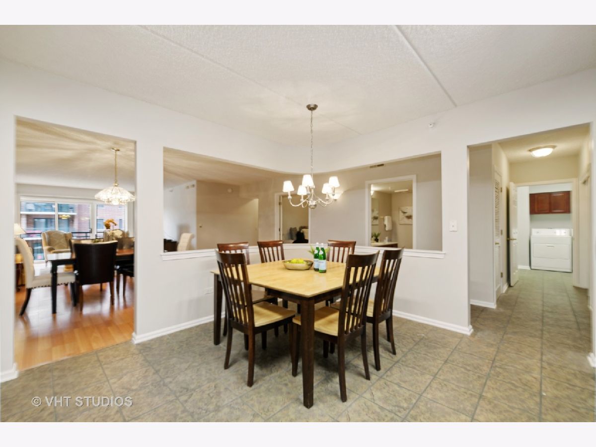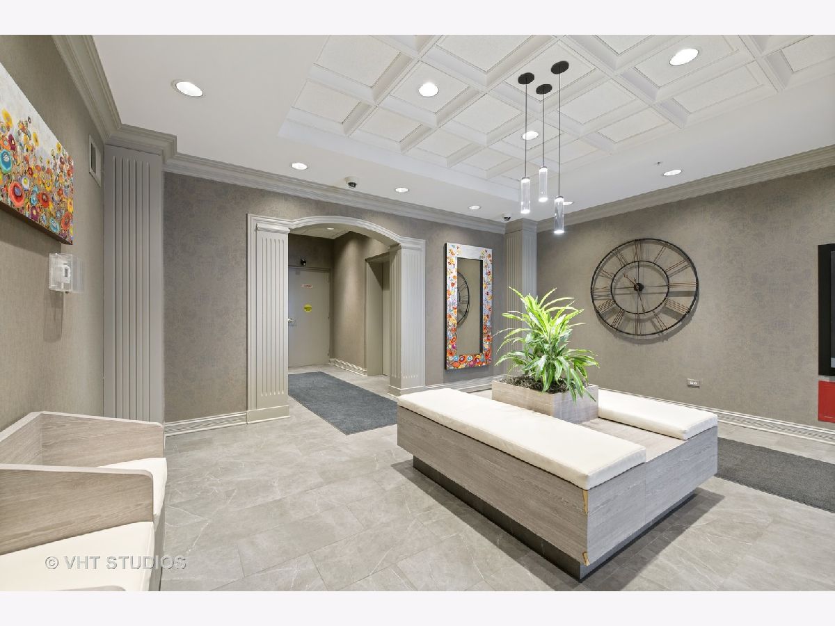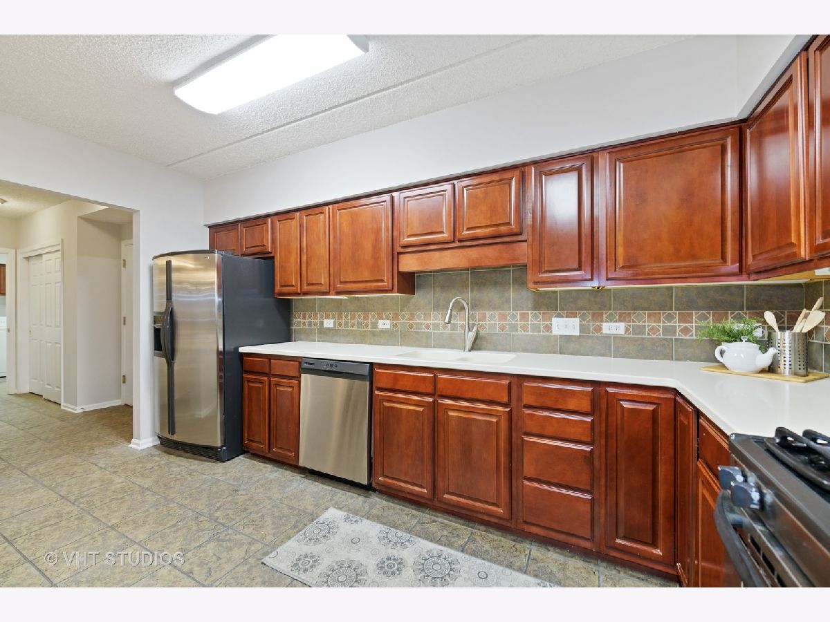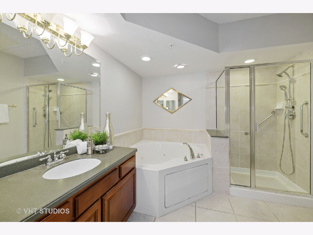 Beautiful bright & large condo at Library Courte in the heart of Des Plaines! This immense 2-bedroom + den/2-bath features an updated Cherry kitchen w/ stainless-steel appliances, Corian counters, and a large eat-in big enough for a dining table. Huge living & dining spaces that leads to a large covered balcony that overlooks the courtyard. Light laminate floors throughout & Freshly painted with neutral colors. A very large master suite and spacious spa-like master bath feature a separate walk-in shower and jetted tub. Large separate laundry room and plenty of storage too! 2 car (tandem) heated parking space with a very large storage room in front of the parking spots. 1 block to the Metra line to downtown Chicago, Pace bus and easy access to highway and minutes to Rosemont CTA and O'Hare. Walk to all the downtown area restaurants, shopping and more!! **Heat included in monthly assessments**