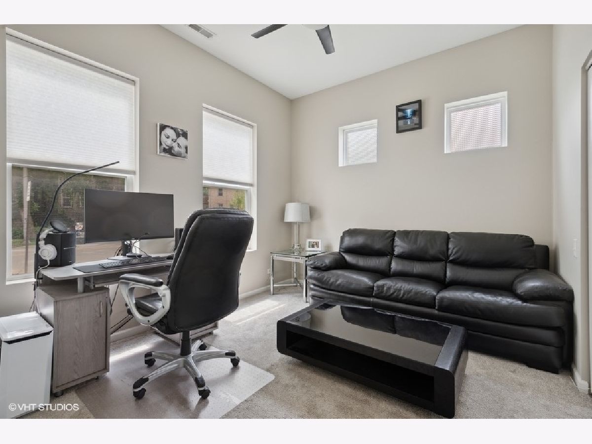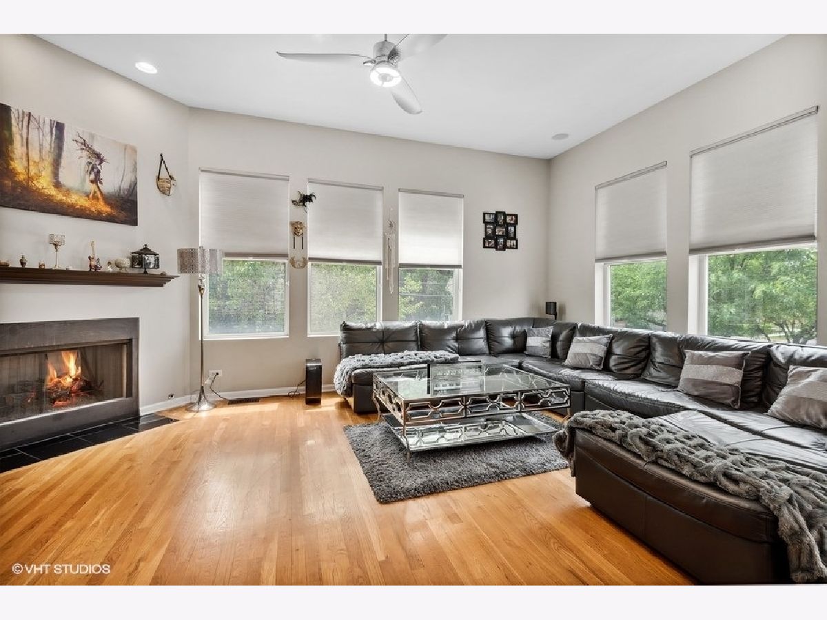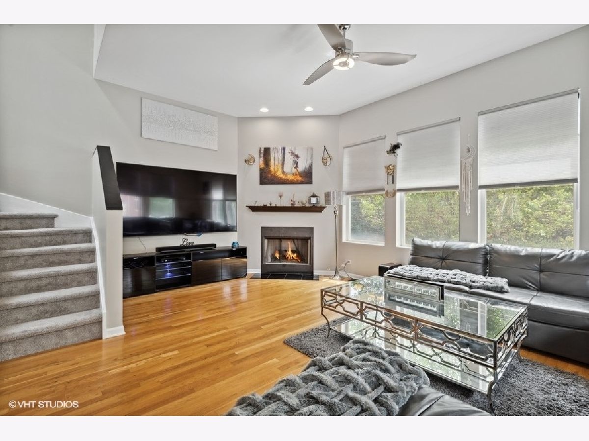Beautiful large updated 3 bedroom, 3 full bath end unit townhome close to Oak Park without the taxes. Spacious, open layout living area with 10' ceilings, gas fireplace and hardwood floors throughout. Living/Dining room open to updated kitchen with maple cabinets, granite countertops, new SS double oven stove, dishwasher, and microwave. Kitchen with sliding glass door to 20' balcony. Master en-suite with fully updated bathroom. 2nd bedroom with fully updated hallway bath. First floor bedroom/office and full bath. Lots of closets. New designer light fixtures and specialty ceiling fans throughout. Custom window treatments and newly painted. 2 car attached garage. Street parking for guests. Close walk to everything- downtown Forest Park or Oak Park shops/restaurants, Whole Foods, Jewel, Greenline and Metra.