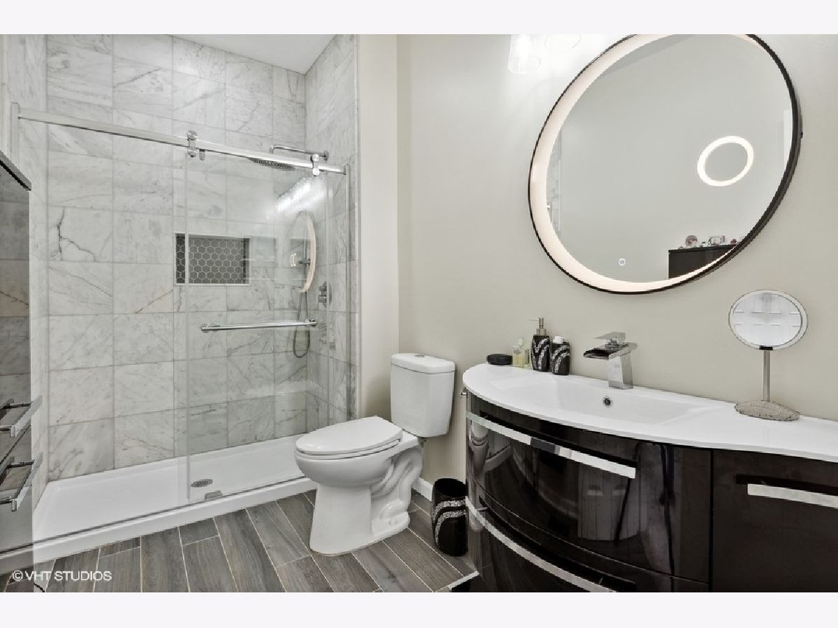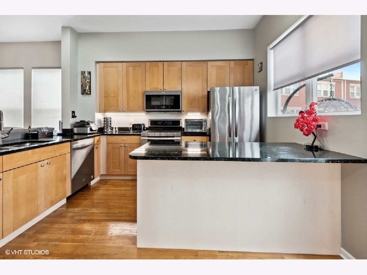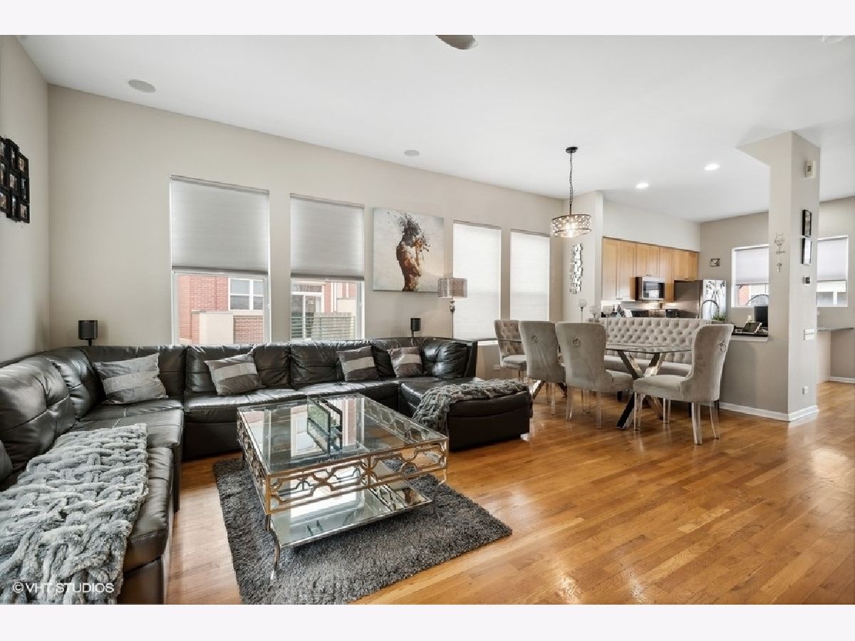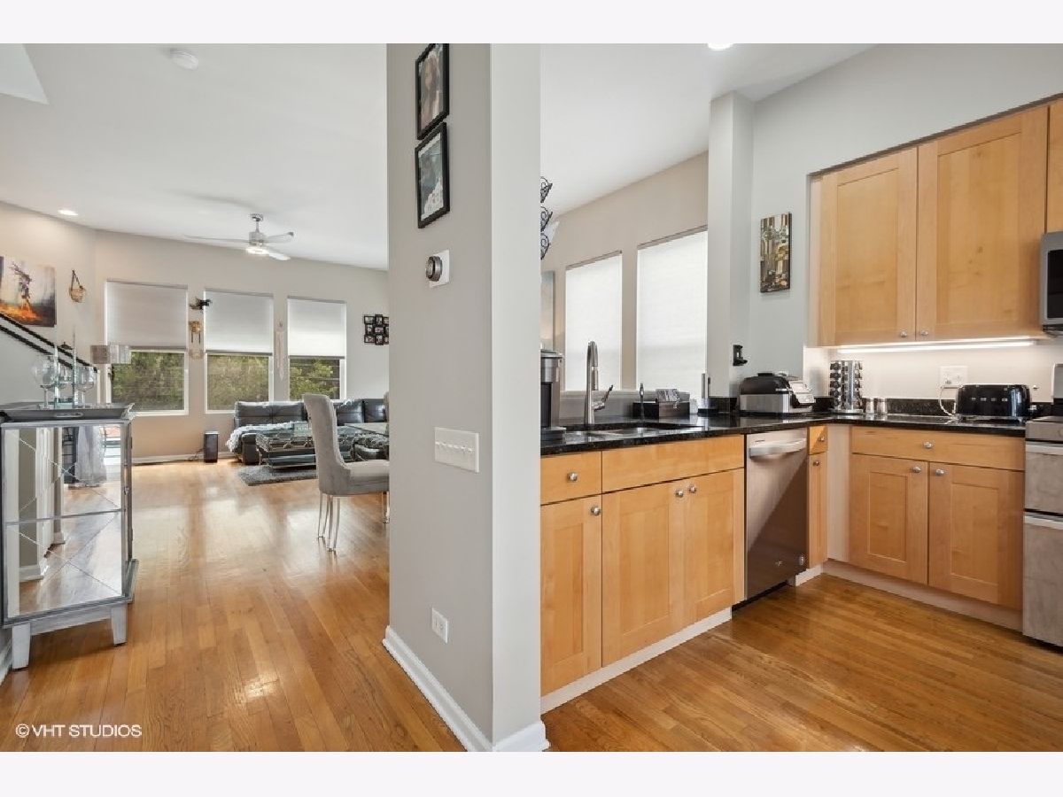Beautiful large updated 3 bedroom, 3 full bath end unit townhome close to Oak Park without the taxes. Spacious, open layout living area with 10' ceilings, gas fireplace and hardwood floors throughout. Living/Dining room open to updated kitchen with maple cabinets, granite countertops, new SS double oven stove, dishwasher, and microwave. Kitchen with sliding glass door to 20' balcony. Master en-suite with fully updated bathroom. 2nd bedroom with fully updated hallway bath. First floor bedroom/office and full bath. Lots of closets. New designer light fixtures and specialty ceiling fans throughout. Custom window treatments and newly painted. 2 car attached garage. Street parking for guests. Close walk to everything- downtown Forest Park or Oak Park shops/restaurants, Whole Foods, Jewel, Greenline and Metra.