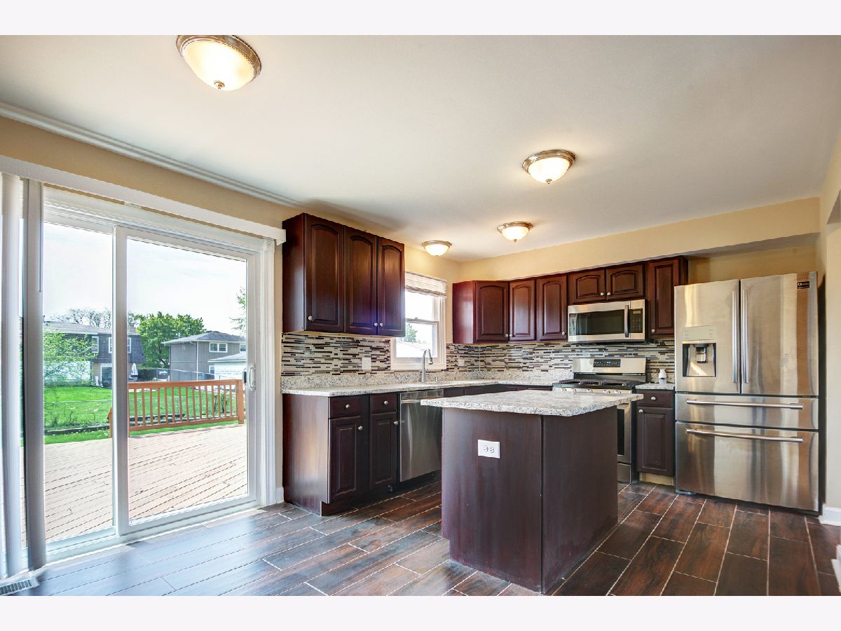 Updated and modern 5 bedroom 2.5 bath home in the heart of Tinley Park. This home features new refinished hardwood flooring throughout the main and 2nd level of home. 3rd level features a large master suite with private master bath and engineered wood flooring. New modern kitchen with granite countertops and New Stainless Steel appliances. Lower level family room with bath and vinyl plank flooring. Brand New Roof. Big private yard with large deck for entertaining. Close to shopping, train, restaurants and parks. Hurry this will not last long!