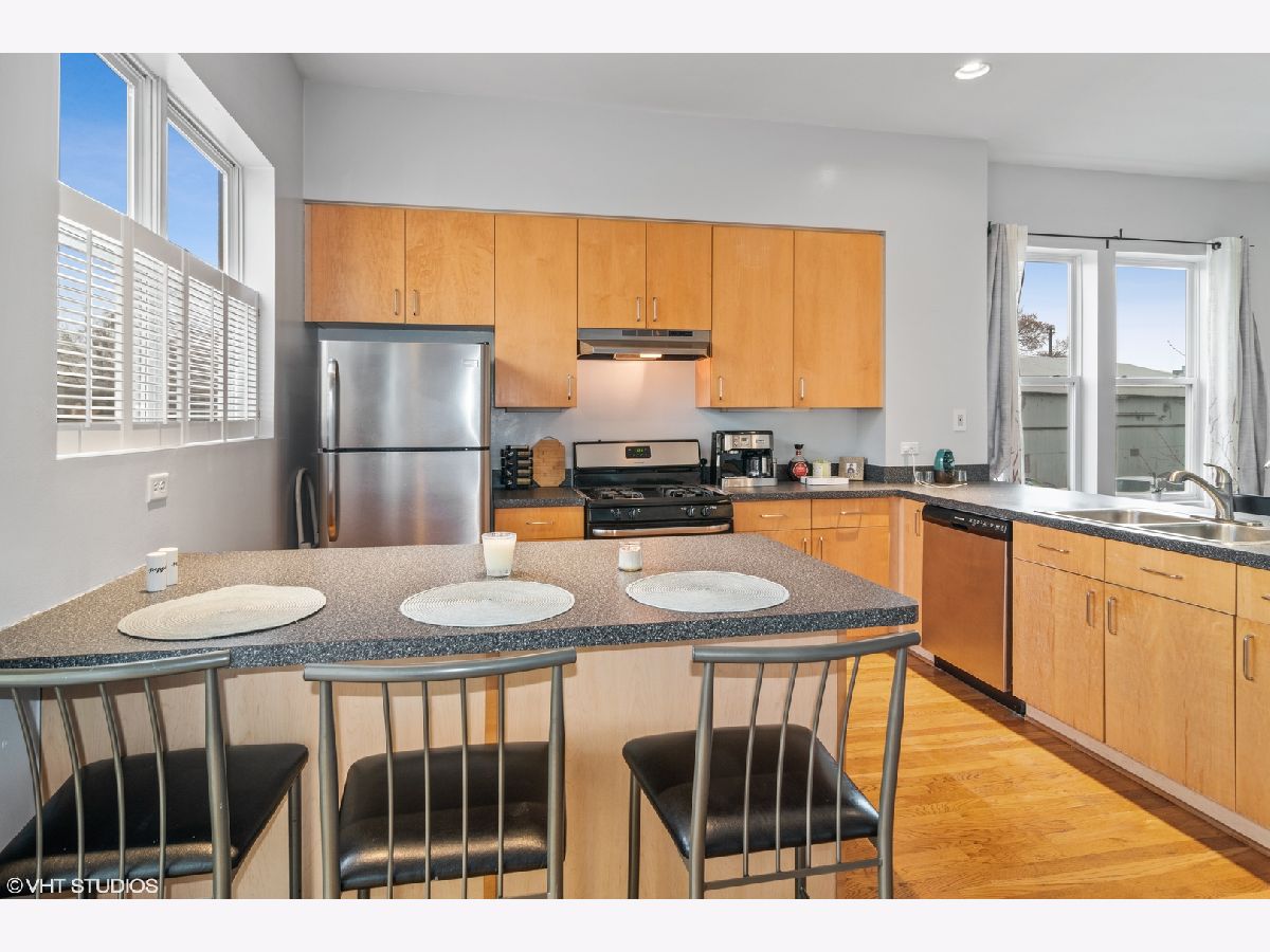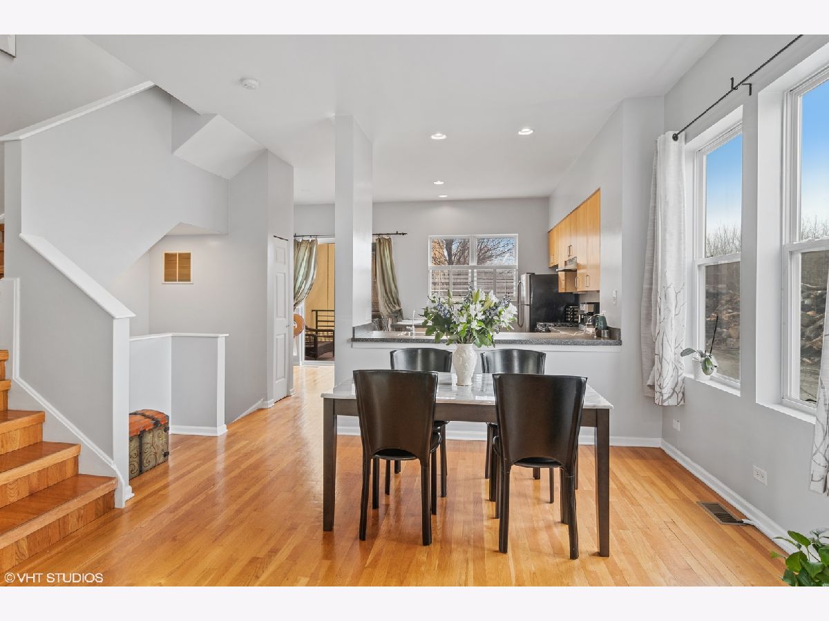 Meticulously maintained three-floor townhome located in the heart of Forest Park! This stunning open-concept home is filled with light and is located in a private section of the neighborhood. End unit with ample parking (2 car garage and space in driveway for 2 additional cars). A cozy multi-purpose room on the ground level can be used as an office, TV room, den, or guest room. The second floor has an open floor plan with an abundance of windows, high ceilings, beautiful hardwood floors, and a lovely fireplace. The kitchen has sleek flat panel maple cabinets, new stainless steel appliances, a spacious breakfast bar, and plenty of counter and cabinet space. The large deck off of the kitchen provides valuable outdoor space and is perfect for entertaining or your morning coffee. Both bathrooms in the unit have been updated with new vanities, counter tops, sleek tile, new plumbing and light fixtures. Neutral paint and crisp white trim throughout add a clean and updated feel. Walking distance to both downtown Oak Park and Forest Park with close proximity to the, Metra, CTA Blue and Green lines and the Eisenhower Expressway. New A/C (2019), New W/D (2020), New fridge, stove, dishwasher (2019), furnace (2016).