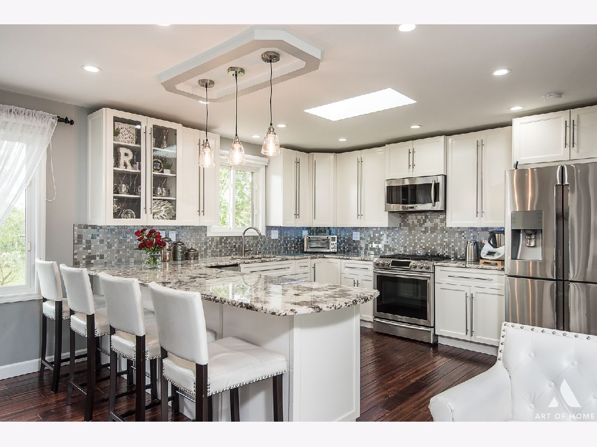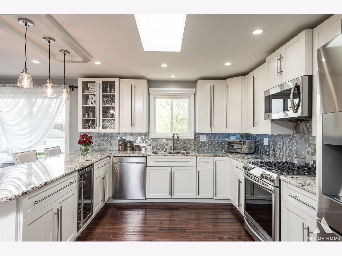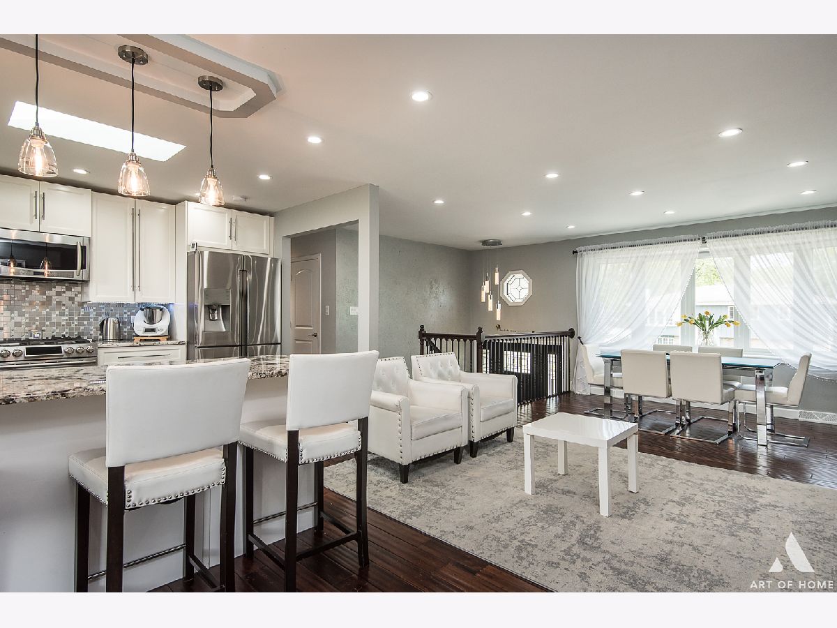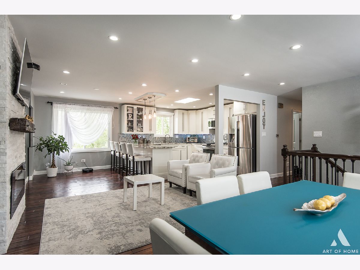 Home was recently renovated to include modern updates/finishes throughout giving this desirable bi level better than a new construction face. All updates have been done for owners own enjoyment not for a quick flip therefore expect the best quality, craftsmanship and functionality! Property features 4 main level bedroom, 2.1 baths & open concept living making it a dream to entertain. Hardwood floors, beautiful light fixtures, recessed lighting, 2 floor to ceiling fireplaces, custom painted walls. Fully fenced in yard with dual level pavers brick patios, playground and storage shed easily accessible through a ground level walkout basement. Full of natural light! Kitchen features lots of cabinet space, island that provides seating, granite counter tops, decorative back splash & SS appliances. Bathrooms have also been redone w/stylish vanities & mirrors and lighting, decorative tiling, whirlpool or separate shower plus more. Master Bedroom provides privacy with a private bathroom. 2 car attached garage with additional 3 designated parking spaces on a concrete driveway. Excellent school district, close proximity to schools, shopping, highways, Metra etc. Low taxes. Schedule today. VA & FHA Welcome.