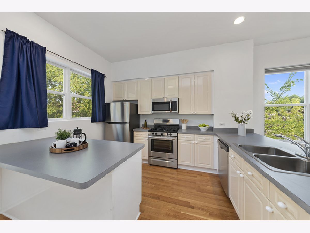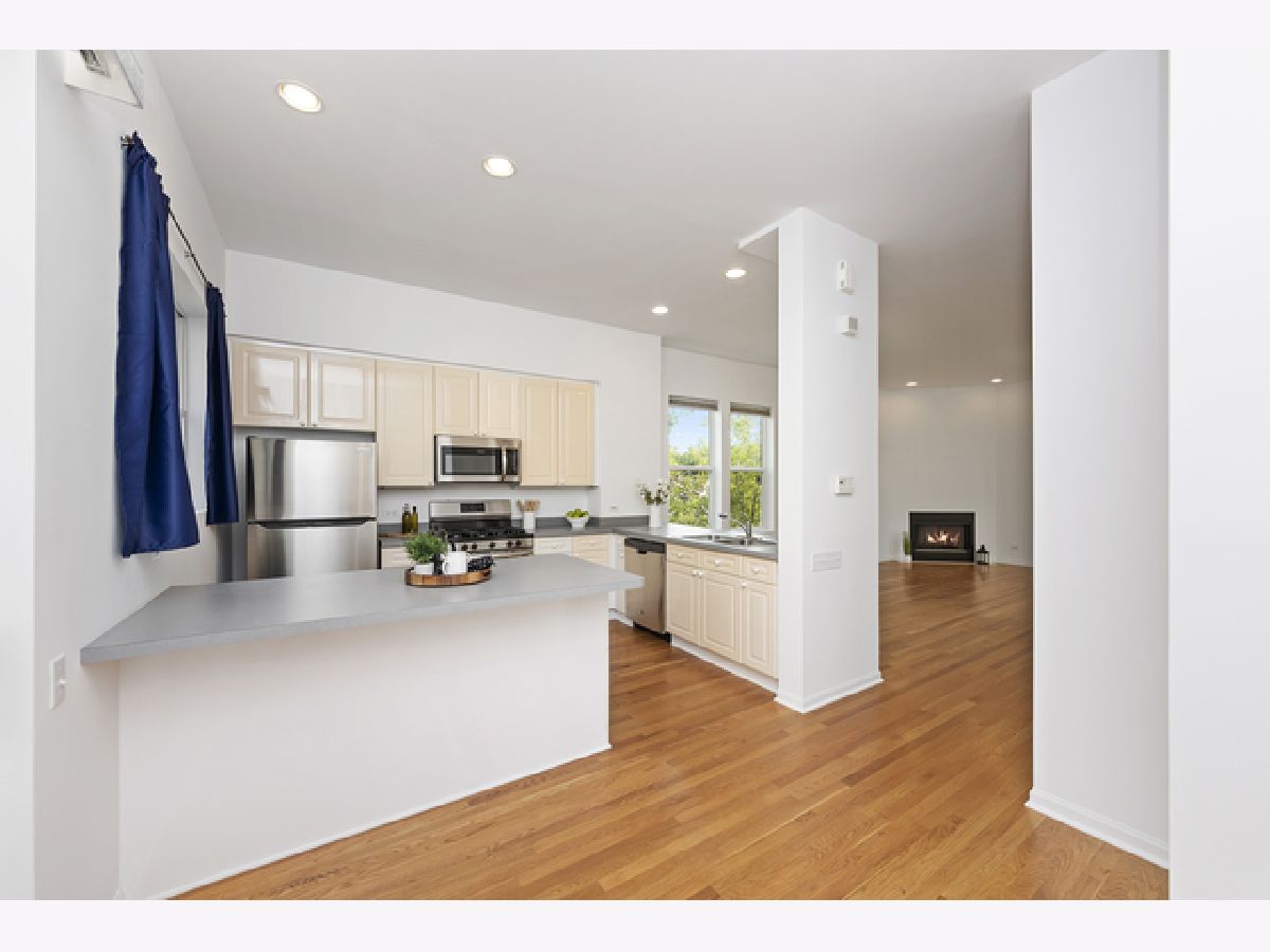 Meticulously maintained three level townhouse in Brown Street Station. This end unit offers a freshly painted interior with upgraded main level hardwood floors. This spacious townhouse has two bedrooms, two full baths and a two car garage that has additional parking space in front of it. The kitchen has NEW stainless steel appliances and is open to the living/dining area perfect for entertaining. The large windows let in an abundance of natural light and allows you to enjoy the winter snow falls while staying cozy and warm in front of the gas fireplace. Third floor master suite with master bath has plenty of closet space, the second bedroom has its own hall bath. The first floor entrance from outside or the garage gives you added space including a large closet, laundry and storage room. Great location near downtown Oak Park, close to I-290, Green Line or Metra making commuting easy.