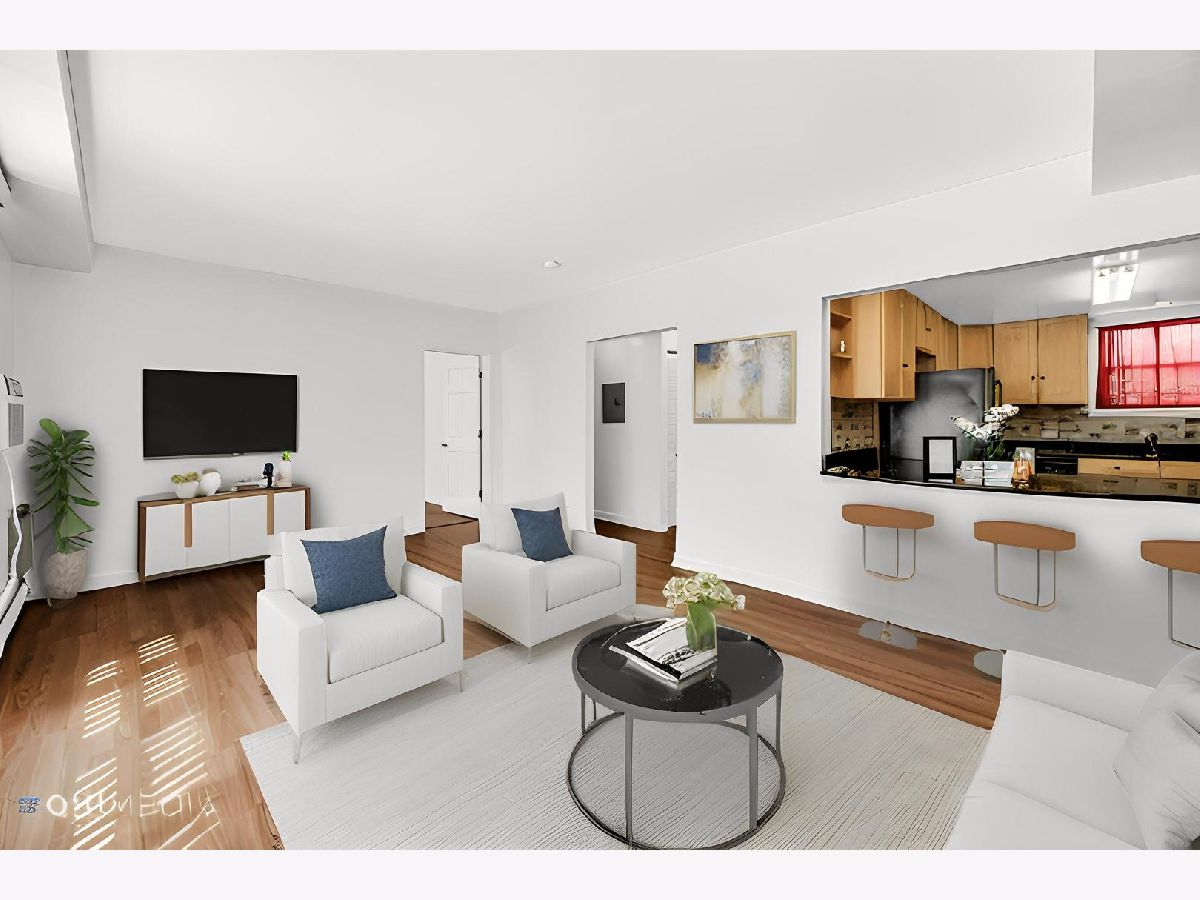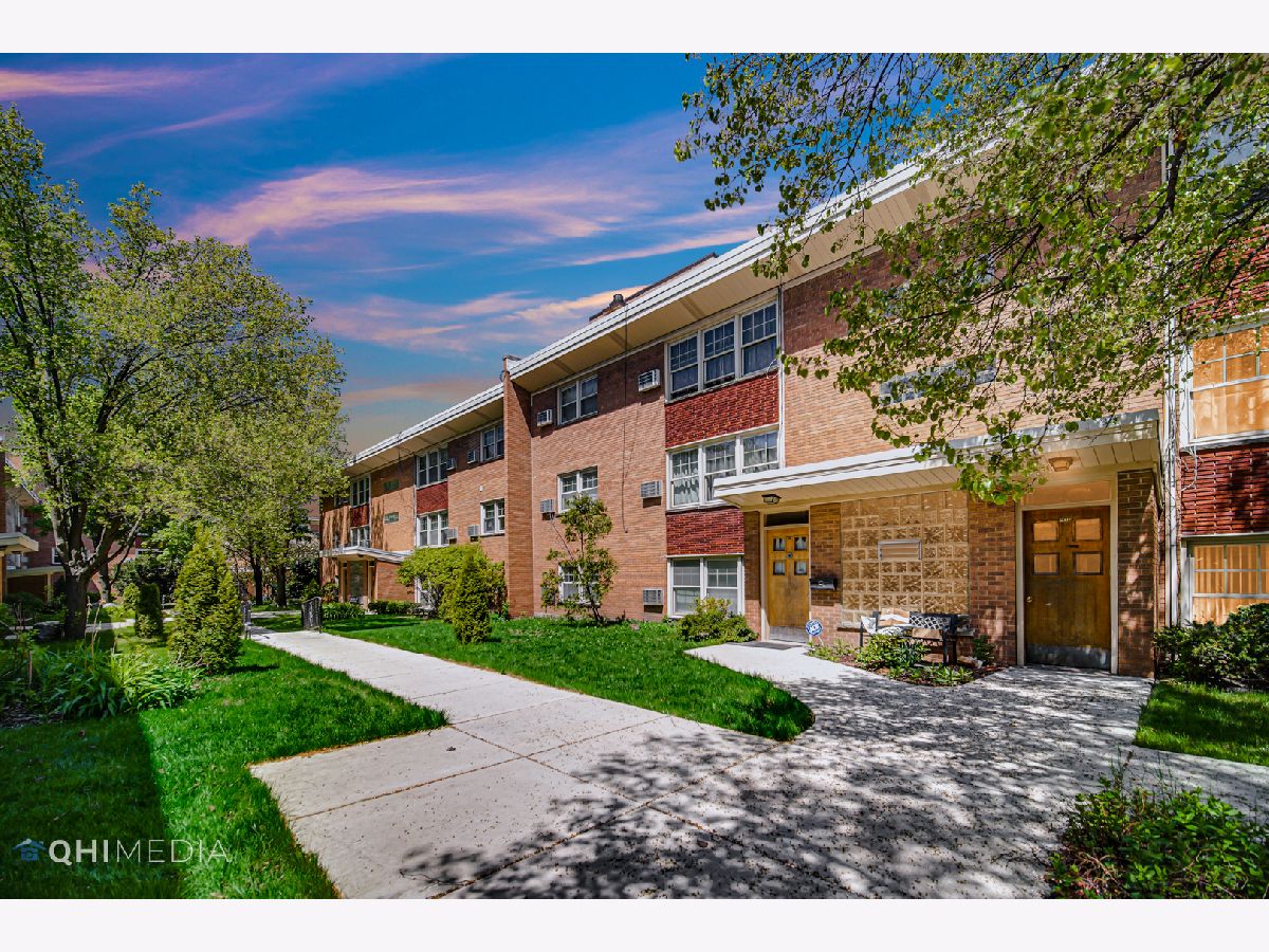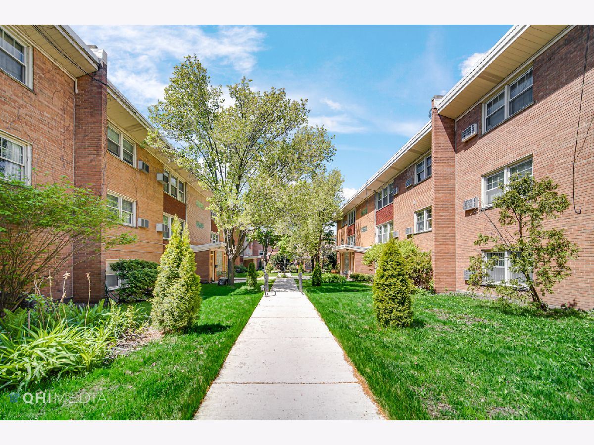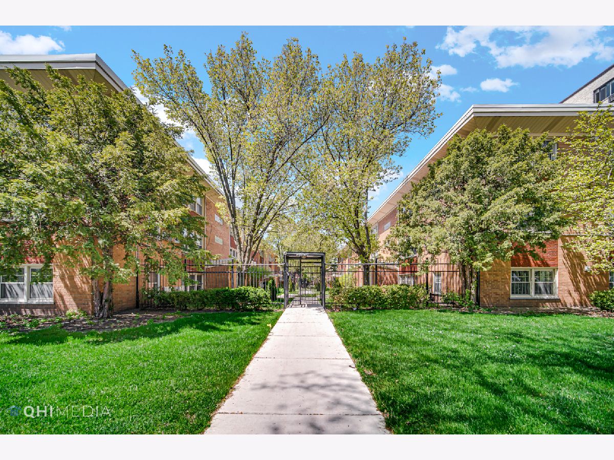 West Ridge bright and open ground floor 2BR and 2BA condo with private entrance. Hardwood floors throughout, Kitchen has 42" maple cabinets with granite counters, Primary bath has jacuzzi tub and updated vanity, second bath enclosed shower and updated vanity and new ac unit in living room. In unit laundry, large storage cage and PARKING INCLUDED. Paved GARDEN COURTYARD & Gated entrance. Convenient location- blocks from shopping mall, bus stop on corner that can take you to the Redline, located within minutes of Loyola and Northwestern. PERFECT FOR INVESTORS OR OWNER OCCUPANTS.