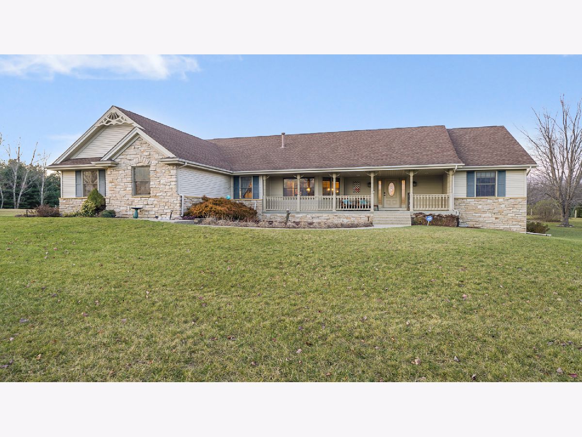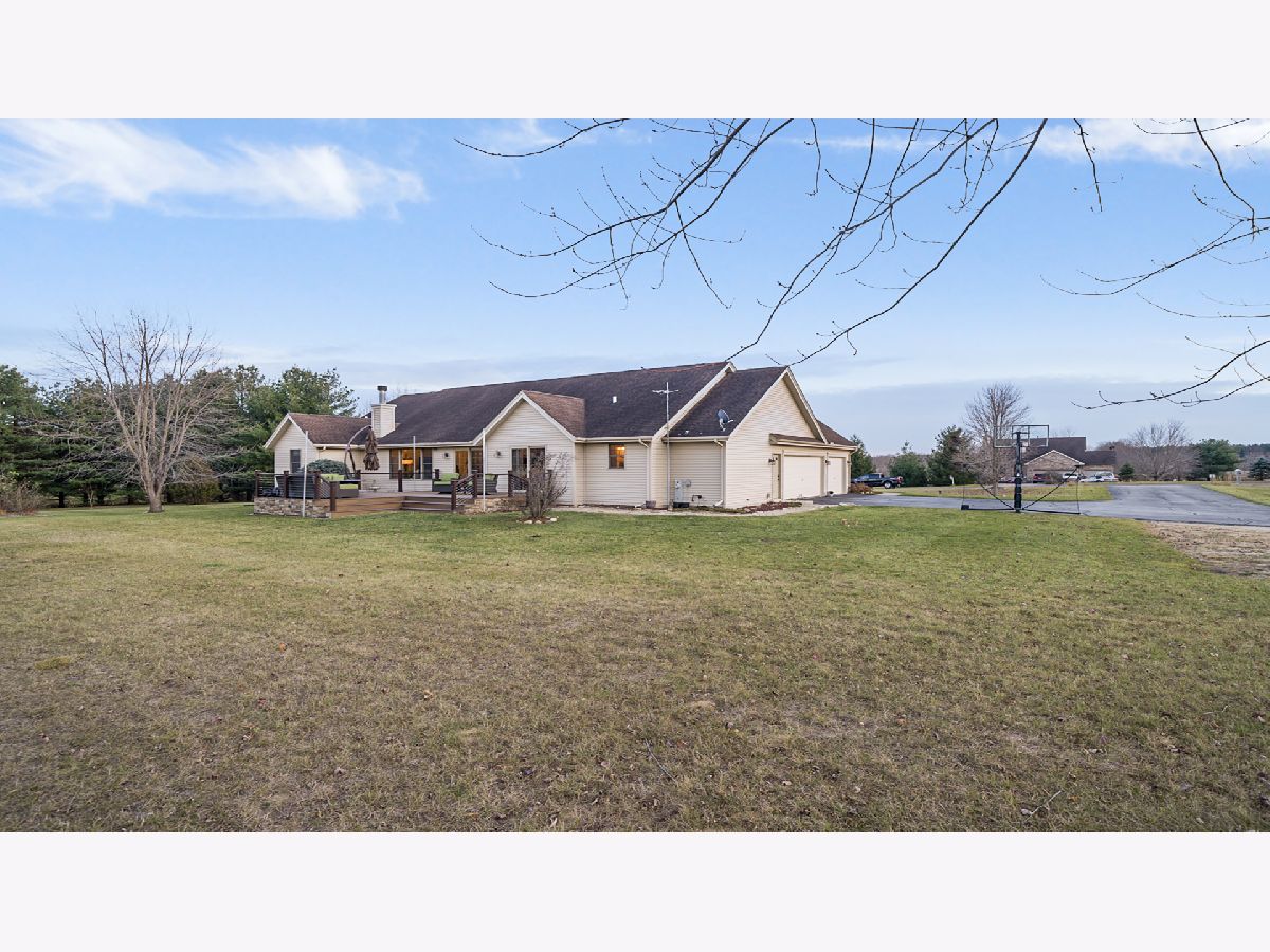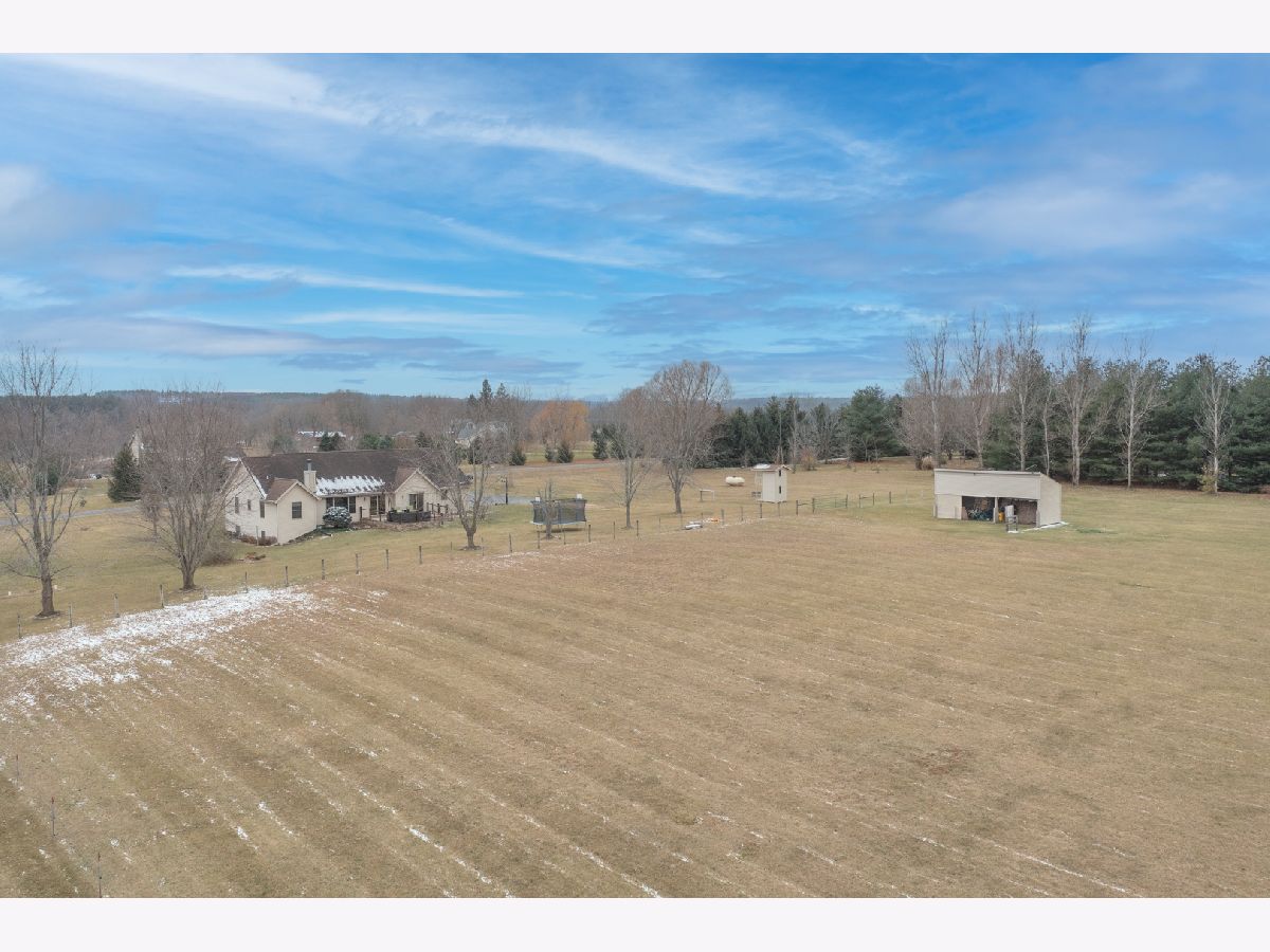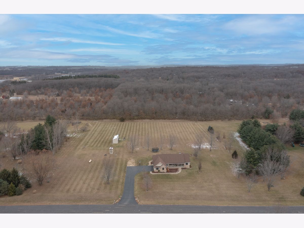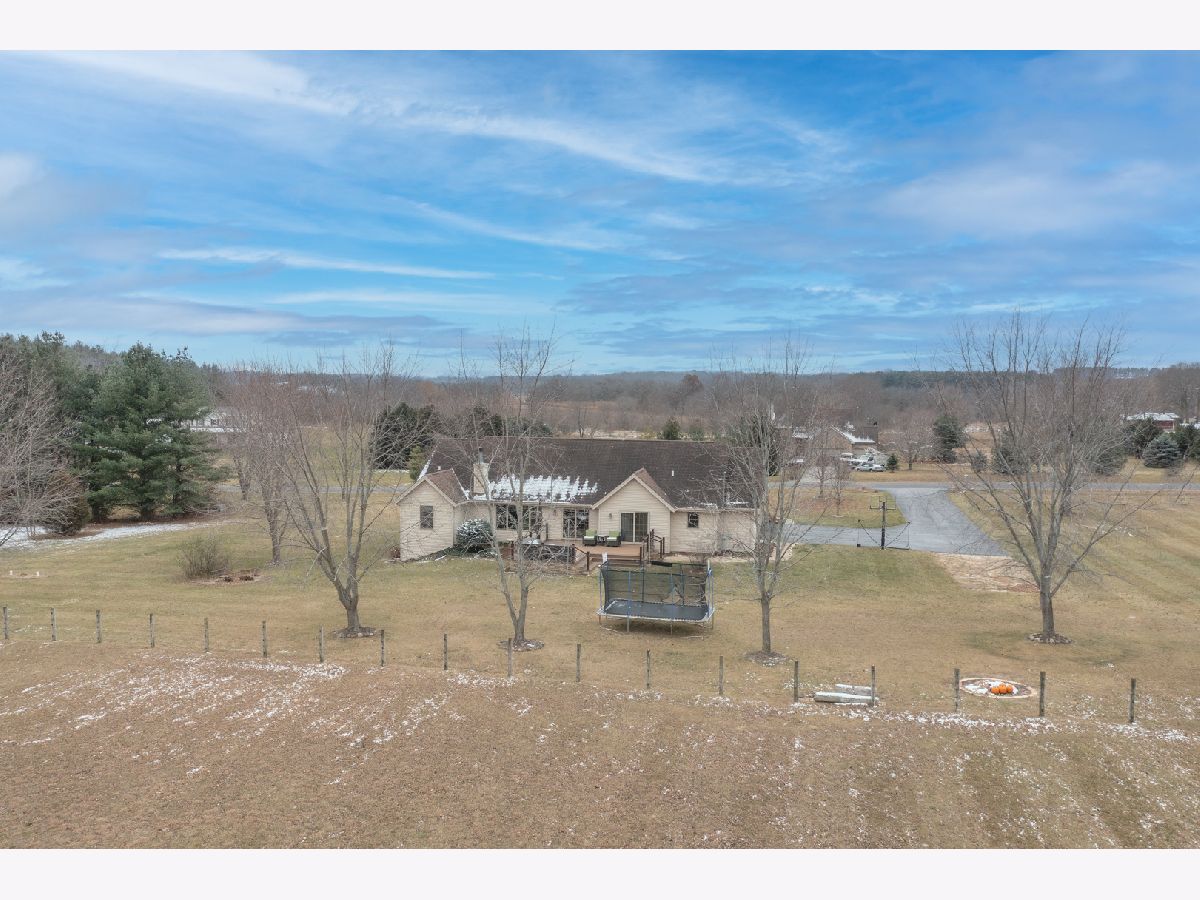 Country subdivision in Byron school district! This stunning 5 BR, 3.5 BA ranch sits on 4.23 acres and is yet only 5-10 minutes from town. The family room is spacious with its cathedral ceilings, hardwood floors and stone wood burning fireplace. The kitchen/dinette area continues with the cathedral ceiling and has granite countertops and backsplash with raised panel oak cabinets. All appliances stay & it has a garbage disposal. Dinette has patio doors to the composite deck with stainless cable rails ('17). Office area off kitchen has hardwood floors and large pantry. Laundry area and 1/2 BA off garage remodeled in 2020. MBR is oversized with chauffeured ceiling, newer carpet ('19) and patio door to deck. Huge walk-in closet/bonus area next to the MBA with granite countertops and newer shower door. Being a split bedroom plan it has 2 more bedrooms and full bath on other side of family room. Open stairway to finished LL with big rec room, 2 large bedrooms and a full BA. 3 car finished garage. Stone/vinyl exterior and oversized covered front porch. Large fenced pasture area with lean-to for horses/animals. Playhouse stays, fire pit, LP gas tank rented ($50/yr), Well tank new 2021, wired for security, Ring doorbell stays to see driveway and backyard, furnace ('18), AC condensing unit ('15) and A-coil ('19), Hybrid hot water heat pump can use both LP gas or electric, water softener, whole house filter, sump pump.