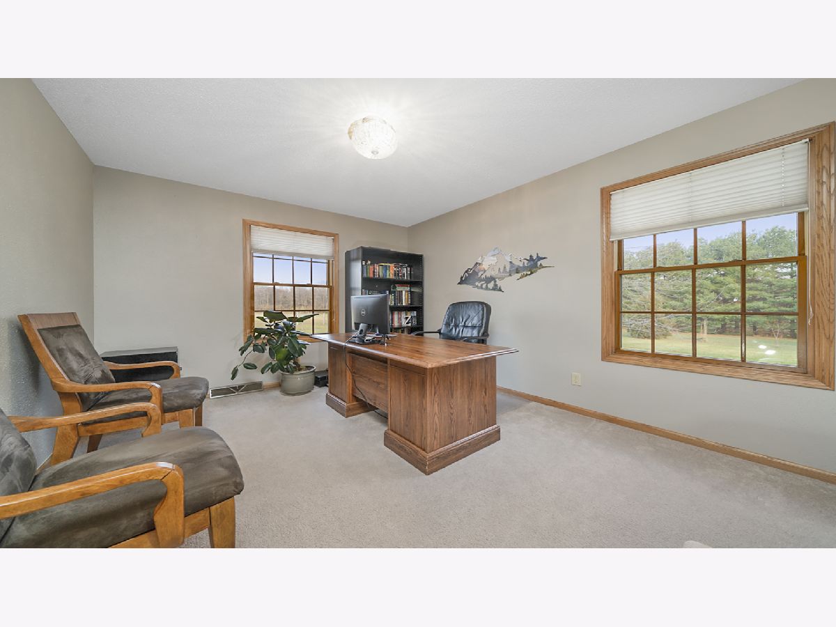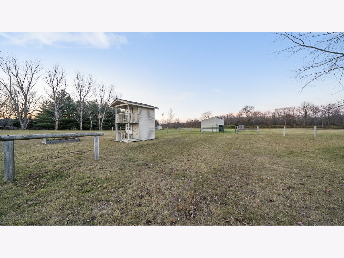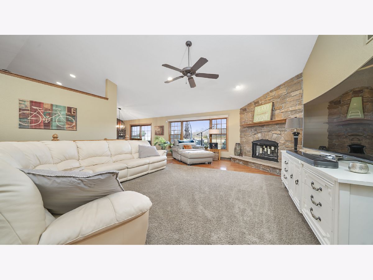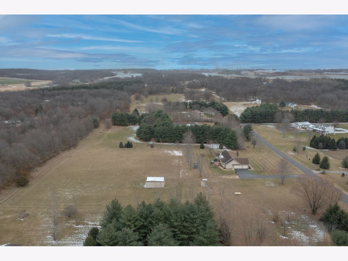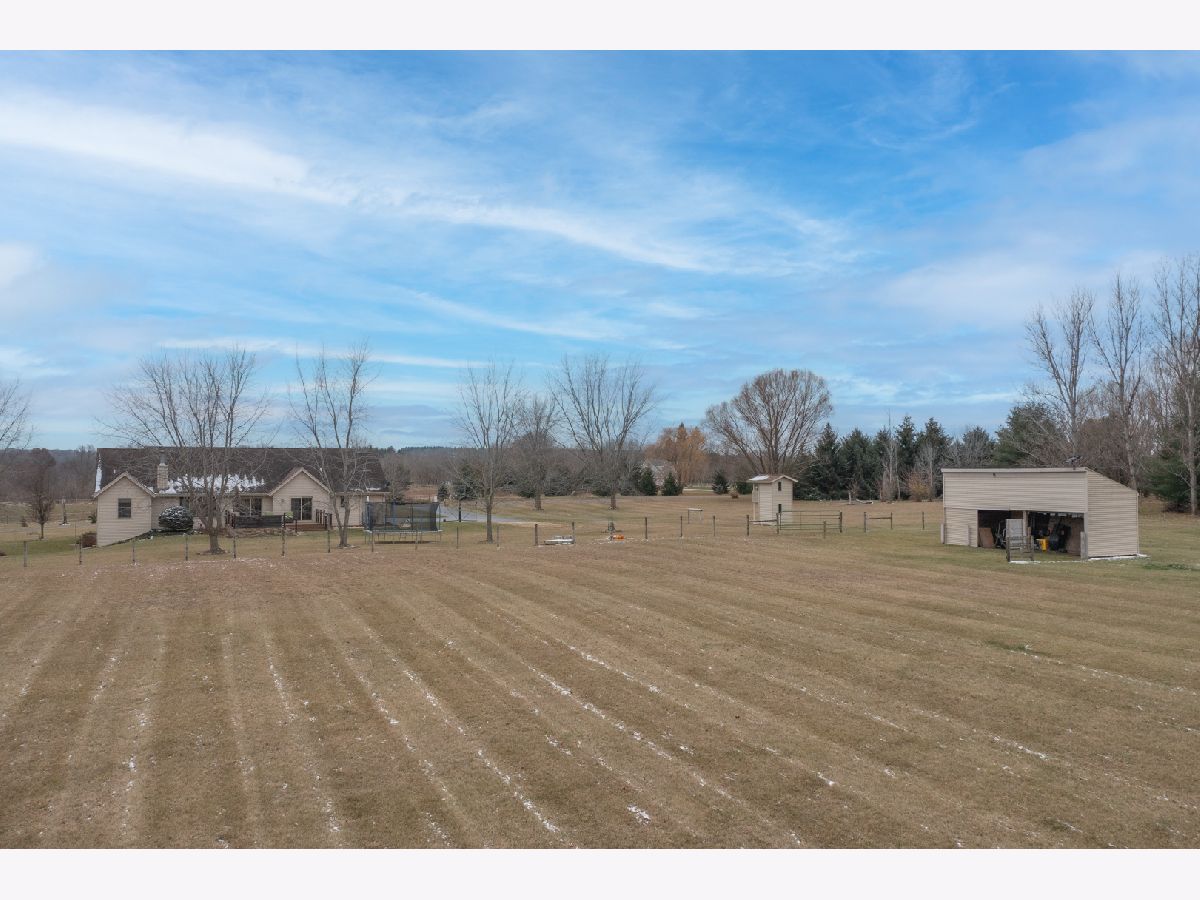Country subdivision in Byron school district! This stunning 5 BR, 3.5 BA ranch sits on 4.23 acres and is yet only 5-10 minutes from town. The family room is spacious with its cathedral ceilings, hardwood floors and stone wood burning fireplace. The kitchen/dinette area continues with the cathedral ceiling and has granite countertops and backsplash with raised panel oak cabinets. All appliances stay & it has a garbage disposal. Dinette has patio doors to the composite deck with stainless cable rails ('17). Office area off kitchen has hardwood floors and large pantry. Laundry area and 1/2 BA off garage remodeled in 2020. MBR is oversized with chauffeured ceiling, newer carpet ('19) and patio door to deck. Huge walk-in closet/bonus area next to the MBA with granite countertops and newer shower door. Being a split bedroom plan it has 2 more bedrooms and full bath on other side of family room. Open stairway to finished LL with big rec room, 2 large bedrooms and a full BA. 3 car finished garage. Stone/vinyl exterior and oversized covered front porch. Large fenced pasture area with lean-to for horses/animals. Playhouse stays, fire pit, LP gas tank rented ($50/yr), Well tank new 2021, wired for security, Ring doorbell stays to see driveway and backyard, furnace ('18), AC condensing unit ('15) and A-coil ('19), Hybrid hot water heat pump can use both LP gas or electric, water softener, whole house filter, sump pump.