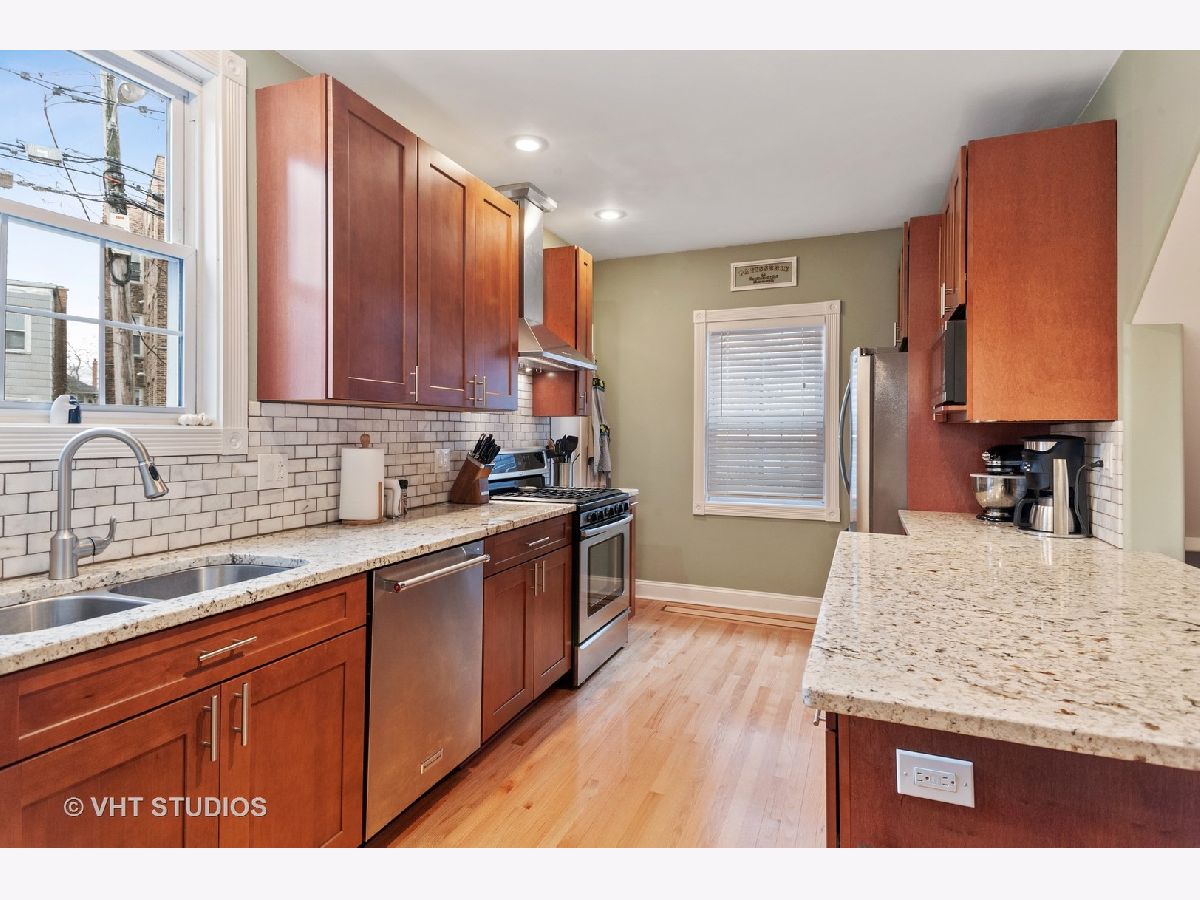 CHECK OUT OUR MATTERPORT FOR VIRTUAL SHOWING...WALK THROUGH THE PROPERTY WITH YOUR FINGERTIP! Completely Renovated Turn-Key Home in Rogers Park that is priced as a condo. Kitchen was just completed with Custom Cabinetry, all SS Appliances, and Granite Countertops! Plenty of storage with a walk-in pantry, walk-in master closet and great finished basement. Gleaming oak hardwood floors w/maple and mahogany accents on first floor and Maple HW floors on second level. Separate dining room for formal entertaining. Living room with wood burning fireplace and oak mantle opens via french doors to heated sun porch. Great finished basement. Two updated full baths, one with jaccuzzi tub. Super sized bedrooms with a VERY GENEROUS walk-in master closet. Delightful brick courtyard with easy access to garage. Ready for it's new owners! Great location for commuters at an affordable price!! 1.5 blocks to Howard station, 2.5 blocks to lake, and minutes to major bus lines!
