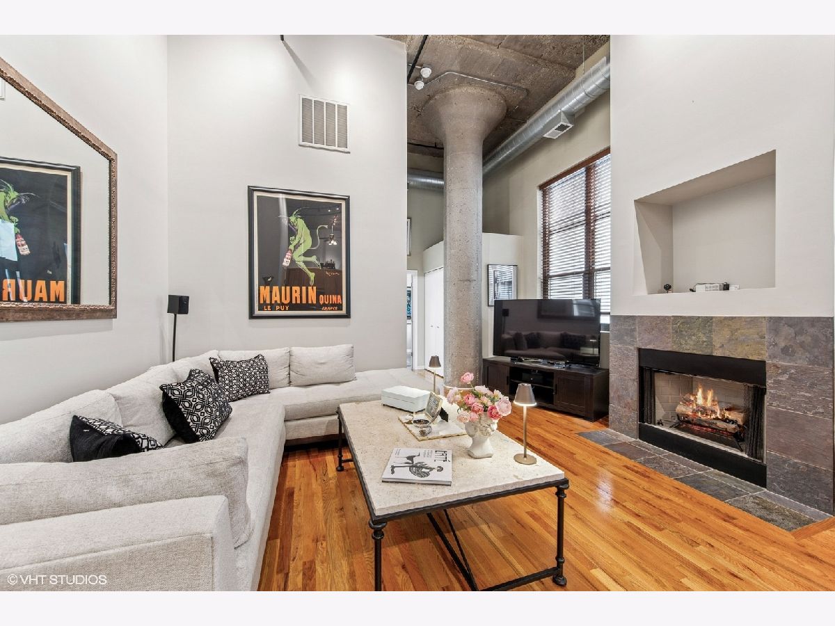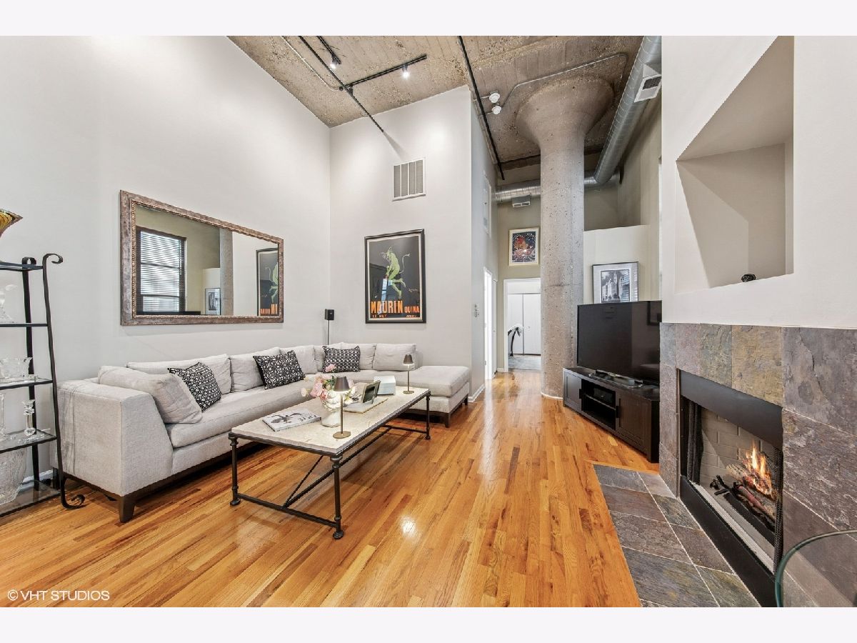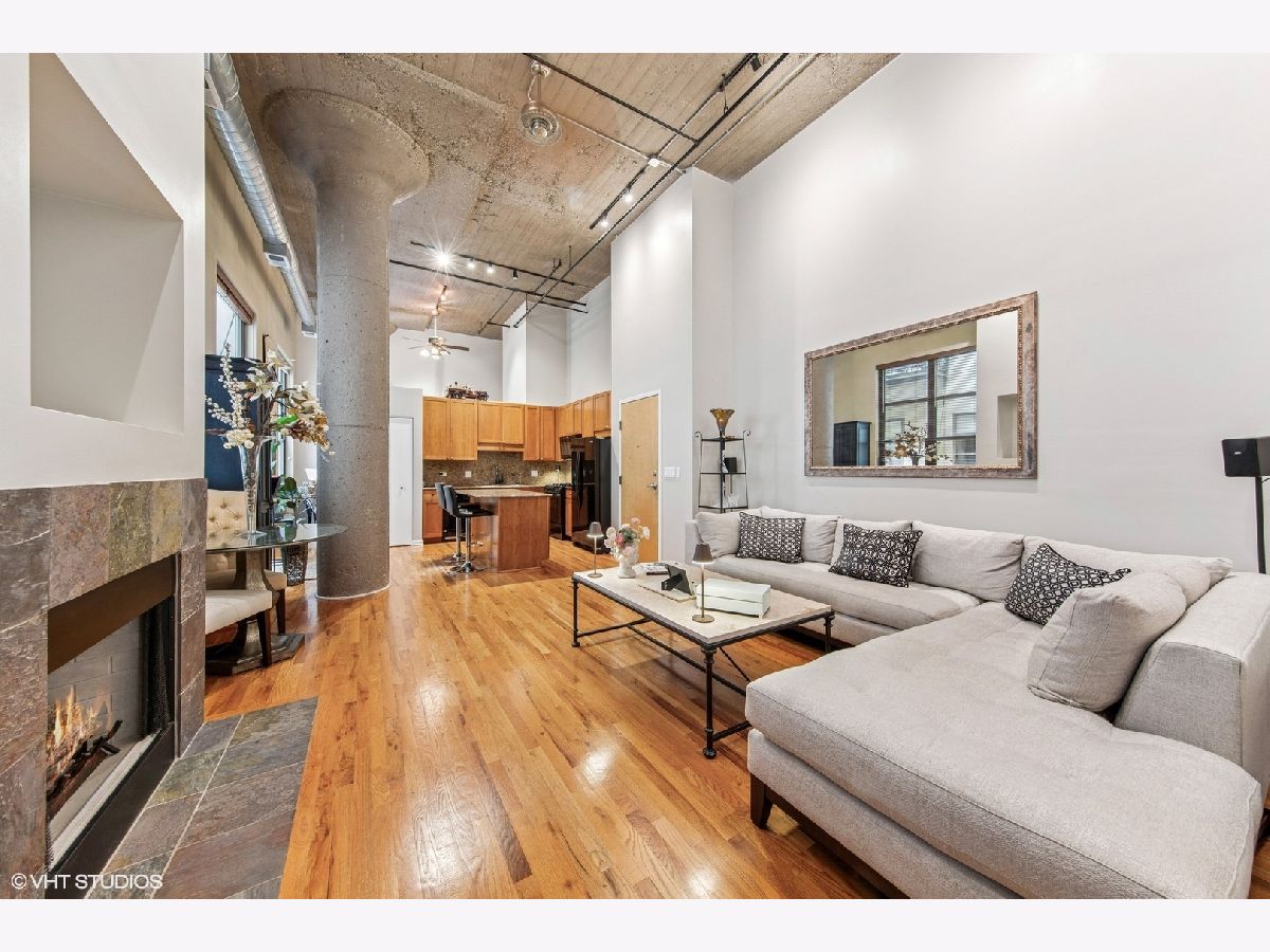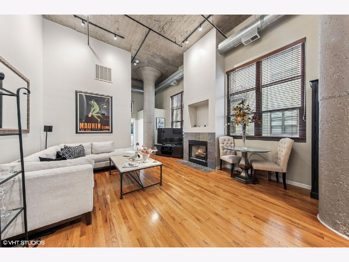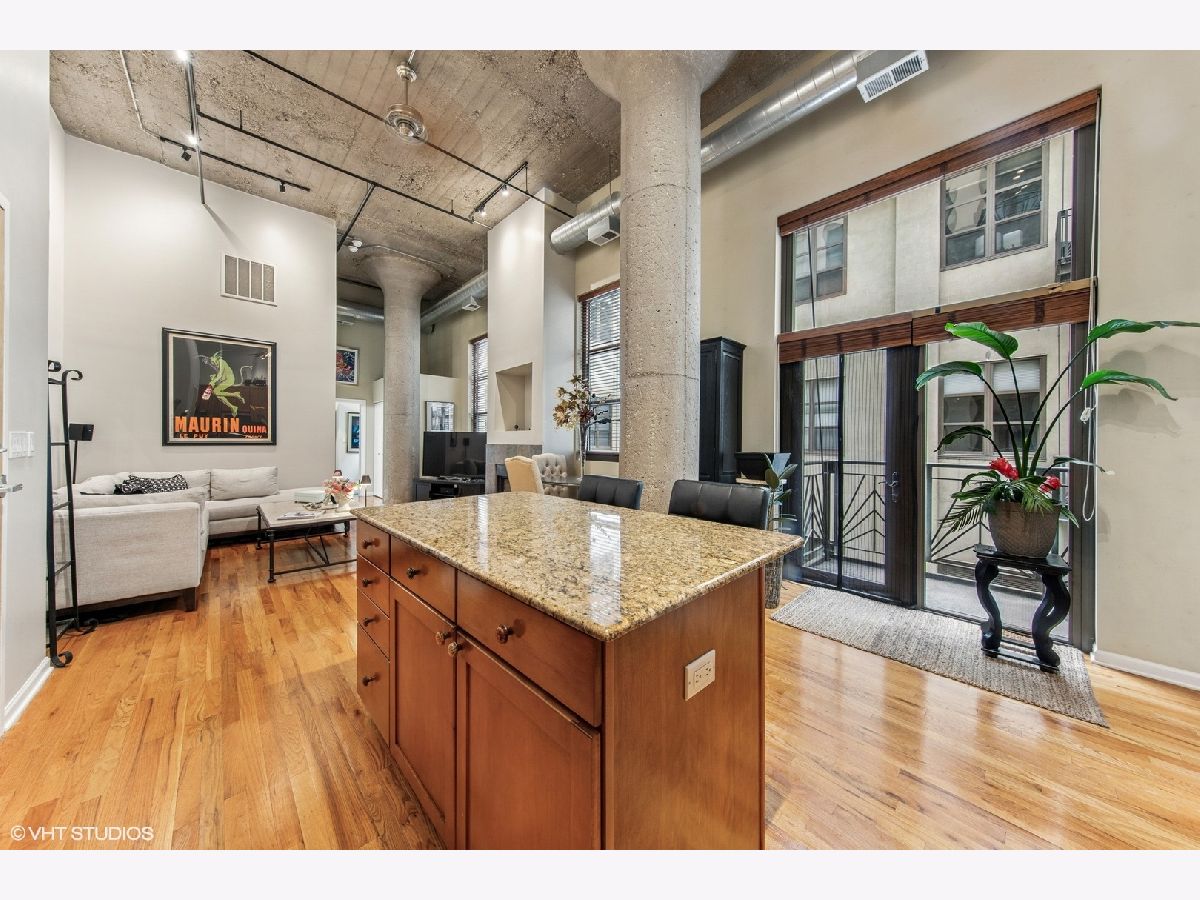 Discover the epitome of urban living in this rarely available, beautifully designed concrete loft at One River Place, This smartly appointed residence offers the inviting charm of modern design with 14' ceilings and hardwood floors throughout. The open-concept Living/Dining Room is accentuated by a cozy gas fireplace, perfect for relaxing or entertaining. The expansive kitchen is a culinary delight, boasting plenty of cabinetry, granite counters, and a granite backsplash, complemented by newer appliances and a generously sized pantry. The residence includes a large hallway closet with extra storage space on top, catering to your organizational needs. The fully enclosed, king-size master bedroom features two organized closets, promising ample storage and privacy. The spacious second bedroom, complete with organized closets and a window, can be easily enclosed for added privacy. Enjoy the serenity of the private balcony overlooking the courtyard. This home includes the convenience of in-unit laundry and offers the option of an attached, heated garage parking space. Reside in a highly sought-after, full-amenity building with a well-run association. Indulge in the luxury of a 24-hour doorman, a state-of-the-art gym, and a roof deck complete with grills, a fireplace, and breathtaking city views. Additional features include a dry cleaner, a common storage area, a bike room, and an elevator, all within this low-rise building. Situated in the perfect River North location, you're just steps away from transportation, expressways, downtown, the Riverwalk, and parks, offering convenience and vibrancy at your doorstep. Experience unparalleled living in a community designed for those who appreciate comfort and style. Parking is included @ 35K and you have an option not to buy with the unit.