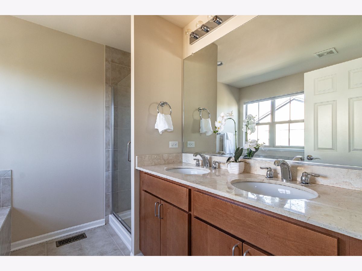 Gorgeous two-bedroom townhome in Aspen Pointe subdivision, great investment opportunity! Beautiful open floor plan and hardwood flooring on the second level. Sun-filled living room overlooking the foyer. Gourmet kitchen boasting stainless steel appliances, granite countertops, island with breakfast bar, and eating area with exterior access. Family room overlooking kitchen, perfect for gathering. Master suite with two walk-in closets and spa-like ensuite. Second bedroom with ensuite and walk-in closet. Office on main level. Relax on the balcony. Great location off Route 60 and close to Vernon Hills shopping, restaurants, and more!