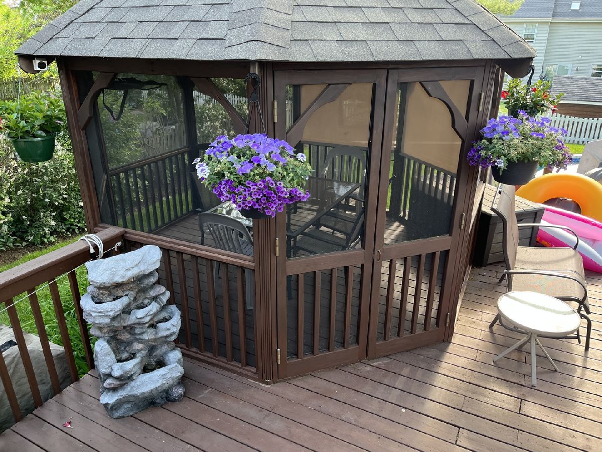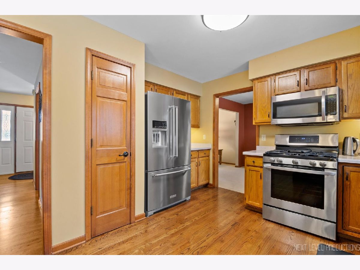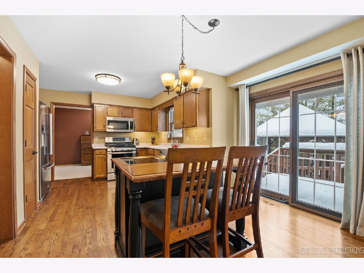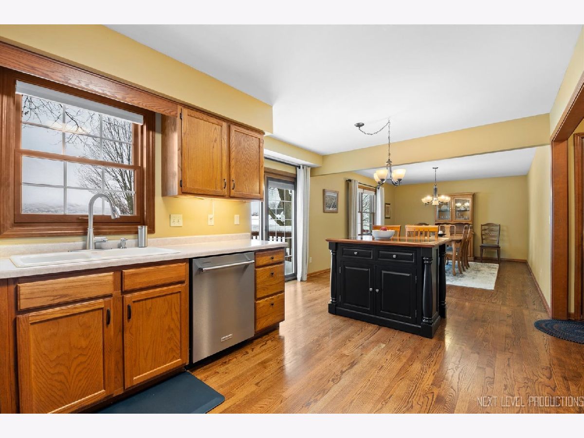 You will love this "tucked away" location in popular Geneva East! The foyer has hardwood floors that flow back to the kitchen. Big L-shaped living/dining rooms. The eat-in kitchen has oak cabinets, contrasting/moveable island, Stainless Steel appliances, pantry closet, slider to the deck overlooking the pool and screened gazebo...kitchen opens to the family room which offers great space for entertaining! Spacious primary bedroom with vaulted ceiling, twin wall closets and private bath with oak vanity and shower/tub. Three nice size secondary bedrooms with ceiling fan/lights. Full hall bath with updated black vanity and shower/tub. There is a finished look-out full basement with rec room, storage and 1/2 bath. The oversized fenced yard boasts a large deck with screened gazebo and access to the above-ground heated pool. And so many major improvements: furnace and air conditioner (2020), Pella energy efficient windows and sliding glass door with slim shades (2016-2021), roof (2011), vinyl siding (2008), driveway (2018), garage door (2013), water heater (2021), hall bath remodel (2022), LG range (2019), KitchenAid refrigerator and dishwasher (2021)!!!! Close to elementary school, parks, shopping, Fox River Trails, and downtown!!! This will not last long!!