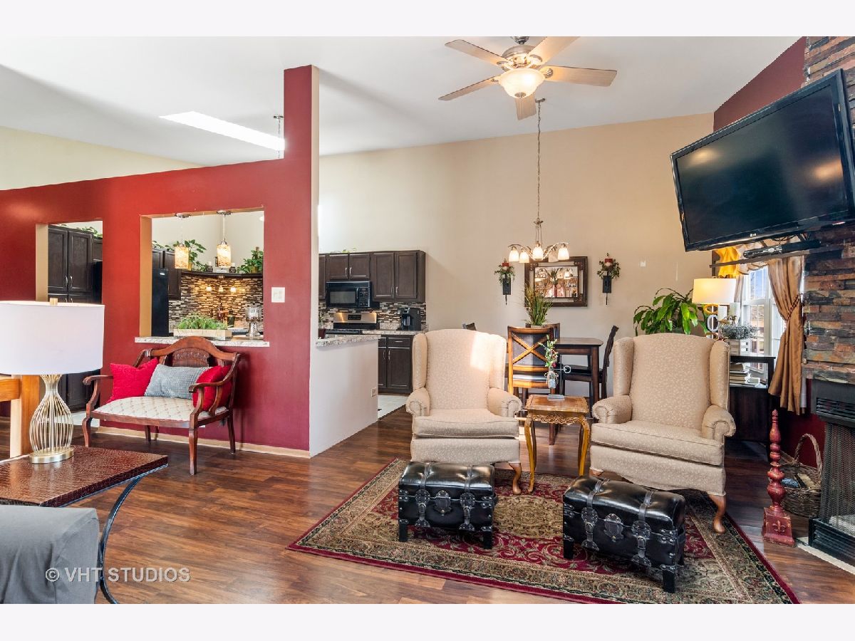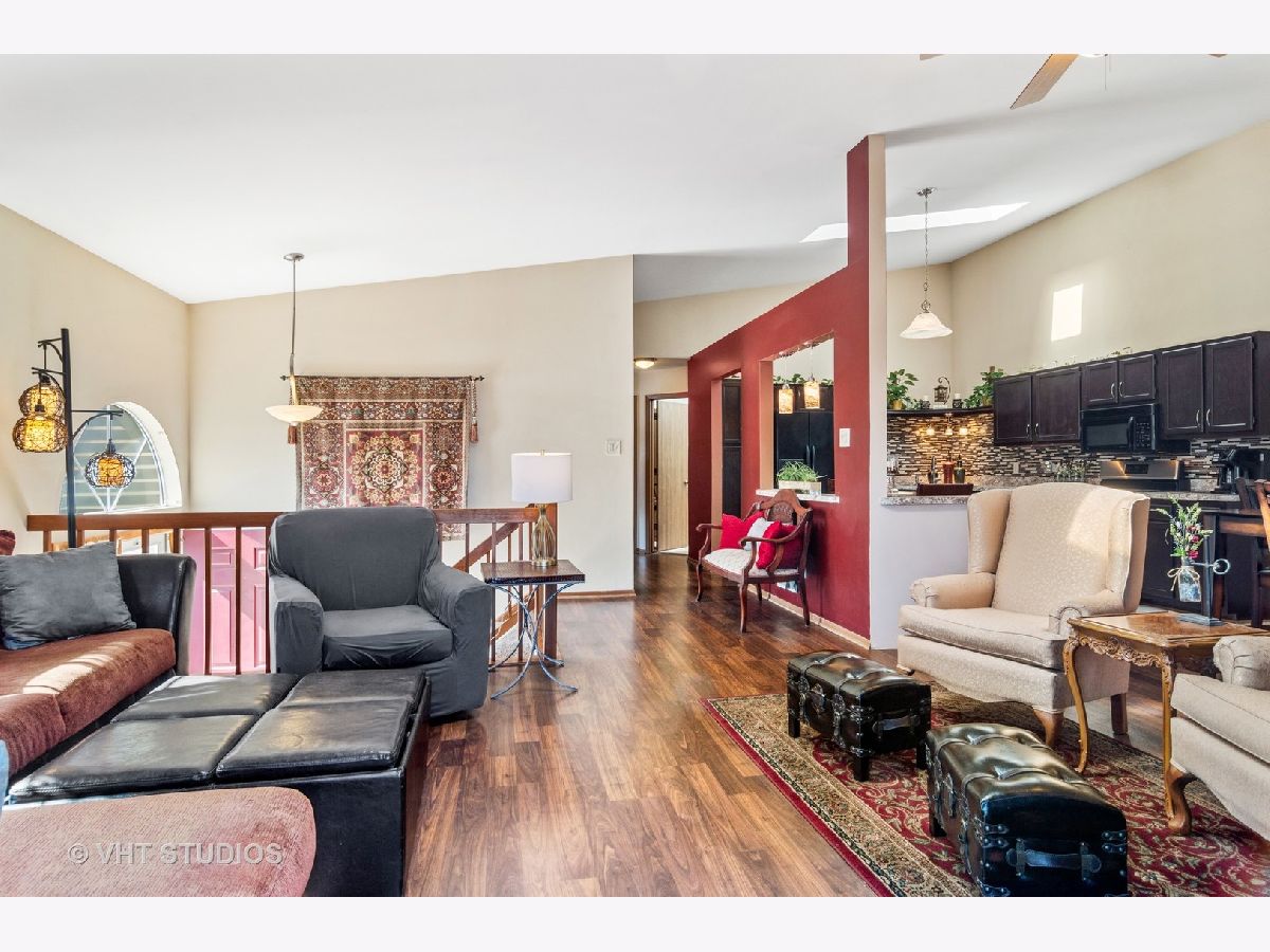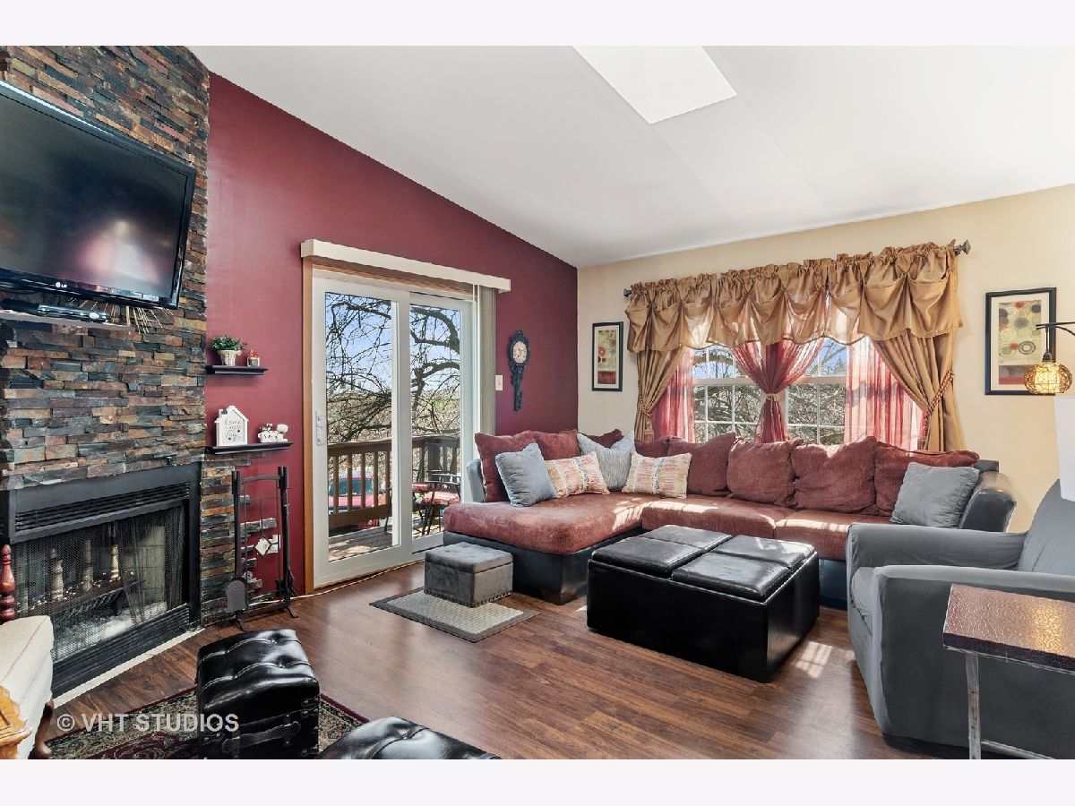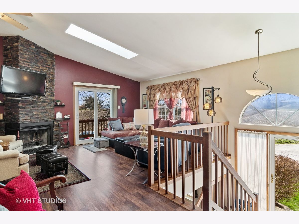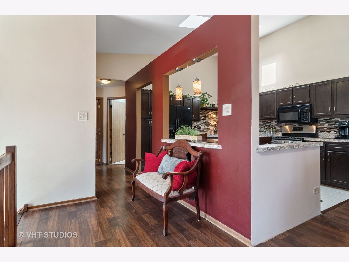 This is a must-see property welcoming you to a quiet and financially sound townhome community at Frankfort Estates. This cozy home features 3 bedrooms, 2 bathrooms with an attractive open concept floor plan and updated kitchen living. A gorgeous wood burning fireplace with a brick facade is the focal point of main living area. The combination of skylights, vaulted ceiling, and sliding glass doors to access an outdoor space floods the home with natural light. Engineered wood flooring sprawls throughout both the main and lower levels. A spacious primary bedroom is situated on the main level with a large south facing window and a walk-in closet. The lower level includes a bonus family room, a third bedroom, a full bathroom and side by side washer dryer. The outdoor 2-tired deck will wow you. The 2-car attached garage has plenty of additional storage area plus access to the mechanical room. Low assessments. Nearby Target, new Amazon distribution facility, a playground, easy access to I80 and much more. Summit Hill and Lincoln-Way East.
