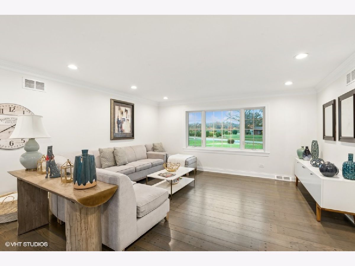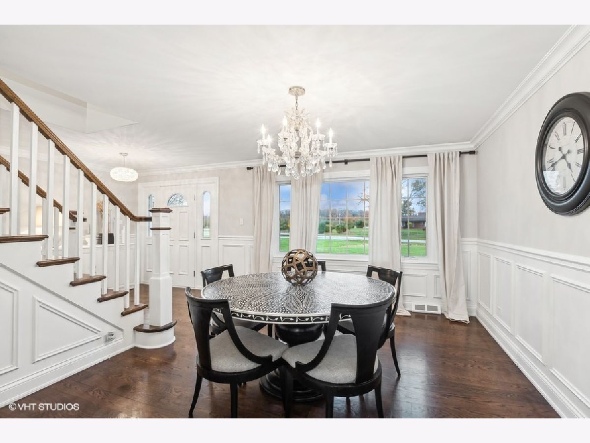 Welcome to this beautifully updated two-story home, perfectly situated on a spacious lot with stunning views of the golf course. This rarely available property sits on just under 1 acre of lush green space. As you step inside, you'll be greeted by newly installed top of the line wide plank hardwood floors, freshly painted interior, new trim, and custom crown molding. All new interior 6 panel doors, creating an inviting atmosphere throughout. Notable upgrades include a new roof installed in 2016, Anderson windows and sliding door in 2021, and a new furnace and AC in 2017. The large living room is perfect for entertaining, while the elegant dining room features charming wainscoting. The remodeled eat in kitchen is a true chef's delight, boasting an island, pantry, and abundant of freshly painted cabinets for all your culinary needs. The cozy family room showcases a modern stone fireplace, offering a warm and inviting focal point for gatherings. Convenience is key with a main floor laundry room featuring updated cabinets, granite countertops, and under-cabinet lighting. Step into the recently remodeled sunroom, complete with a skylight, vaulted ceiling, and three sliding doors that fill the space with natural light and offer breathtaking views of the tranquil outdoors. A stylish powder room completes the main level. Upstairs, you'll find the spacious primary bedroom featuring a skylight, walk in closet, and full primary bathroom. The 2nd bedroom also includes a walk-in closet, while two additional well sized bedrooms provide ample space for family and guests. A hallway bath with double sinks offers added convenience. The unfinished basement, complete with a full bath, has endless possibilities for customization. Plenty of storage space also in the sprawling basement. Outside, enjoy the expansive patio and fire pit, perfect for relaxing evenings while taking in the picturesque golf course views. A huge driveway leads to the three car heated attached garage, providing plenty of parking and storage options. This home has palos schools and is near, shopping, dining, and expressways. Come view this beautiful oasis soon!