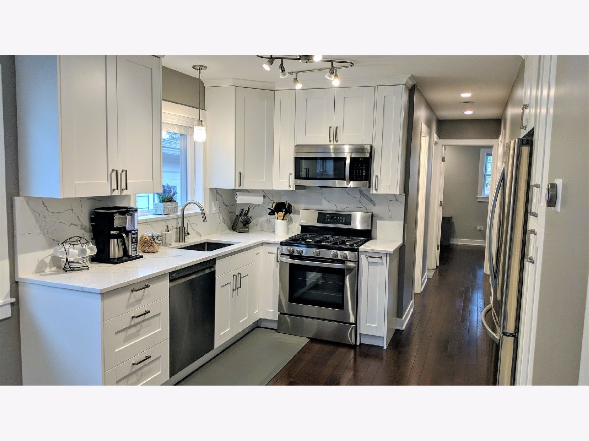 Newly, fully renovated home located in the most ideal place. Gain access to Park Ridge's school system while paying a much lower property tax in Niles. Modern open concept layout on the 1st floor with a combined kitchen/dining/living space. Brand new hardwood throughout the 1st floor, and a full floor-to-ceiling tile bathroom with a walk-in shower. LG SS appliances with European style soft-close cabinets, quartz countertops and backsplash. Large closet with built-in shelves and drawers in each bedroom. LED and recessed lights throughout, including every closet. All new energy efficient windows and doors. More living space in the basement with a large family room, full bathroom with a tub shower, and 4 closets for plenty of storage space. Being 50% below grade means you get tons of natural light downstairs with full sized windows. New Rheem furnace, AC unit, water heater, and copper water pipes. Larger fenced-in backyard. Jonquil Terrace Park & Oasis Swimming Pool are only minutes away.