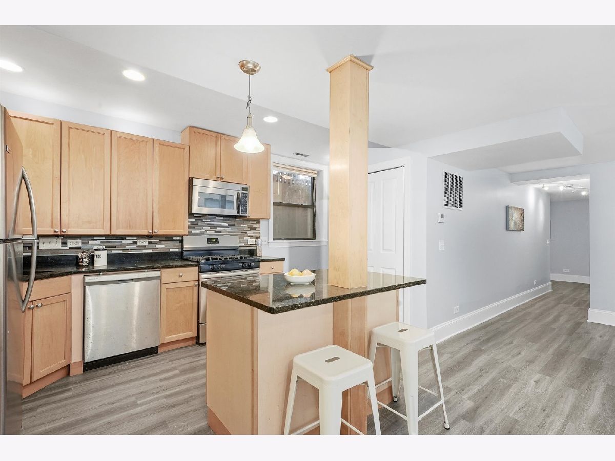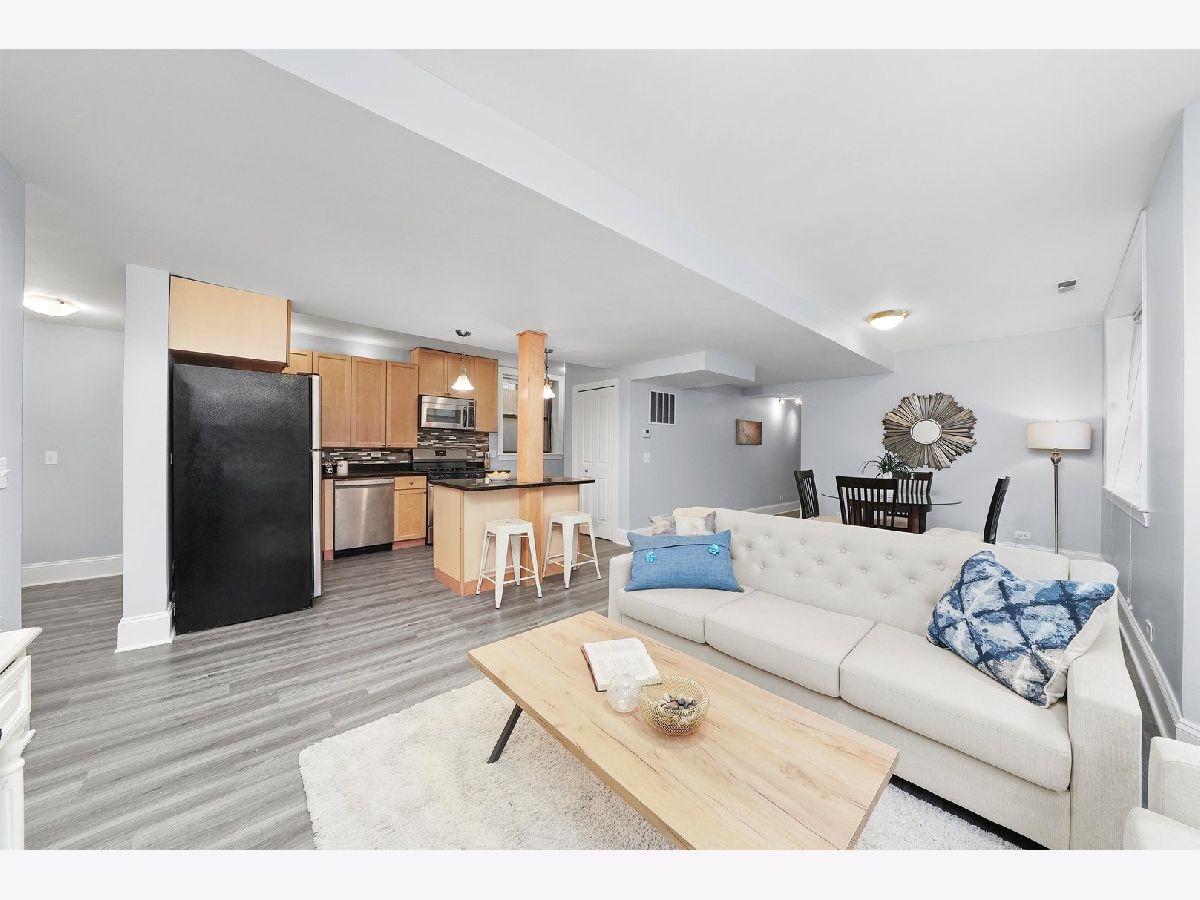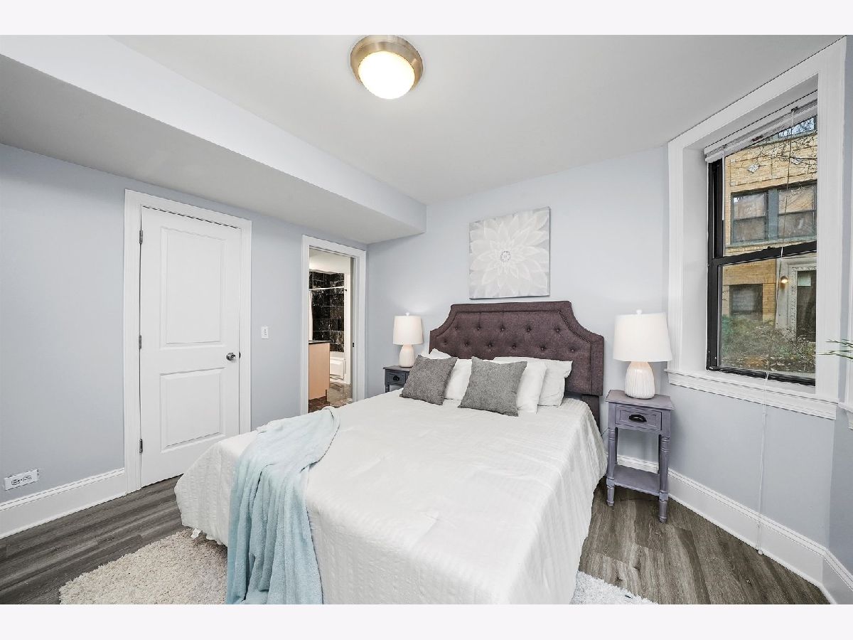 A bright and sunny south facing 2 bed/2 bath English garden condo on a tree lined street in Rogers Park. This oversized property boasts a highly regarded open floor plan, full sized windows and laminate floors. Open living room flows to an updated kitchen with breakfast bar, stainless steel appliances, new fridge, stove and dishwasher, granite countertops and maple cabinetry. Versatile living space with plenty of room for dining, entertaining or home office. Counting in a generously sized primary suite with walk-in closet, black marble bathroom with Jacuzzi tub and linen closet. New washer and dryer in unit, central heating and cooling, common patio in courtyard, storage and easy street parking complete this home. All in a very ideal location with close proximity to Metra & CTA (Red, purple, yellow lines), Beaches, Loyola, restaurants and more!
