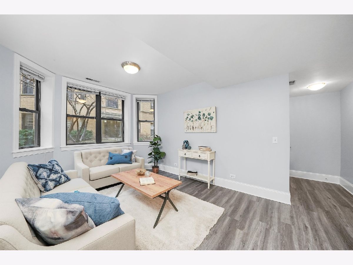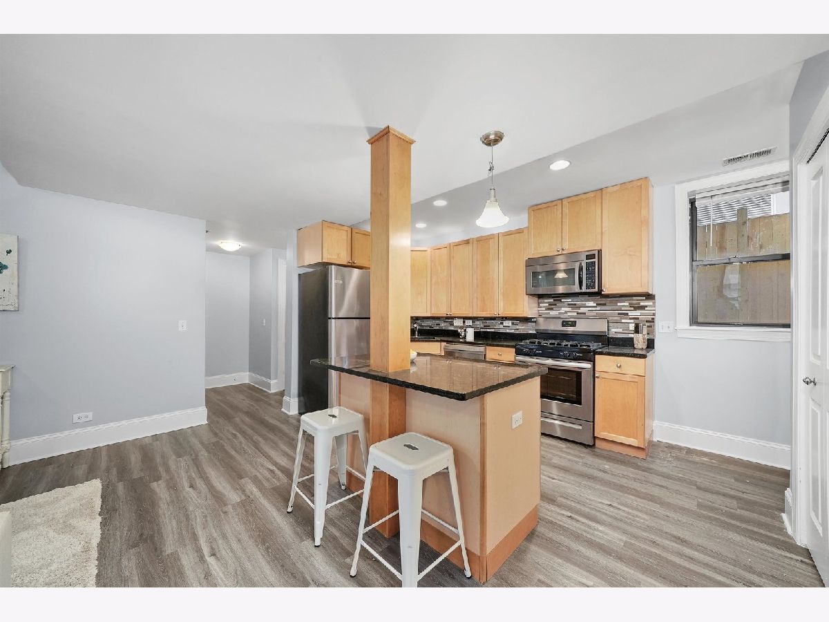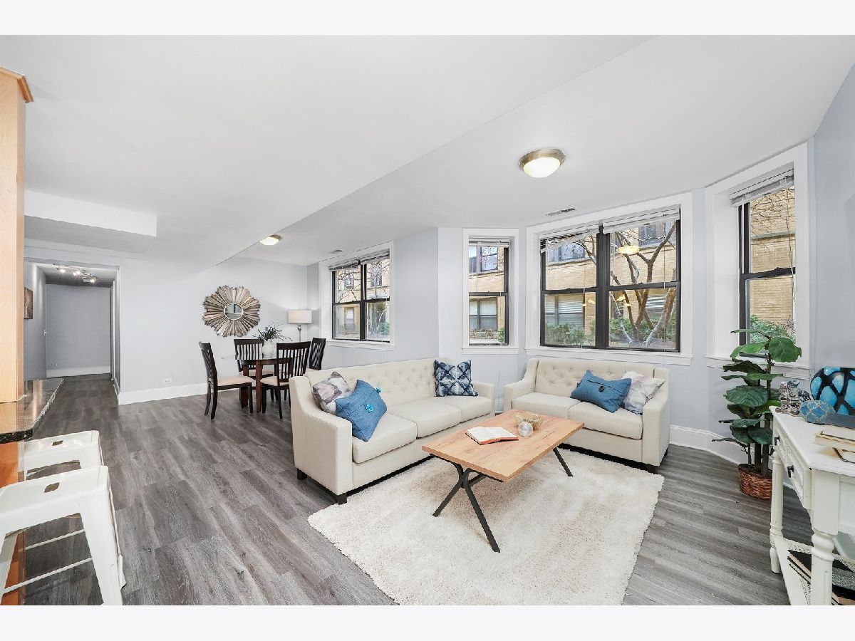 A bright and sunny south facing 2 bed/2 bath English garden condo on a tree lined street in Rogers Park. This oversized property boasts a highly regarded open floor plan, full sized windows and laminate floors. Open living room flows to an updated kitchen with breakfast bar, stainless steel appliances, new fridge, stove and dishwasher, granite countertops and maple cabinetry. Versatile living space with plenty of room for dining, entertaining or home office. Counting in a generously sized primary suite with walk-in closet, black marble bathroom with Jacuzzi tub and linen closet. New washer and dryer in unit, central heating and cooling, common patio in courtyard, storage and easy street parking complete this home. All in a very ideal location with close proximity to Metra & CTA (Red, purple, yellow lines), Beaches, Loyola, restaurants and more!