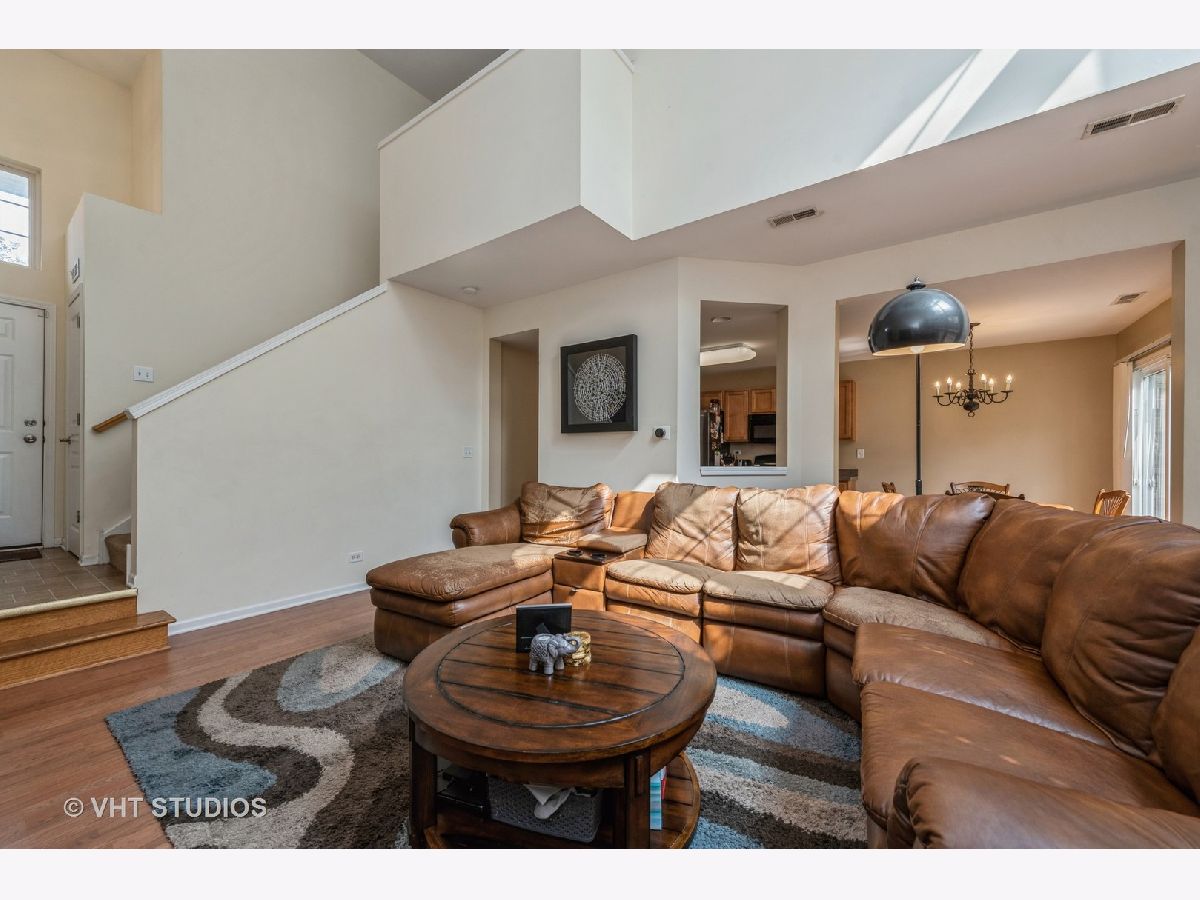 Welcome Home! Beautiful 2 story townhome in desired Lakeside Pointe! Dramatic FOYER opens into a 2 story GREAT ROOM accented by windows, so lots of NATURAL LIGHTING throughout, and an open staircase. The spacious kitchen with maple cabinets, plenty of counter space, a pantry, and all appliances! Kitchen also features a PASS THROUGH WINDOW to the great room and easy access to separate dining area. Enjoy your morning coffee on the patio and view of pretty, wooded backyard! Easy access to your 2 car garage and first floor powder room; 2ND FLOOR LAUNDRY room; an OVERLOOK LOFT open to the great room below and two bedrooms including a large master suite with walk-in closet and private master bath with walk-in shower. There is also a separate second bath upstairs! Exterior features a STONE FRONT. Maintenance free living! Open space and walking trails nearby. Great location, CLOSE to shopping, dining, Metra! Walk to Three Oaks Recreation area with walking trails, beach, wakeboard park!