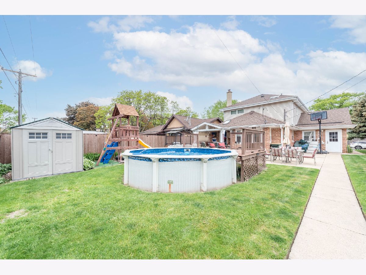 Welcome home to this move-in-ready Georgian, located in the River Forest Manor in Elmwood Park. This impeccable home is situated on an oversized lot with a backyard perfect for entertaining. The moment you enter this 3-bedroom, 2 baths you will be impressed. Upon entering you will be greeted by the family room with tons of natural light. The open floorplan is great for family gatherings along with the kitchen and dining room combo. The patio door is directly off the kitchen which leads you to the backyard. The yard features an above-ground pool, grill canopy, porch, and covered patio that is perfectly set up for your summer days. The kitchen has an elegant touch fit for any chef that features stainless steel appliances, granite countertops raised panel cabinets, and can lights. The finished basement has a theater feel and boasts an additional bedroom and more storage space. The property is perfectly located just twenty minutes from Downtown Chicago and minutes away from the best restaurants, cafes, and hot spots. A/C (2015), furnace (2015), Flooring (2014) Roof (2016), Fence (2018).