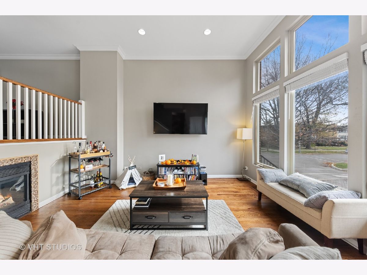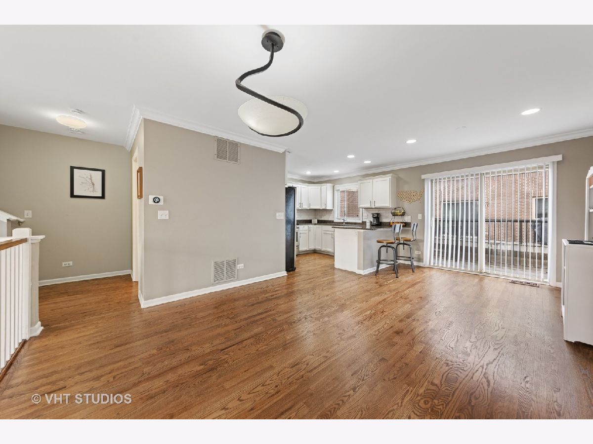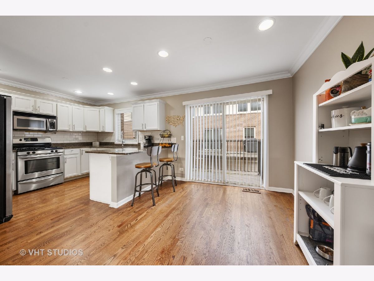 Stunning south-facing townhome located in highly sought-after Forest Park. The location is a commuter's dream! 1.5 blocks to 290(Eisenhower Expressway) and just over a 1/4 mile walk to the Forest Park Blue Line. This updated turn-key townhome is set back from Des Plaines Ave and features an oversized two-car garage. No need for concern in regards to guest parking. The development resides next to a quiet residential neighborhood! The sunny lower level features south-facing lookout windows, beautiful hardwood floors, recessed lights, a side-by-side laundry closet, and a full bathroom. The main level is absolutely beautiful and gets flooded with natural light through the extra-large south-facing windows. Hardwoods floors, crown molding, recessed lights, and updated light fixtures throughout. The main level also features a cozy fireplace in the living room, space for a large formal dining room table as well as space for an eat-in/breakfast table. The all-white kitchen with stainless steel appliances includes a granite breakfast bar, updated hardware, granite countertops, upper crown cabinet molding, and subway tile backsplash. In addition, the main level also includes an updated powder room and a large balcony perfect for grilling and relaxing. Truly an amazing space to entertain! The upper level features two very spacious bedrooms each with updated full bathrooms and walk-in closets. Check out the dimensions of each bedroom! Healthy and well-managed HOA!