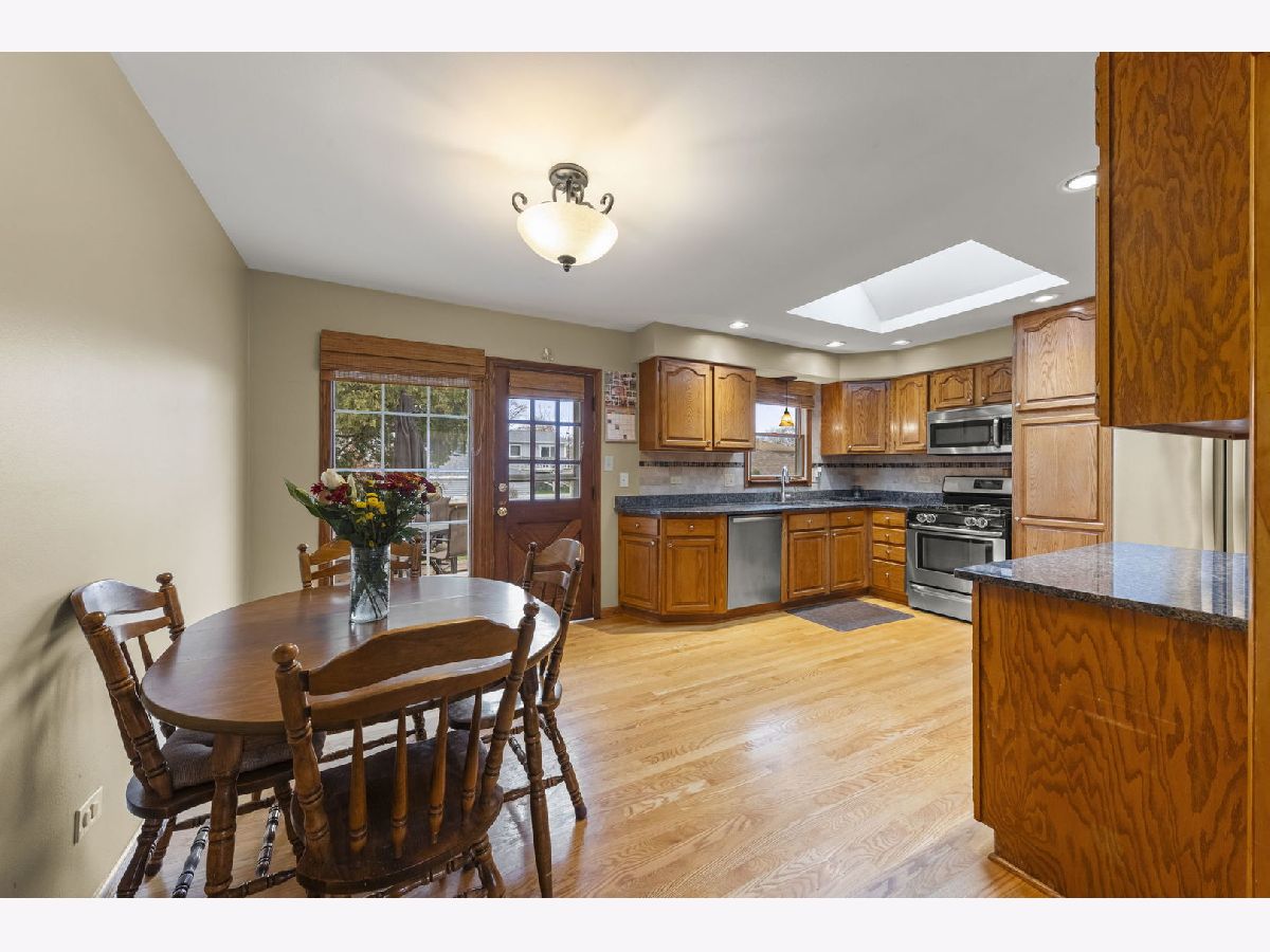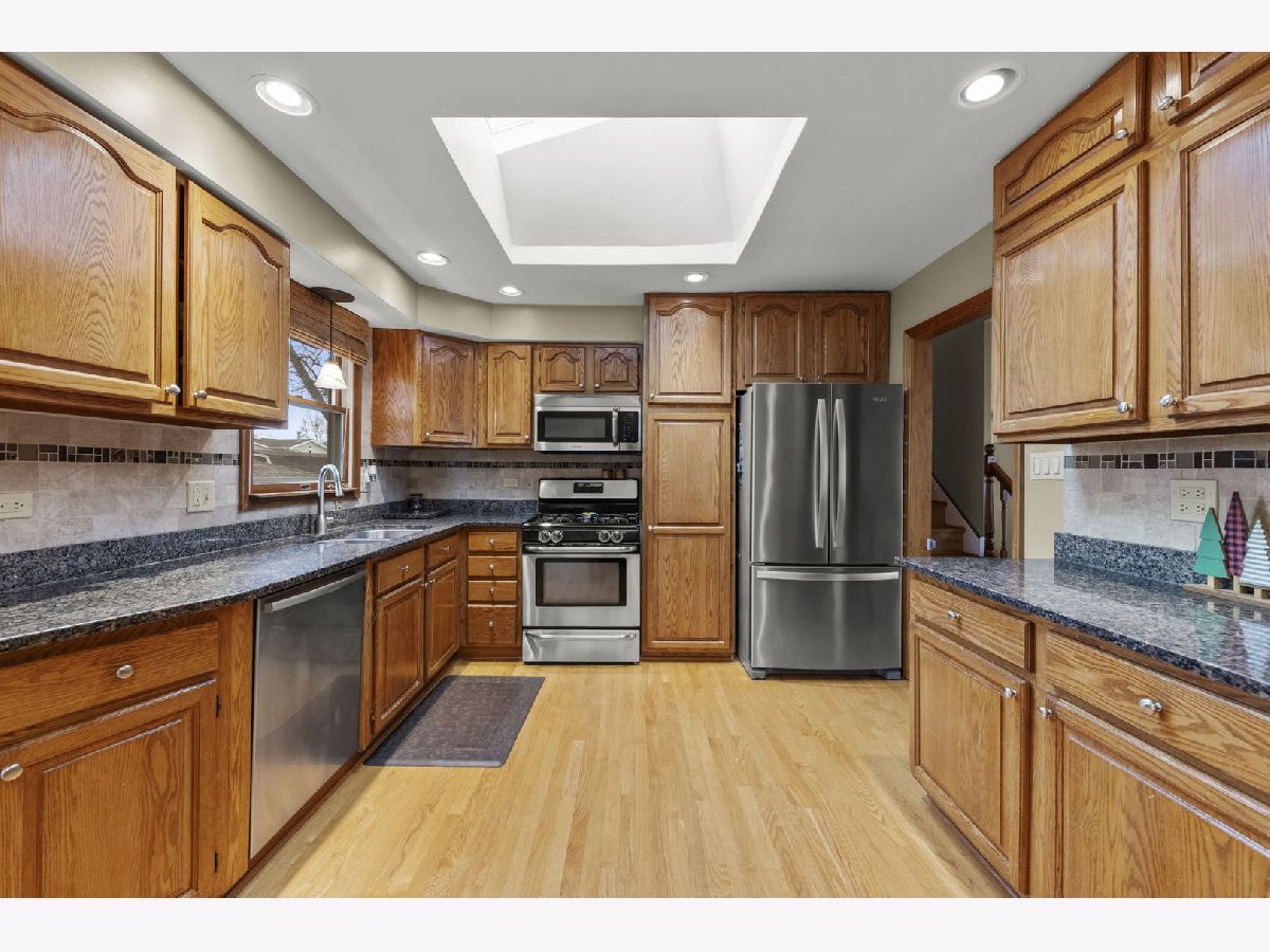 Welcome home to this wonderfully maintained and updated 3 bed 2 bath split-level offering a perfect blend of comfort and modern convenience! Step inside to a spacious living room filled with natural light and ideal for everyday relaxation. The modernized kitchen features sleek granite countertops, stainless steel appliances, and ample cabinet space. Upstairs, you'll find three generously sized bedrooms, all showcasing gorgeous newer hardwood floors and window treatments that add warmth and elegance. Both bathrooms have been tastefully updated, offering a fresh, contemporary feel. The lower-level family room is an inviting space for gatherings, complete with newer laminate flooring and a cozy fireplace-ideal for movie nights or entertaining friends and family. Step outside and enjoy the expansive deck overlooking the backyard, complete with motion lighting and a 6 ft privacy fence-perfect for relaxing, grilling, or hosting summer get-togethers! A roomy 2.5-car garage provides plenty of storage and parking options. Additional recent improvements include newer windows and a brand new tear off roof on both the home and garage, as well as a new Skylight in the kitchen, giving you peace of mind for years to come. Don't miss this move-in-ready gem in a fantastic Tinley Park location-close to parks, schools, shopping, dining, and transportation. A must-see!