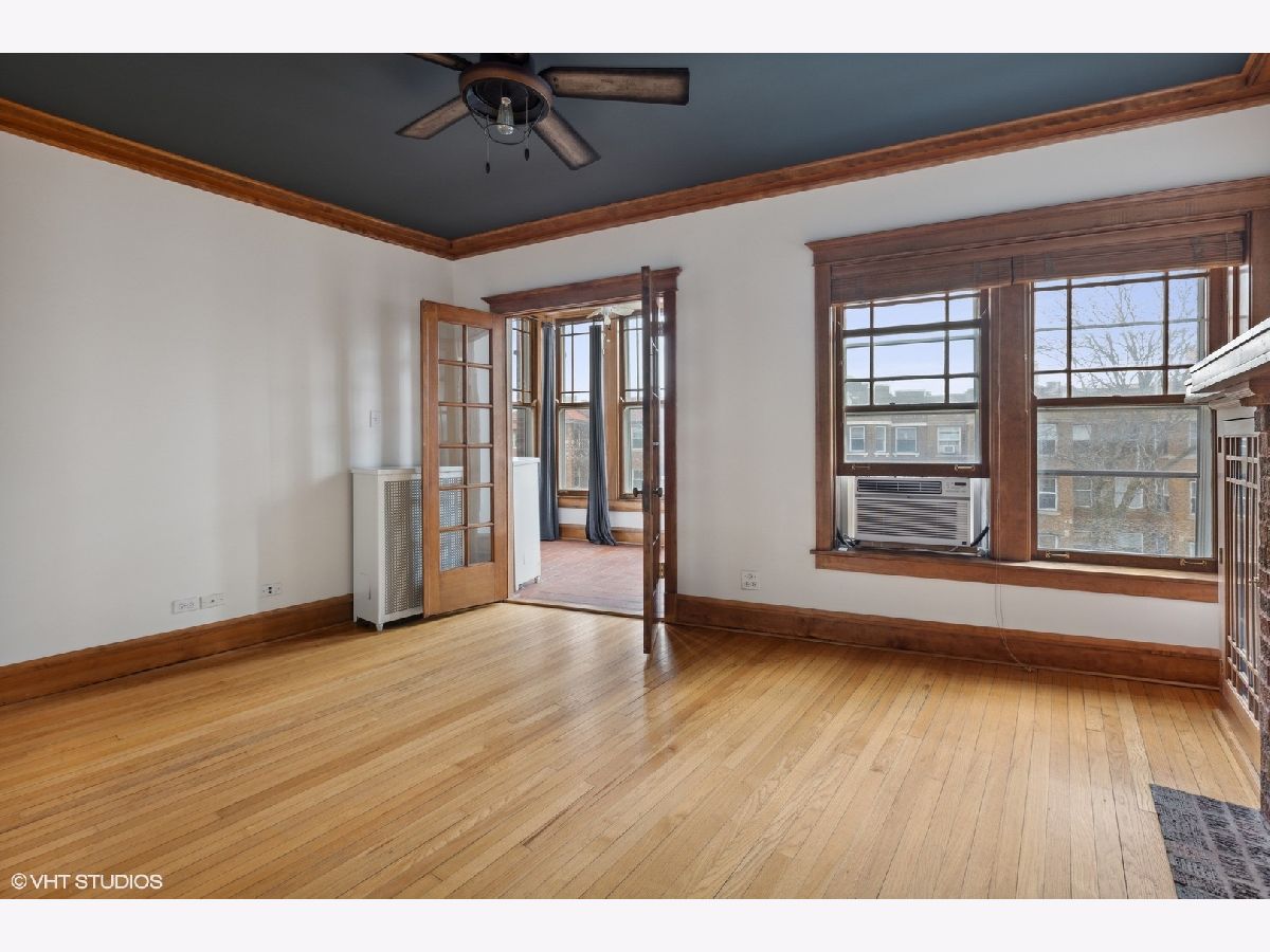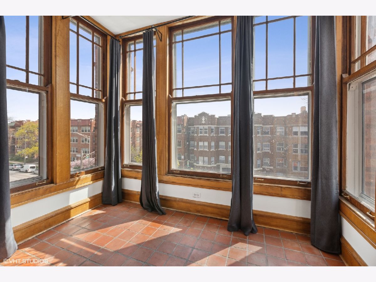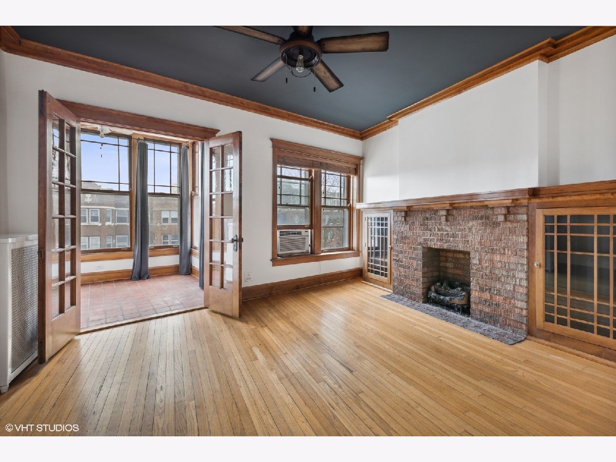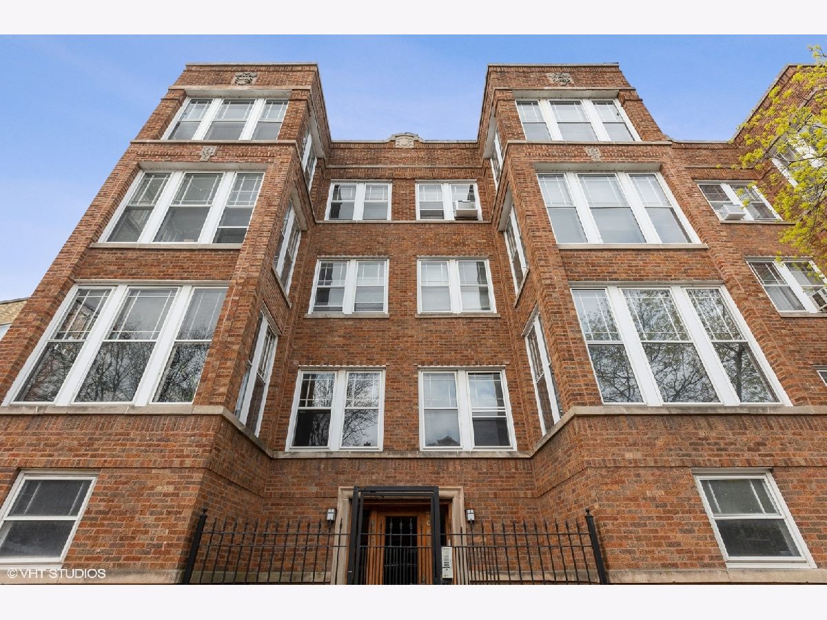 TOP FLOOR end unit in East Rogers Park! This home has three exposures East - West & North. Great light throughout the day! Beautiful original millwork throughout the unit. VERY Large windows in East facing sun room, a perfect place for morning coffee. The living room features an impressive brick fireplace with gas logs and built-in book cases. The kitchen has been updated with Quartz counter-tops, new Stainless Steel appliances, sink and stylish faucet. The large dining room is separate and could be a great family room space. Finally the primary bedroom is off-set from the main living area for additional privacy. This home has IN-UNIT laundry, a large storage room in the basement and a deck off of the dining room. The lake and park is one block away. Near the Red Line train at Howard!