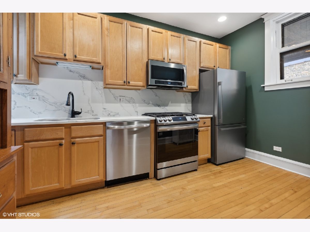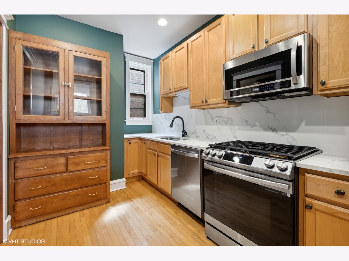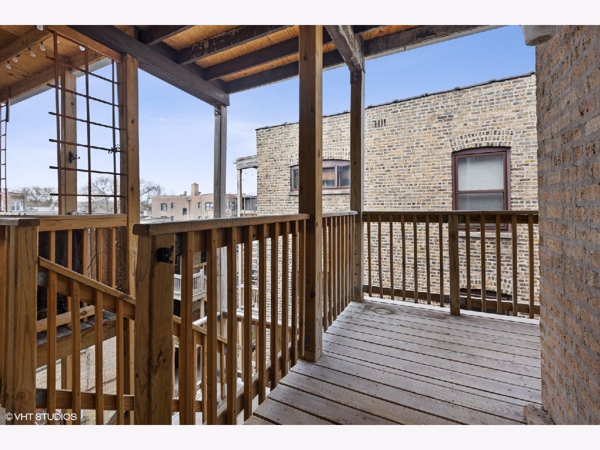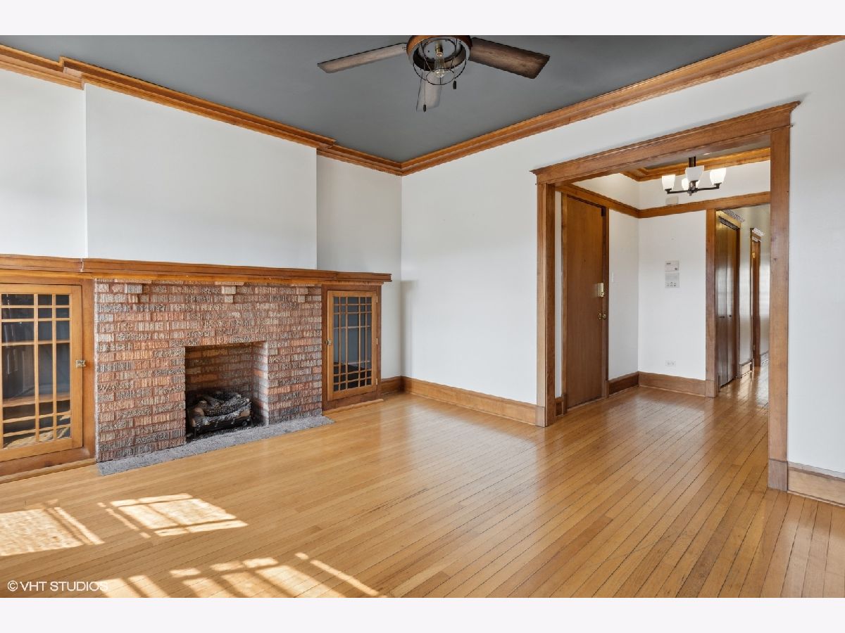 TOP FLOOR end unit in East Rogers Park! This home has three exposures East - West & North. Great light throughout the day! Beautiful original millwork throughout the unit. VERY Large windows in East facing sun room, a perfect place for morning coffee. The living room features an impressive brick fireplace with gas logs and built-in book cases. The kitchen has been updated with Quartz counter-tops, new Stainless Steel appliances, sink and stylish faucet. The large dining room is separate and could be a great family room space. Finally the primary bedroom is off-set from the main living area for additional privacy. This home has IN-UNIT laundry, a large storage room in the basement and a deck off of the dining room. The lake and park is one block away. Near the Red Line train at Howard!