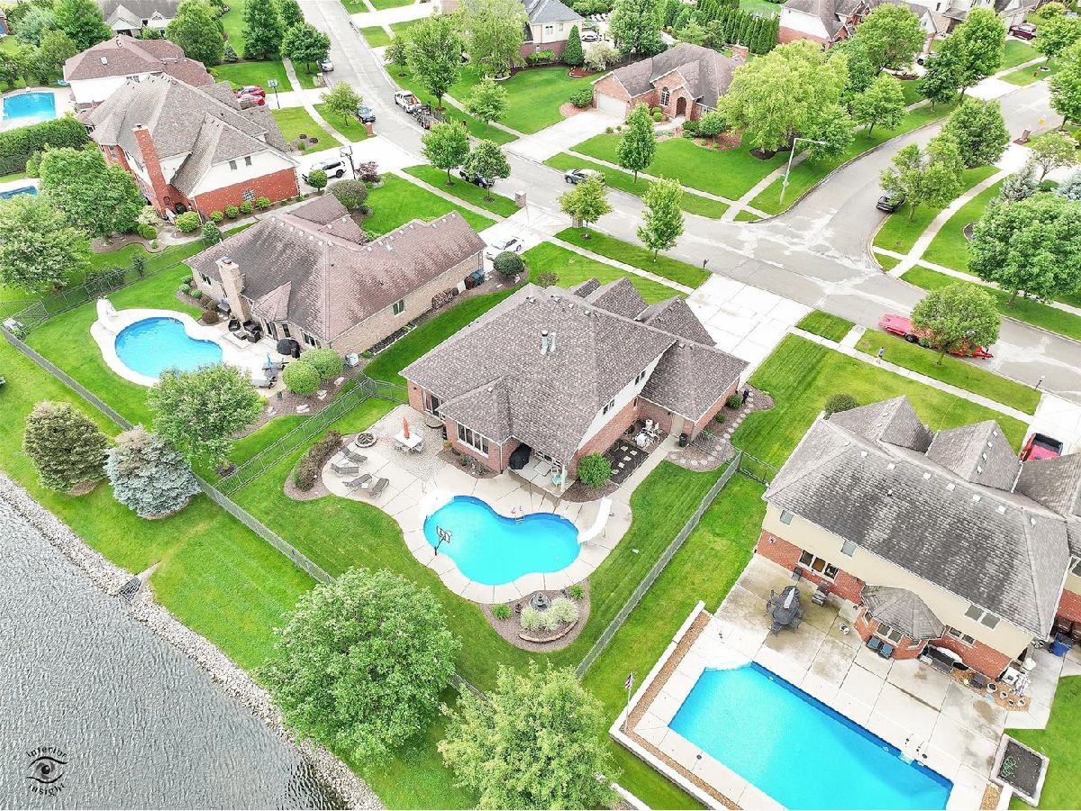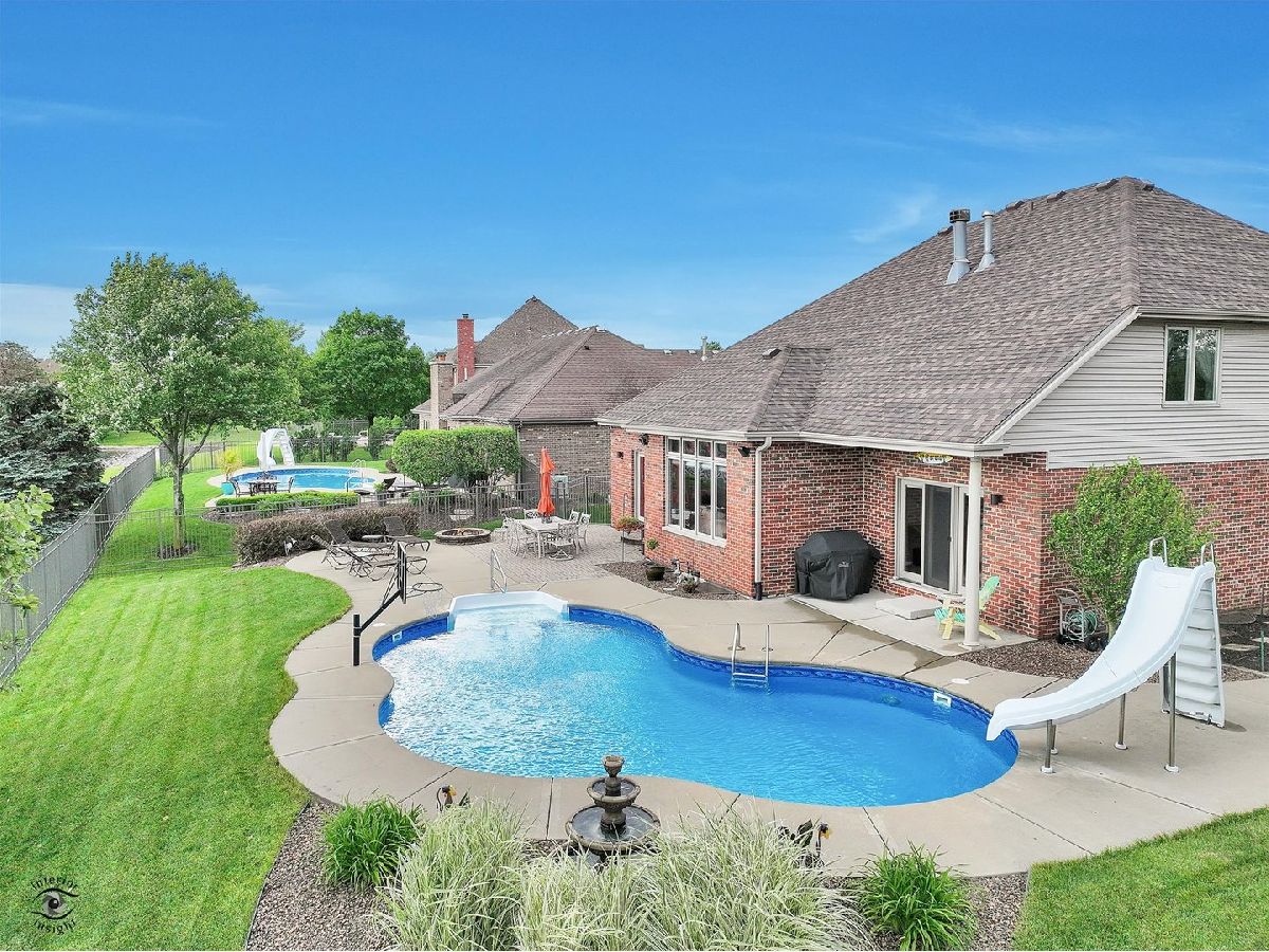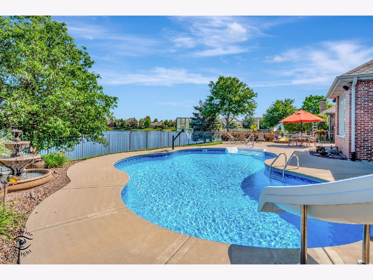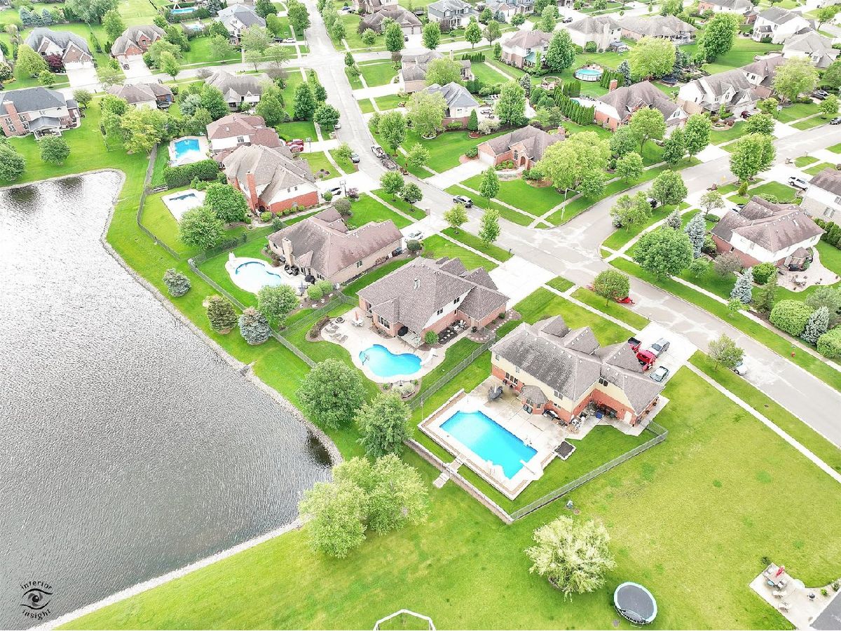Welcome home to this outstanding custom built 5 bedroom, 4 1/2 bathroom home that has been lovingly maintained by the original owners. Enjoy your summertime with the heated inground salt cell pool with its picturesque setting. The main level hosts the ensuite primary bedroom (bathroom updated in 2021 has dual sinks as well as a separate shower and whirlpool tub). Daily living and entertaining are a breeze with the open concept kitchen/living area. The 2019 updated kitchen has an island with the in-demand breakfast bar and stainless-steel appliances. Conveniently located on the main level is the must have office with french doors and formal dining room. The second-floor hosts three bedrooms. Two of the three second floor bedrooms share a bathroom, and the third bedroom is an ensuite. The fully finished basement has bedroom #5, a game room area, living area, an exercise (flex) room and a roughed in bar. Art niches throughout the home. Bring your fishing pole as the home backs to the stocked lake! No need to worry about watering your lawn, the home has an underground sprinkler system! Attached oversized three car garage with plenty of room for storage. New roof, vents, soffit, fascia, and downspouts September 2023; Rheem 75-gallon H2O heater September 2023; Five Burner Stove 2019; Microwave and Dishwasher 2017. Pool salt cell 2022, pool pump 2024. "Hand fixtures" in the main floor half bath are not included. Telsa charger is not included.