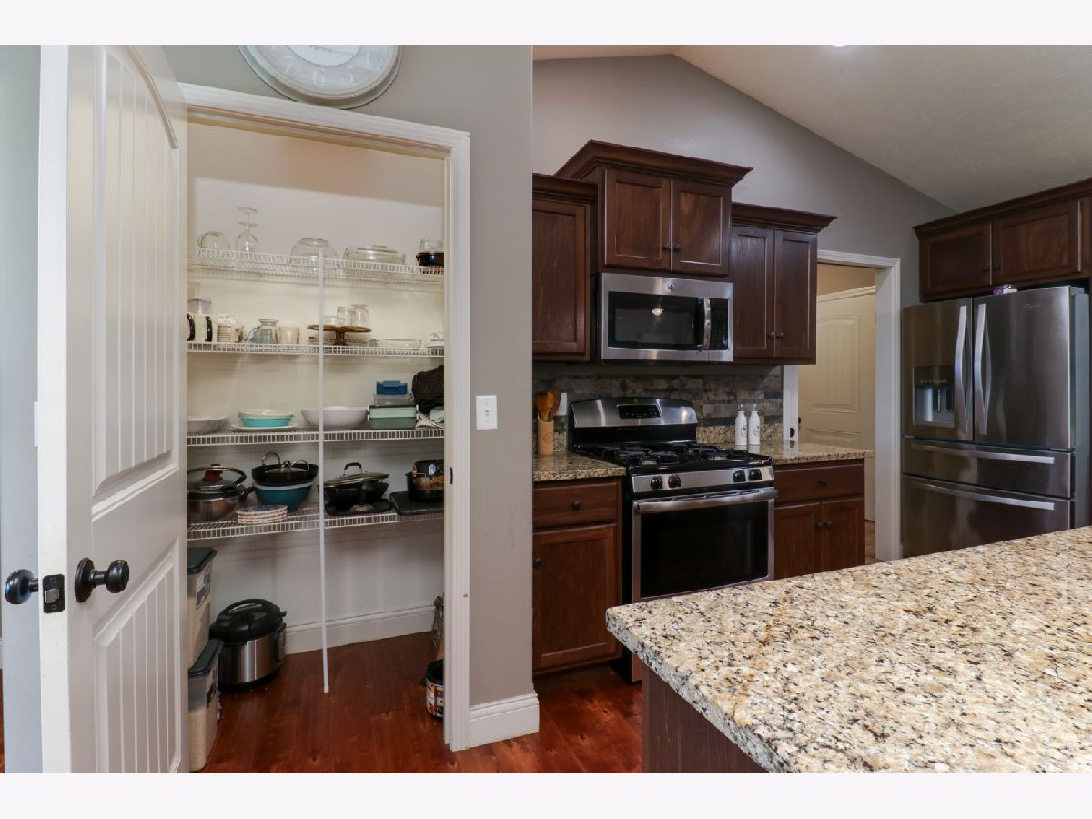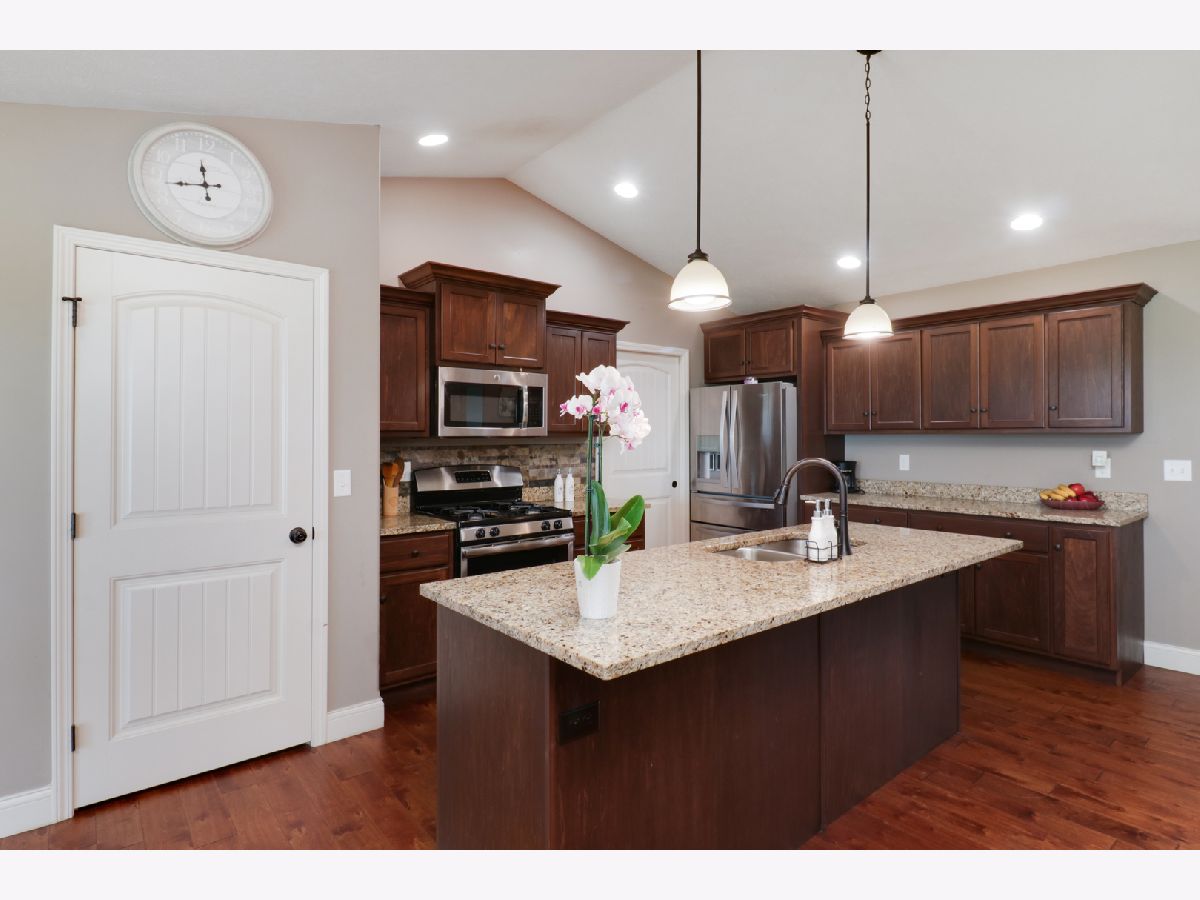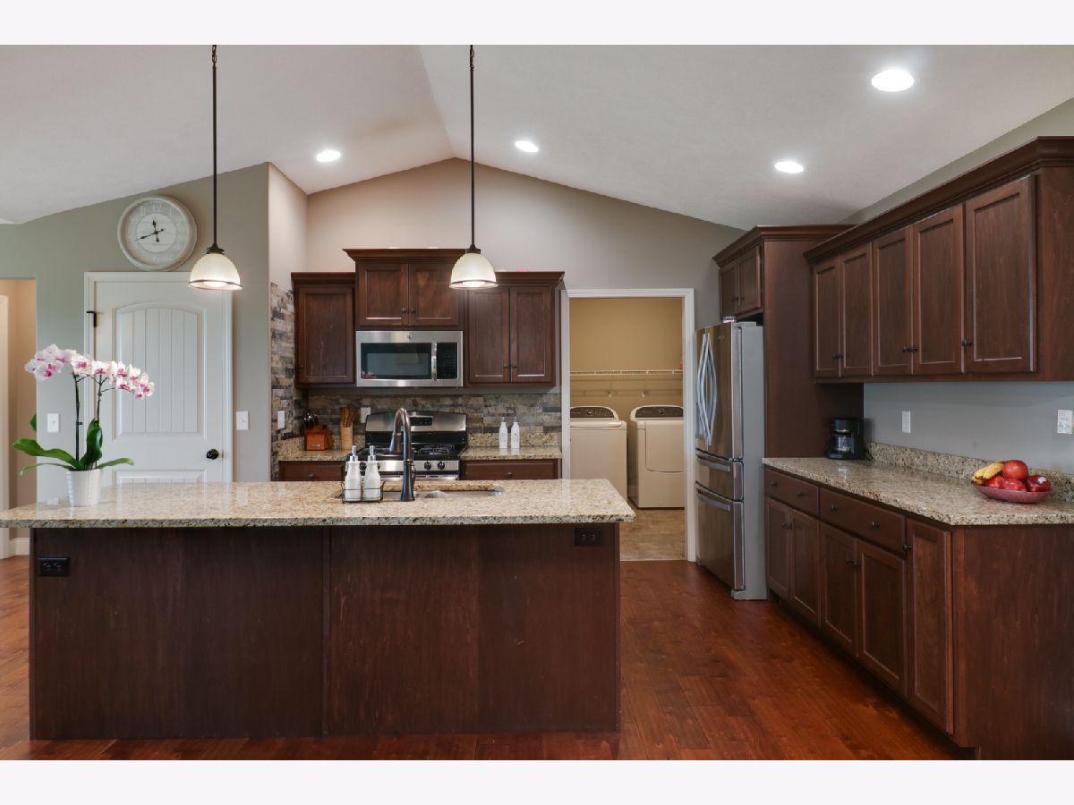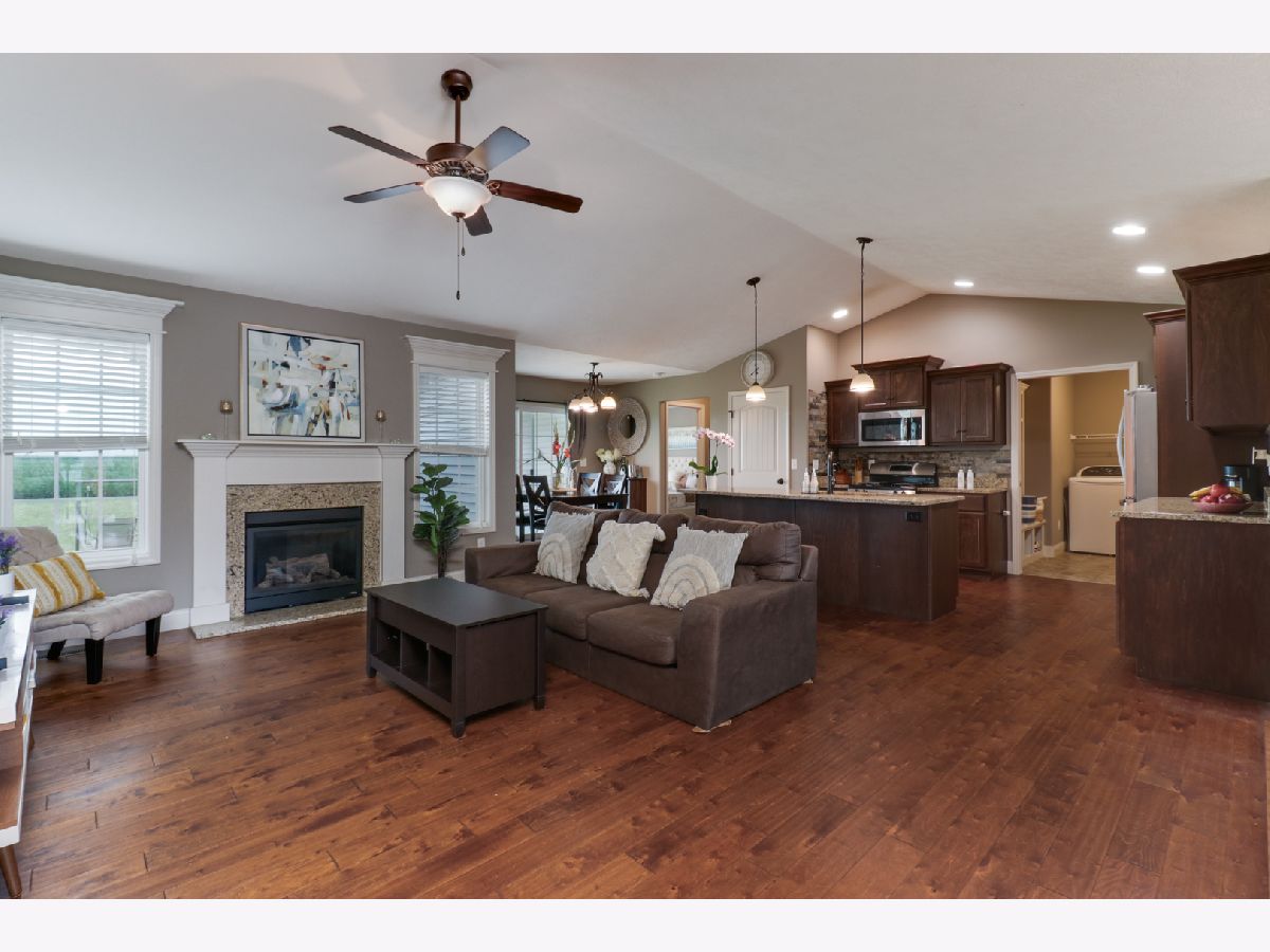 This charming ranch is the perfect place to call home. With a cozy fireplace, no backyard neighbors, and plenty of natural light, you'll never want to leave. Hardwood floors. Vaulted ceiling in family room with gas fireplace. Open kitchen w/granite countertops, pantry, center island eating bar. All SS appliances. Enough counter space. Master suite has large walk in closet, Double vanities and tile surround shower. 2 nice size bedrooms on opposite sides of home with full bath. 1st floor laundry with built in lockers.Washer / Dryer stay. Basement ready to finish-meets energy codes-framed & insulated. Bedroom framed in with egress window and full bath rough in. Covered back patio and no backyard neighbors is perfect place to enjoy summer evenings and cook outs. All appliances remain. All information deemed to be accurate but not warranted.