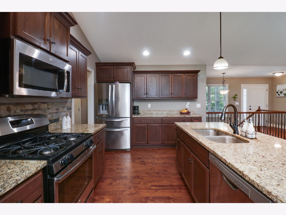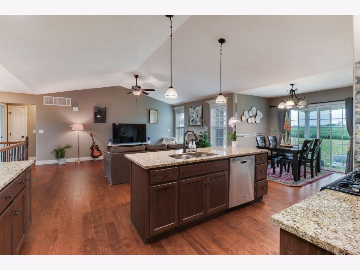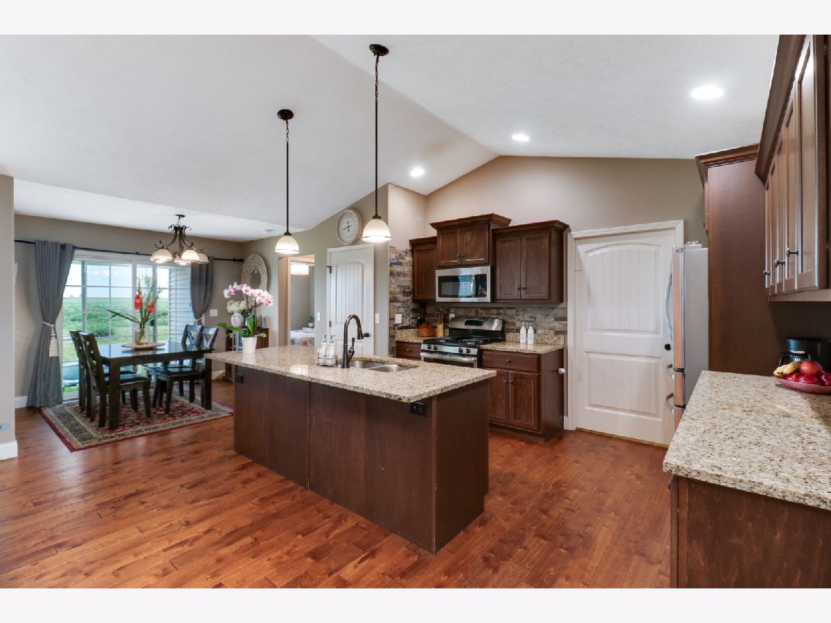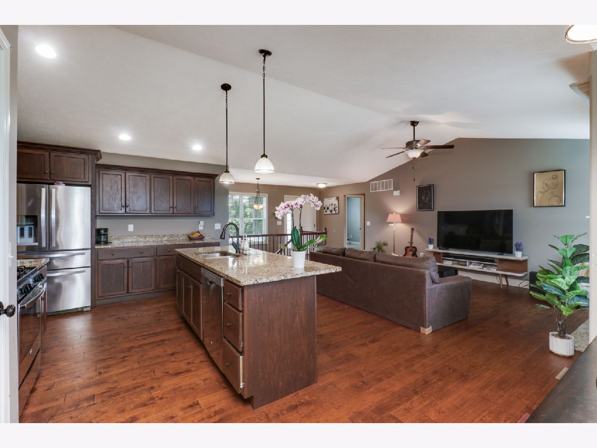 This charming ranch is the perfect place to call home. With a cozy fireplace, no backyard neighbors, and plenty of natural light, you'll never want to leave. Hardwood floors. Vaulted ceiling in family room with gas fireplace. Open kitchen w/granite countertops, pantry, center island eating bar. All SS appliances. Enough counter space. Master suite has large walk in closet, Double vanities and tile surround shower. 2 nice size bedrooms on opposite sides of home with full bath. 1st floor laundry with built in lockers.Washer / Dryer stay. Basement ready to finish-meets energy codes-framed & insulated. Bedroom framed in with egress window and full bath rough in. Covered back patio and no backyard neighbors is perfect place to enjoy summer evenings and cook outs. All appliances remain. All information deemed to be accurate but not warranted.