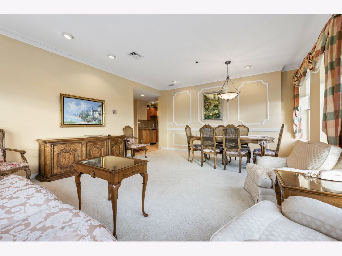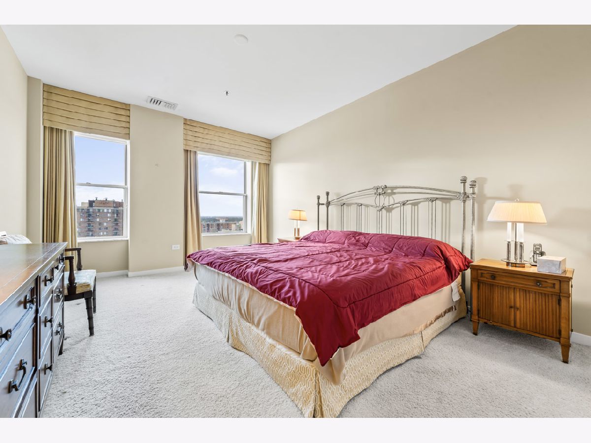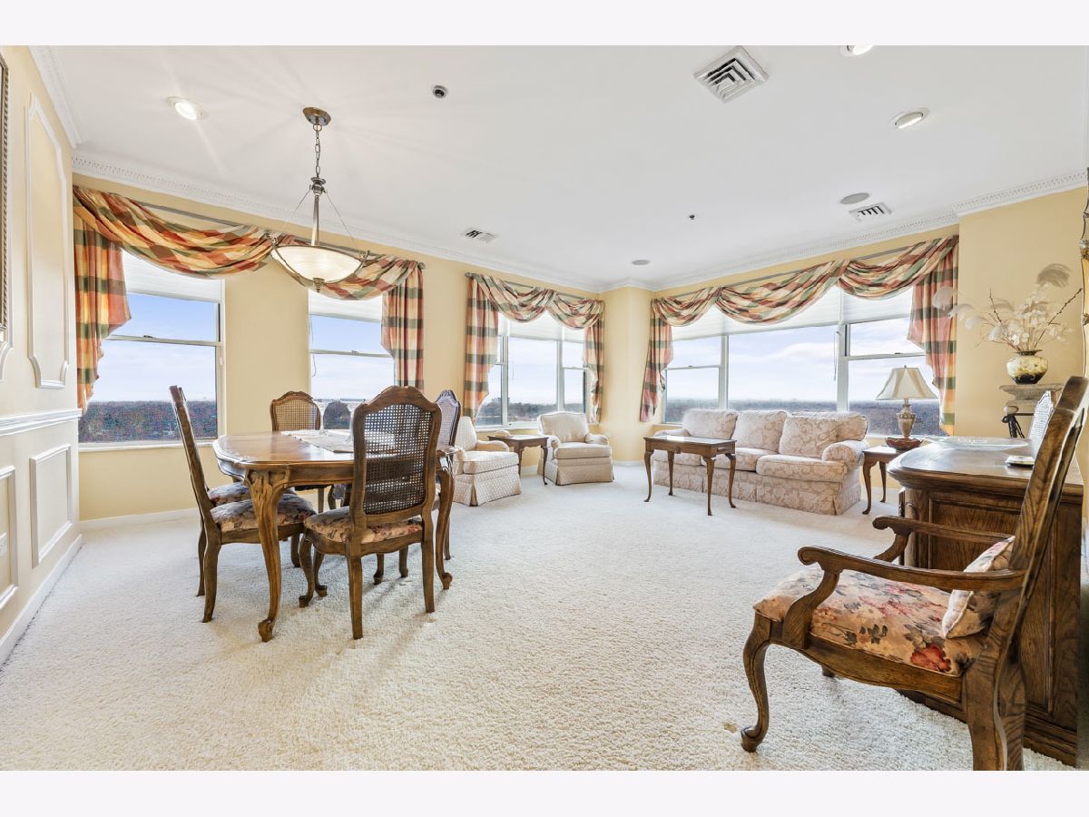 Spacious and bright top floor unit in the prestigious Arlington Town Square premier high-rise building in the heart of downtown Arlington Hts. This custom (original owner worked with building architect to modify unit to his liking during build out) 3 bedroom plus den, 2 1/2 bath with over 2000 square foot unit has so much to offer, from it's grand foyer, large eat in kitchen with an abundance of 42"-inch cabinets and wet bar, sunny living room and dining combo with wall-to-wall windows, den for relaxing or home office, spacious unique floor plan, walk in master closet with large master bath and jetted tub, utility room in unit with washer, dryer and access door to garbage shoot and hallway, and 2 deeded prime parking spots included in sale with direct access to the elevators. Enjoy being in walkable distance of alfresco dining, shopping, entertainment, vibrant nightlife and the Metra is a hop, skip and jump to downtown Chicago, a commuter's dream. There are so many amenities this building has to offer, a state-of-the-art exercise room, a very friendly doorman, a hospitality room for parties, onsite maintenance, heated garage, extra storage, receiving room for all your package deliveries, and pets are allowed. Investors are welcome as the rental cap has not been met at this time. The HOA covers heat, A/C, water, cable, internet, exterior maintenance, snow removal, scavenger service. Bring your most decerning buyer, this unit will not disappoint.