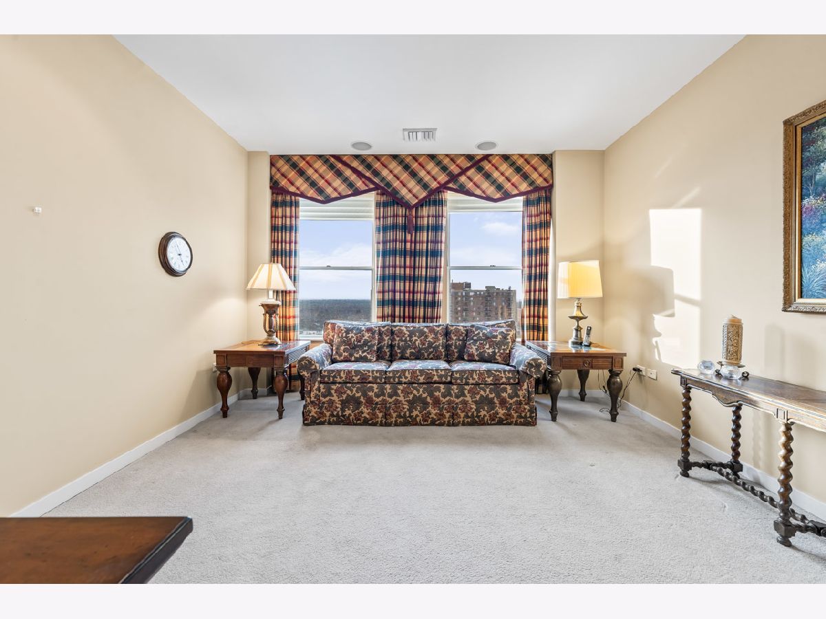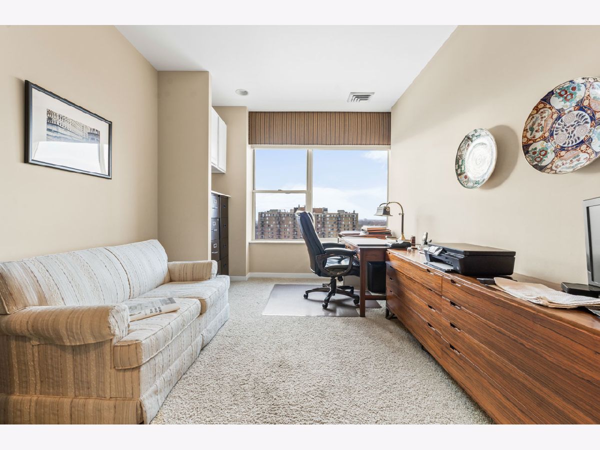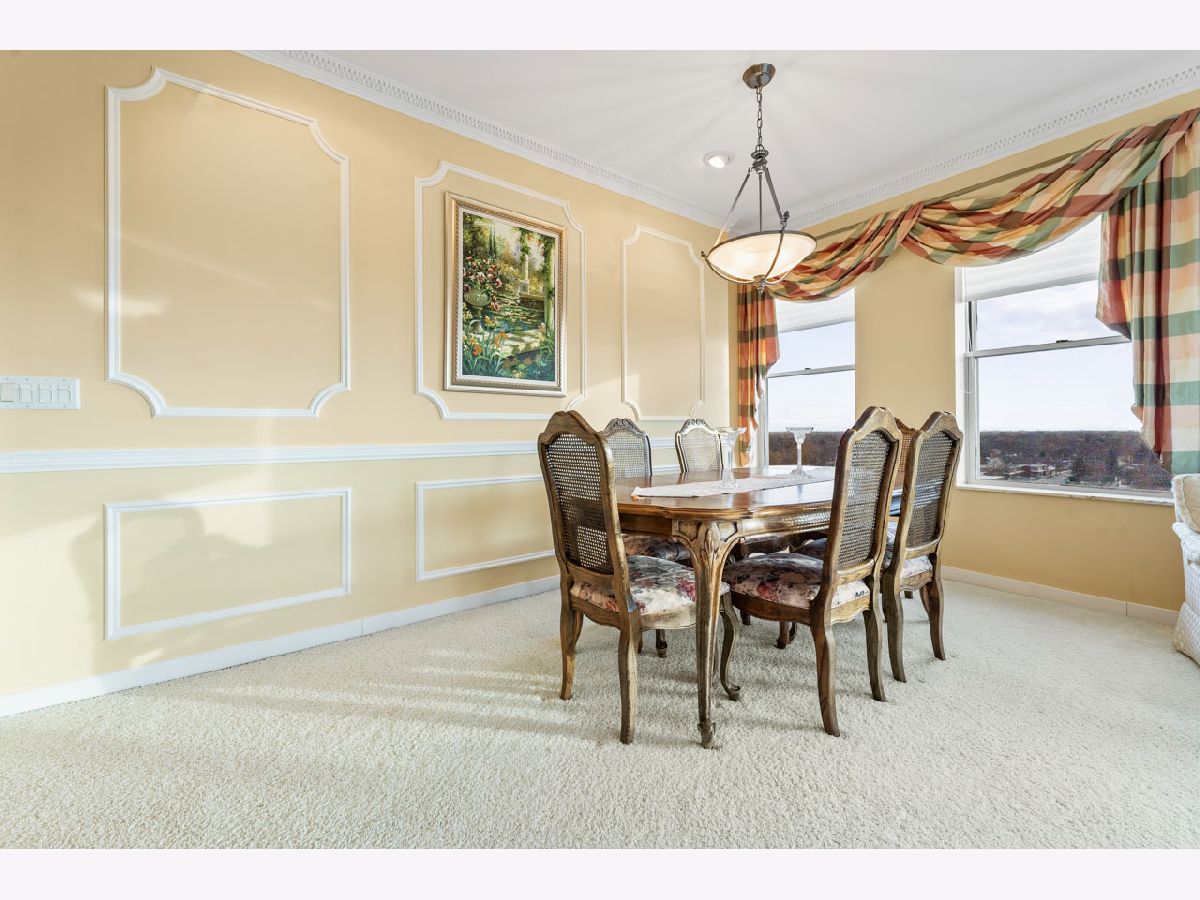 Spacious and bright top floor unit in the prestigious Arlington Town Square premier high-rise building in the heart of downtown Arlington Hts. This custom (original owner worked with building architect to modify unit to his liking during build out) 3 bedroom plus den, 2 1/2 bath with over 2000 square foot unit has so much to offer, from it's grand foyer, large eat in kitchen with an abundance of 42"-inch cabinets and wet bar, sunny living room and dining combo with wall-to-wall windows, den for relaxing or home office, spacious unique floor plan, walk in master closet with large master bath and jetted tub, utility room in unit with washer, dryer and access door to garbage shoot and hallway, and 2 deeded prime parking spots included in sale with direct access to the elevators. Enjoy being in walkable distance of alfresco dining, shopping, entertainment, vibrant nightlife and the Metra is a hop, skip and jump to downtown Chicago, a commuter's dream. There are so many amenities this building has to offer, a state-of-the-art exercise room, a very friendly doorman, a hospitality room for parties, onsite maintenance, heated garage, extra storage, receiving room for all your package deliveries, and pets are allowed. Investors are welcome as the rental cap has not been met at this time. The HOA covers heat, A/C, water, cable, internet, exterior maintenance, snow removal, scavenger service. Bring your most decerning buyer, this unit will not disappoint.
