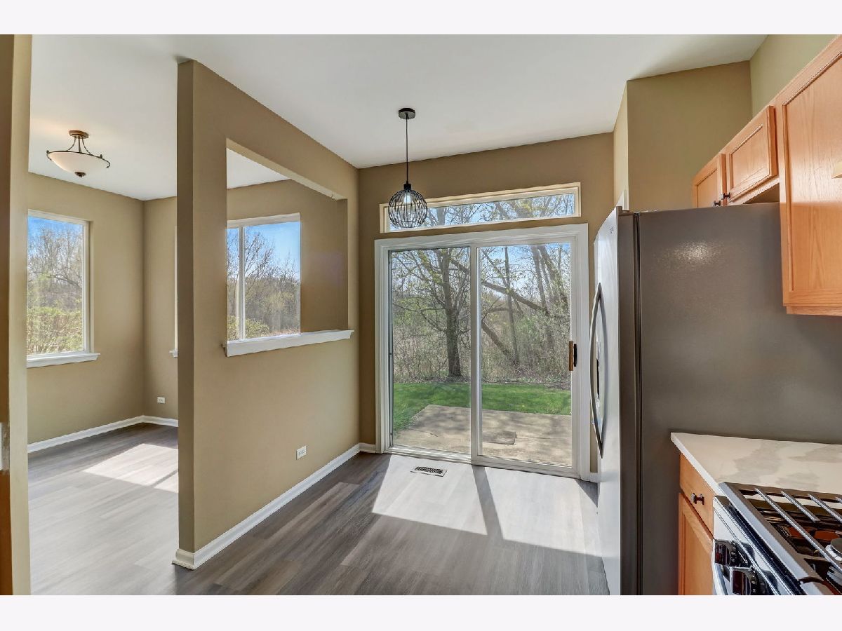 Charming sun-drenched end unit townhome in the Briargate community with Grayslake Schools. Upon entering, you're greeted by a spacious living area illuminated by natural sunlight, complemented by brand new vinyl plank flooring, leading into the generously sized kitchen, boasting all brand new stainless steel appliances, countertops, and sink and breakfast nook. Venture upstairs to find the 2 secondary bedrooms, each bathed in natural light and featuring brand new flooring. A shared bathroom awaits, showcasing a brand new shower and tub, along with new countertop/sink and toilet. The primary bedroom also has new flooring and features a brand new shower and bathtub, counter top and toilet. For added convenience the laundry is located on the 2nd floor with a brand new washer and dryer. Don't miss your chance to call this charming retreat your own. Schedule a viewing today and envision yourself basking in the glow of natural sunlight in your new home and view of the pond and preservation area! Close to shopping and METRA