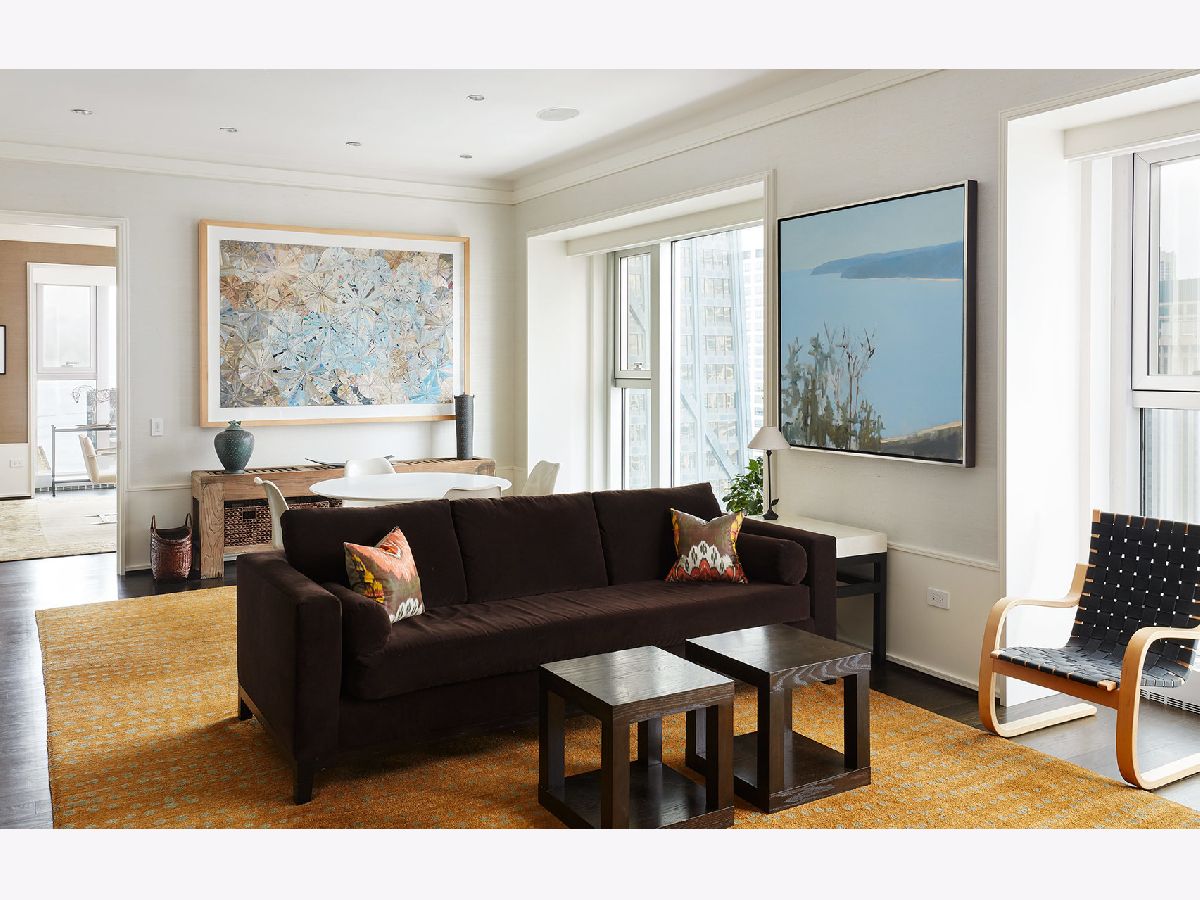 Live in high style in the exclusive Residences at 900 on Chicago's coveted Gold Coast. This magnificent custom home boasts gracious living space, exquisite finishes + stunning Lake Michigan & city views. Styled with utmost attention to detail, the expansive 4,213 sf, 3 bed 3.5 bath apartment enjoys generous natural light from massive windows on double exposures. A grand foyer with ample walls for artwork welcomes you into an ambience of elegance. Gorgeous hardwood floors, moldings & millwork, refined finishes & a designer color palette grace the sophisticated interior. Entertain with ease in the beautiful living room & corner dining room capturing the lake & Michigan Ave. A top-of-the-line chef's kitchen, open breakfast & family room with fireplace + split layout with the deluxe master & secondary bedroom suites set privately at opposite ends optimize your comfort. A full staff, 24-hr valet, private roof garden, bike storage & access to the amenities of the Four Seasons Hotel below!
