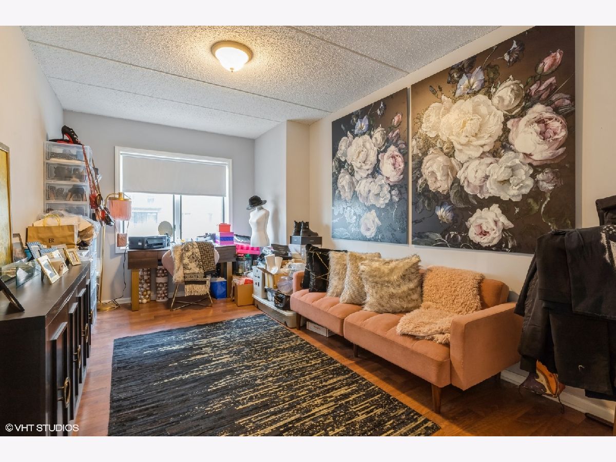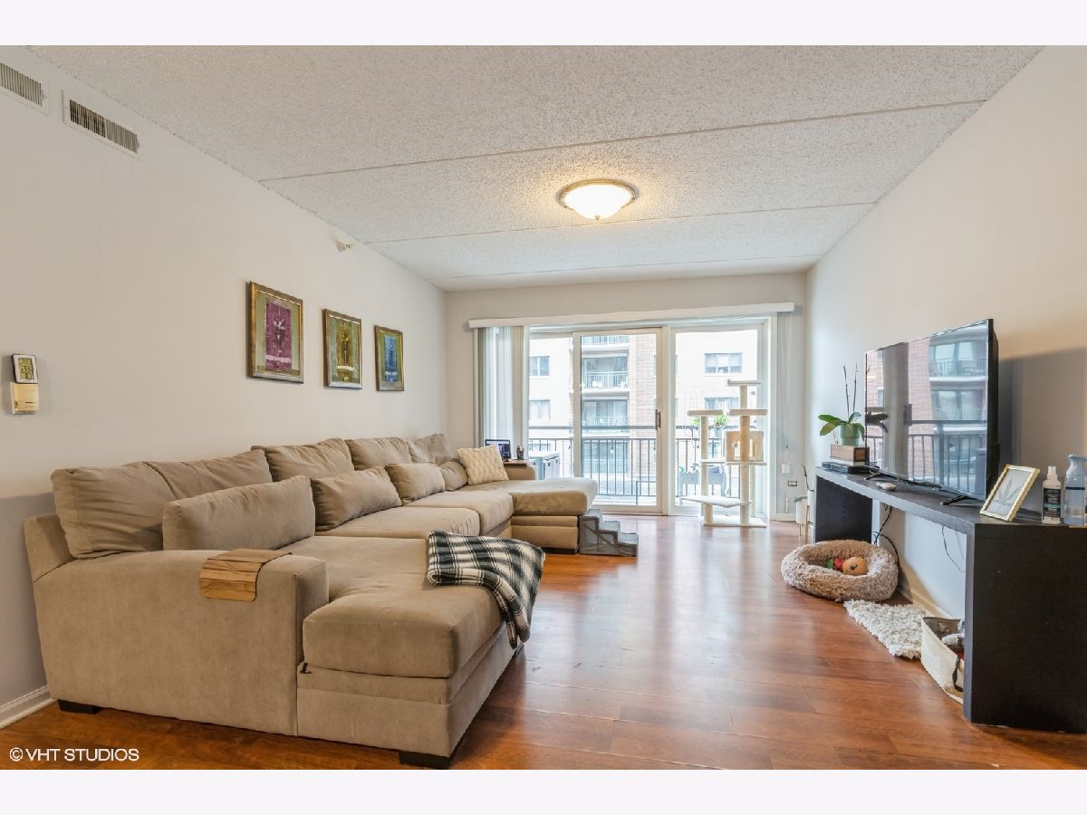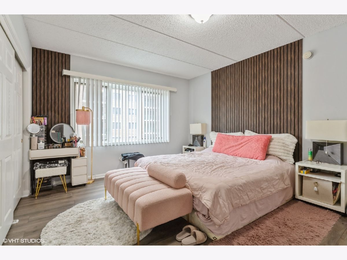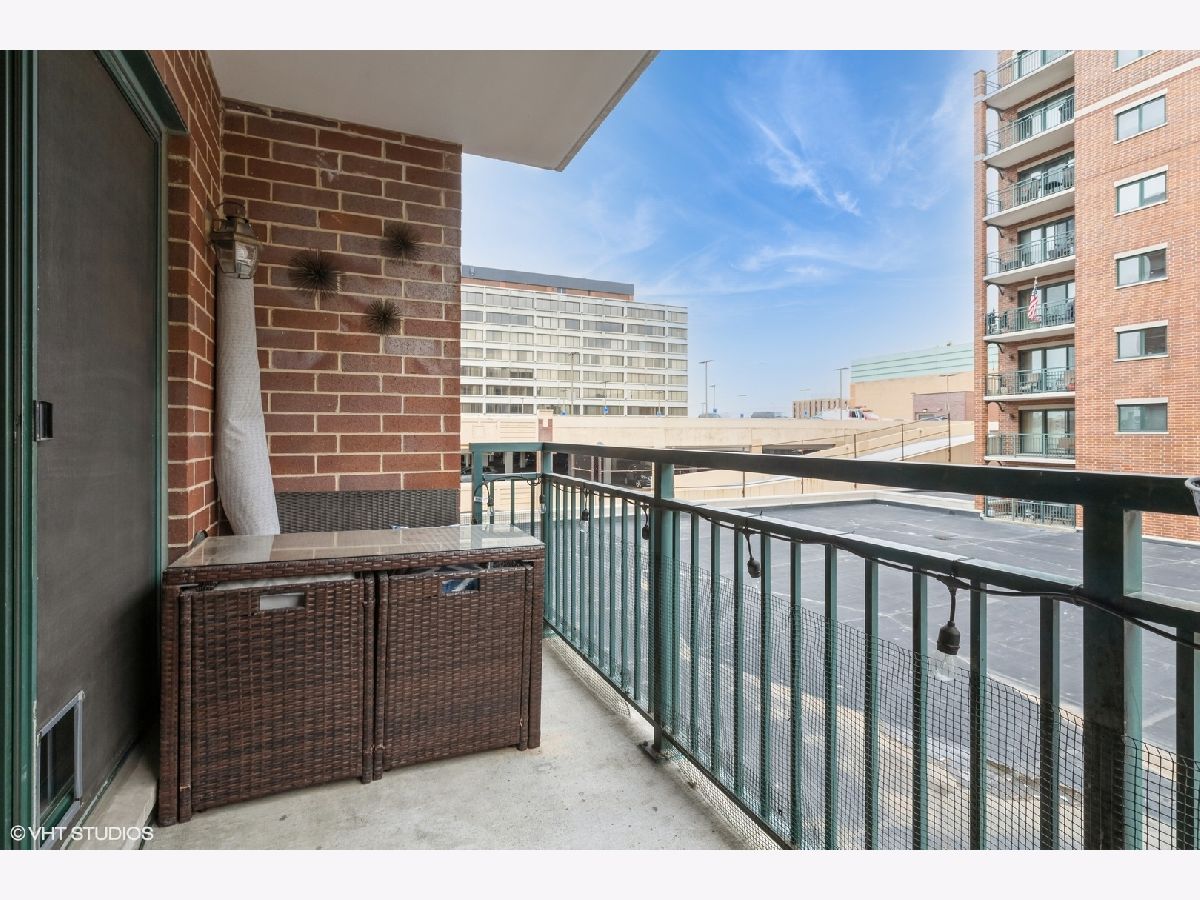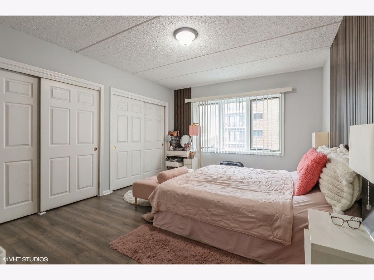 Condo in the Heart of Downtown Des Plaines! Library Courte has great location. True 2 bedroom with plenty of closet space, in unit full size washer/dryer. Open concept kitchen with island and seating. SS appliances. New flooring in primary bedroom. Private balcony facing courtyard! 1 garage space. Pets allowed and investors.