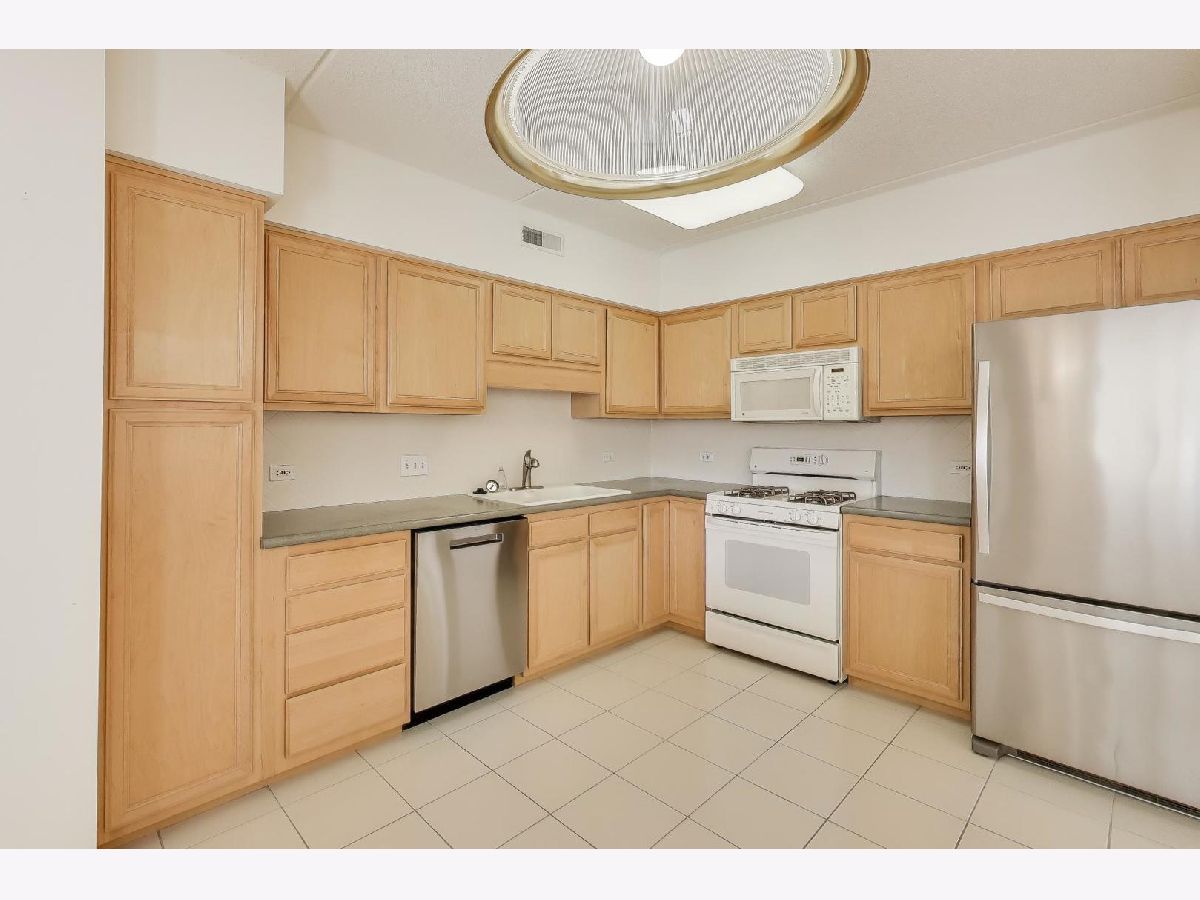 Your new home is ready. Natural sunlight floods into this Unit. Large balcony overlooks the pretty street. This unit has over 1300 square ft. of living space. Spacious room sizes with 2 bedrooms complete with a master suite, many closets and an in unit laundry room. Updated kitchen fully applianced with a refrigerator 1.5 yr, old and a new dishwasher.. Heated garage space number 4 with storage right behind the parking space. Best location in downtown with restaurants, Metra, and shopping.