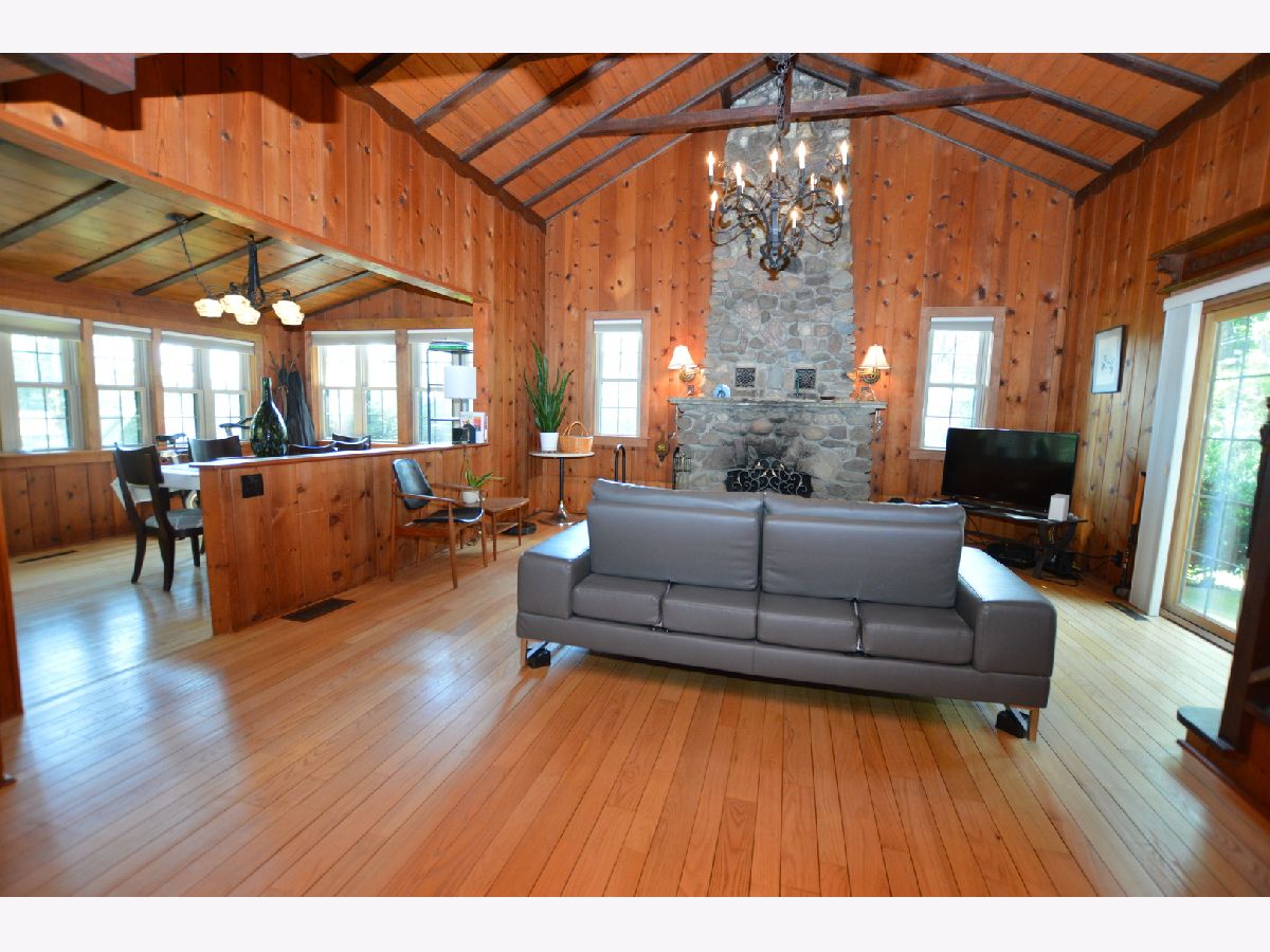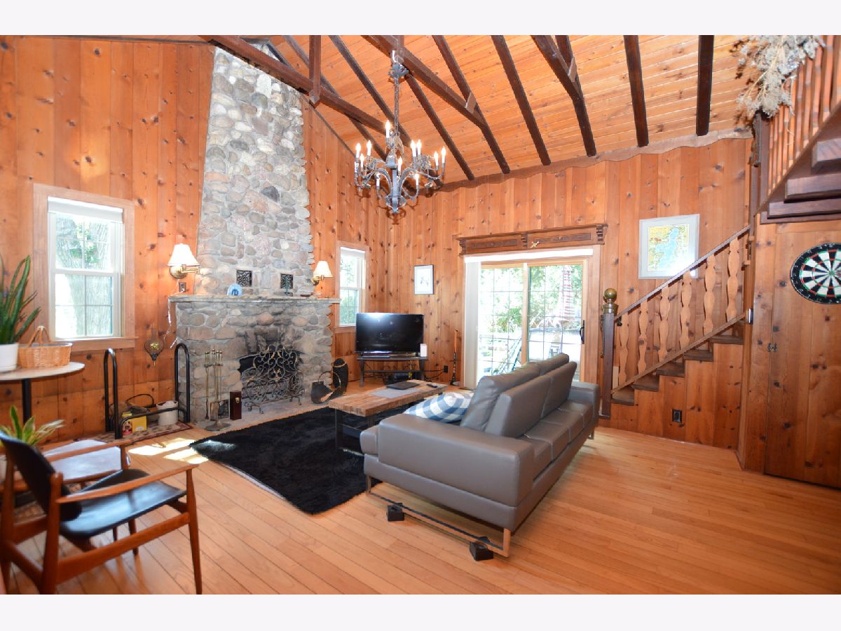 Bring the deep woods home in the heart of Wonder Lake, just a short walk from a beautiful private beach, Wonder Lake, an 816-acre, 3.5-mile-long private lake with a playground. This adorable, updated three-bedroom, 1.5-bathroom log cabin has a wood-burning 22-foot fieldstone fireplace, vaulted ceilings, and a cozy cabin. It is nestled on a large lot with 20 mature Oak trees, a huge array of perennials, and a screened-in gazebo in the backyard. Perfect for unwinding and enjoying the beauty of nature! * Where new memories begin, and old ones are cherished*